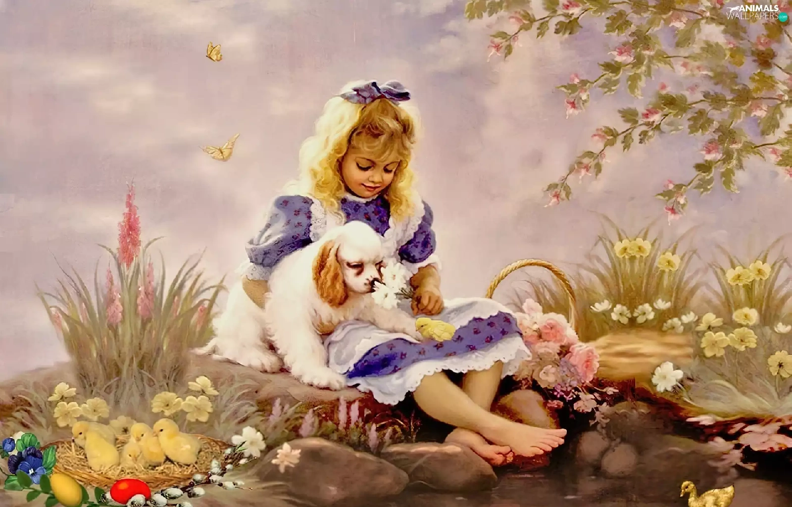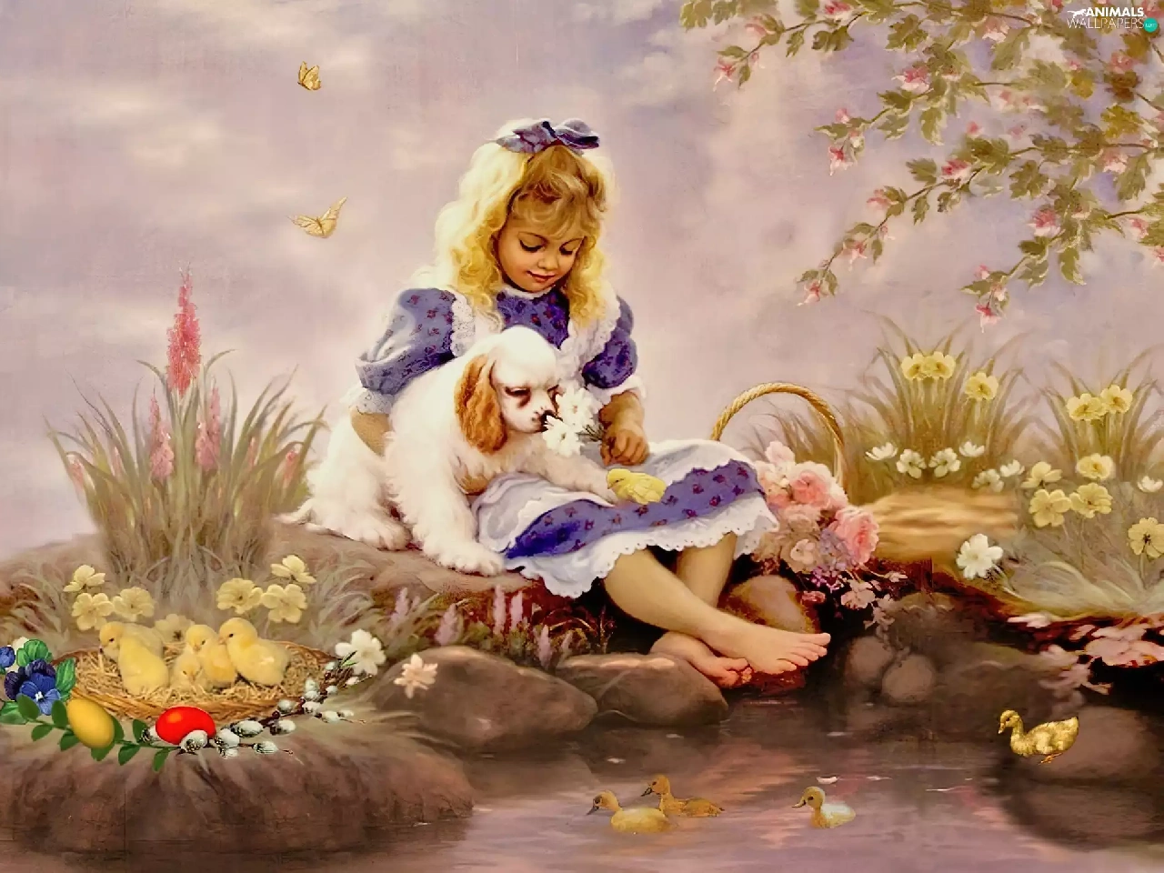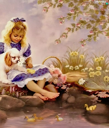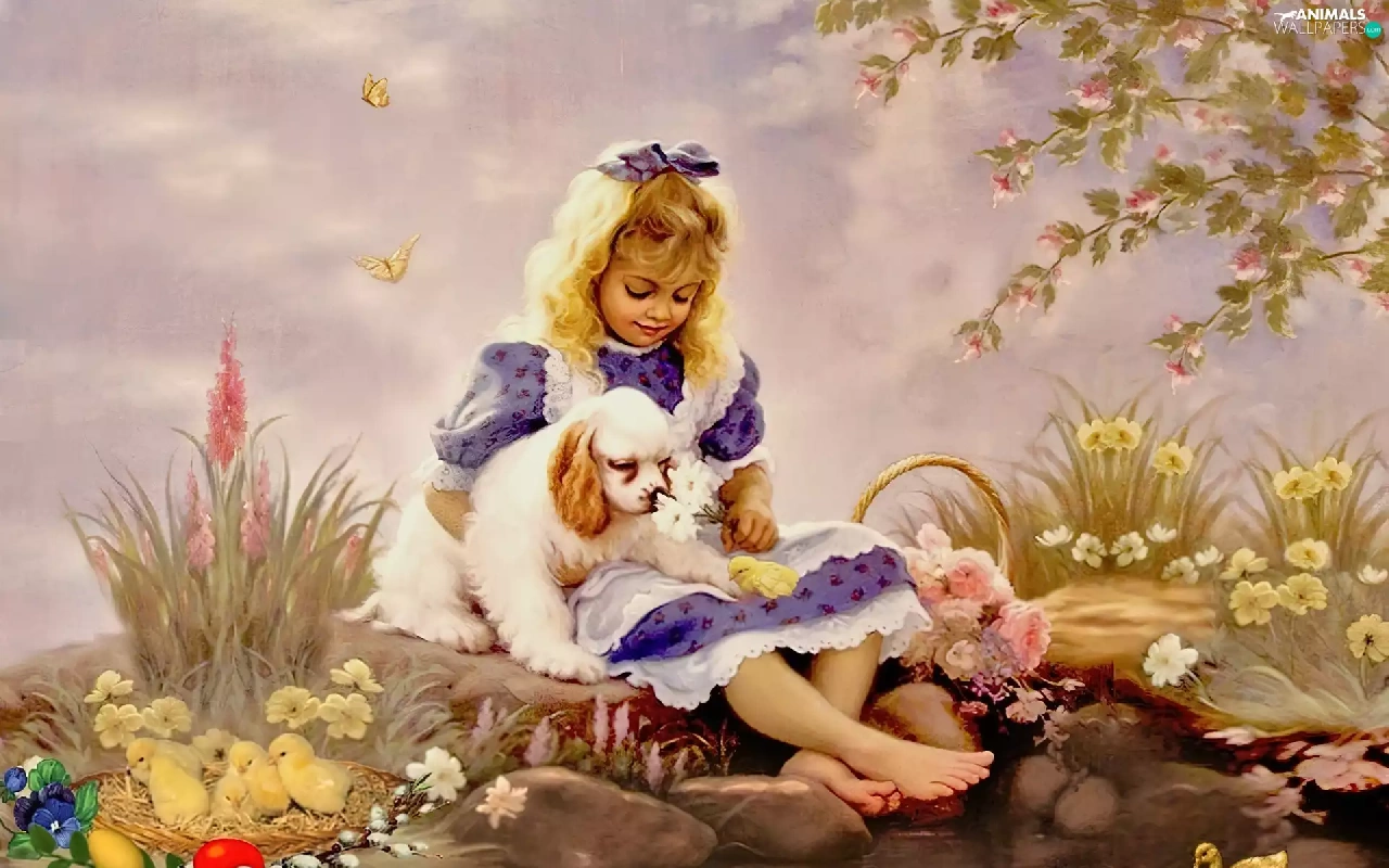 Easter, girl, dog