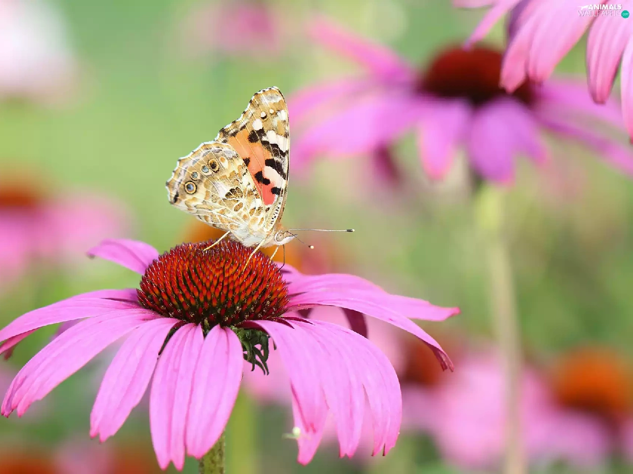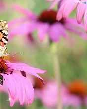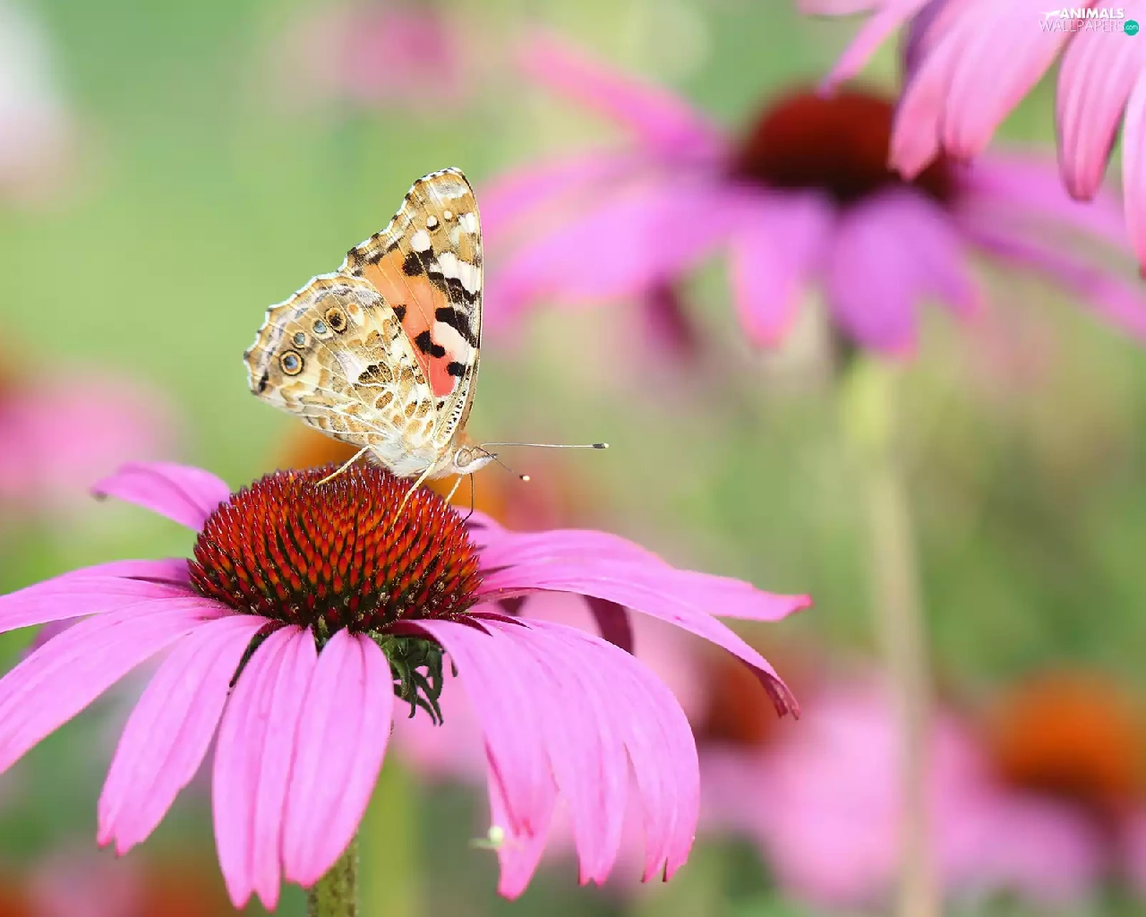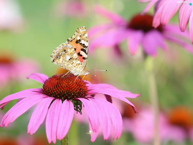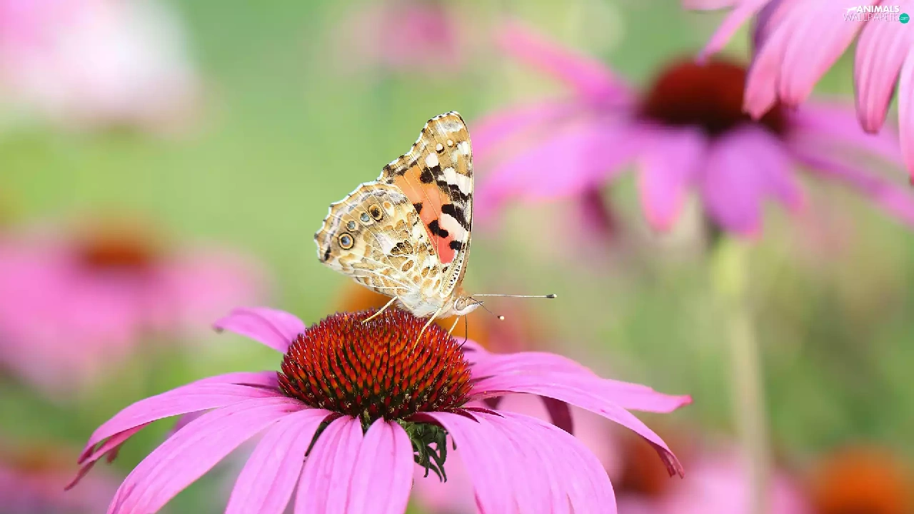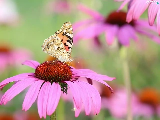 butterfly, Colourfull Flowers, echinacea, Painted Lady