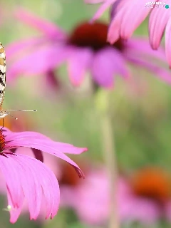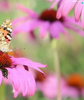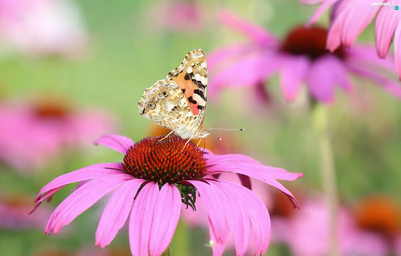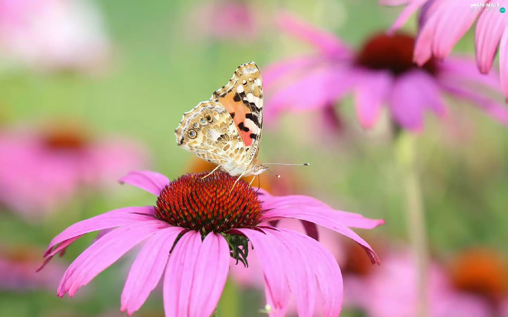 butterfly, Colourfull Flowers, echinacea, Painted Lady