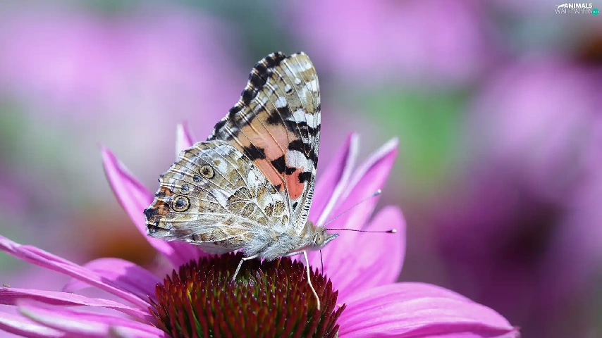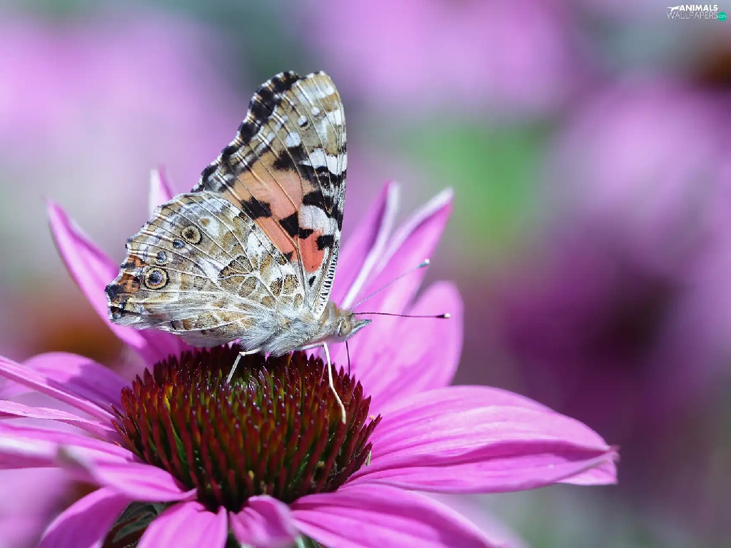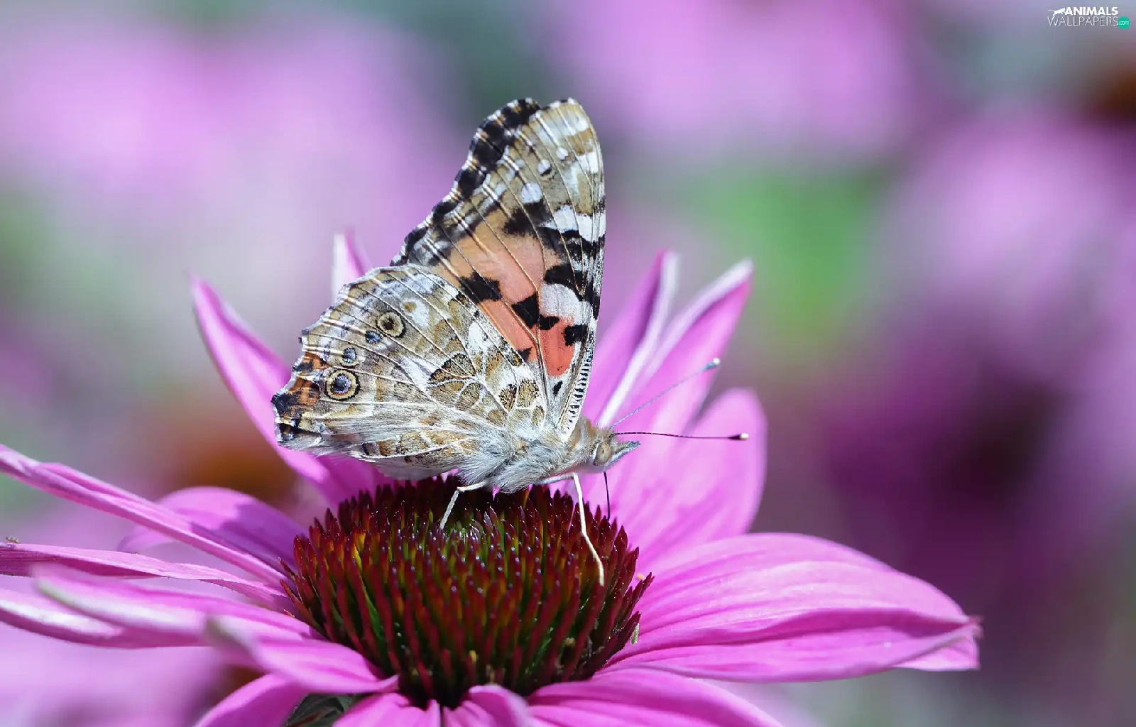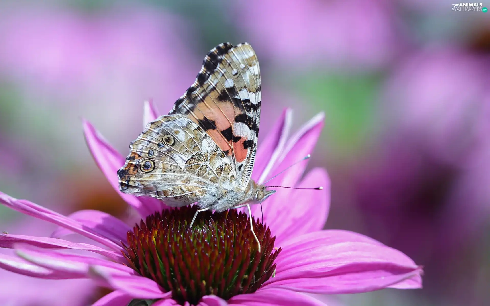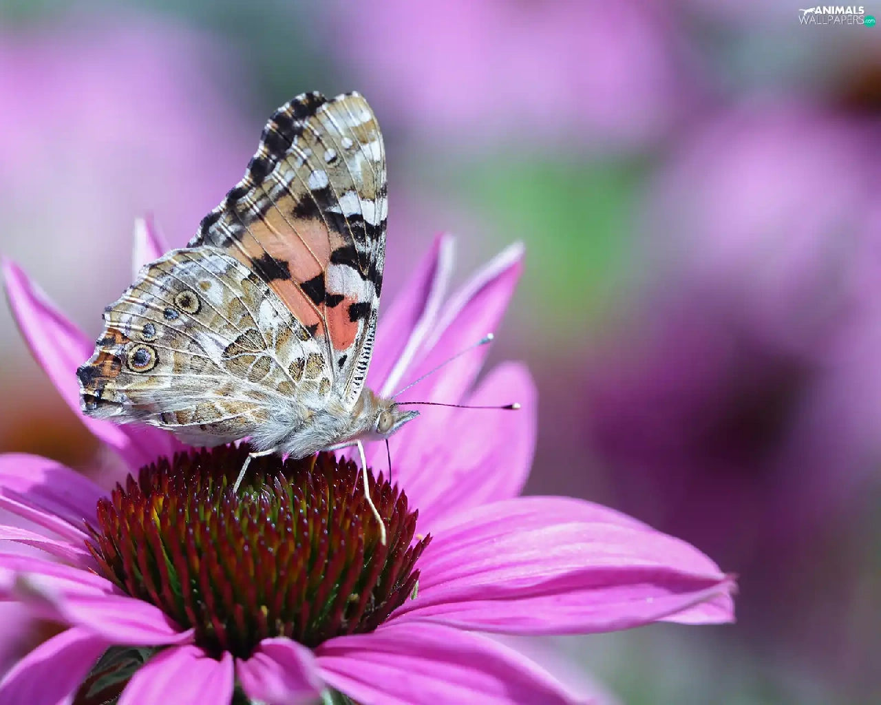 Painted Lady, Colourfull Flowers, echinacea, butterfly