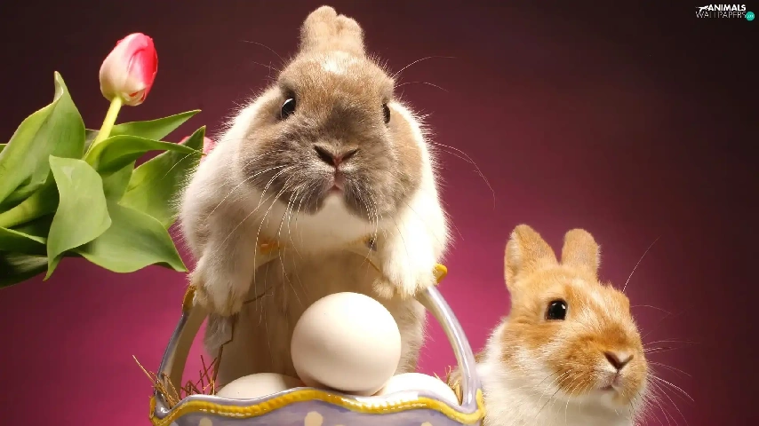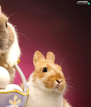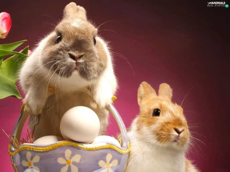 eggs, Easter, rabbits, basket, Two cars