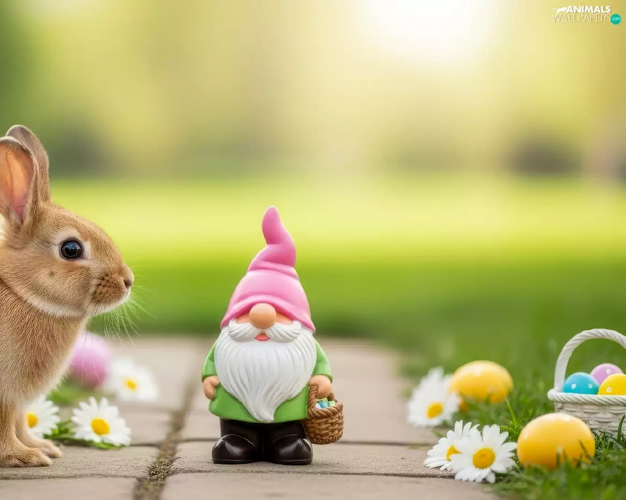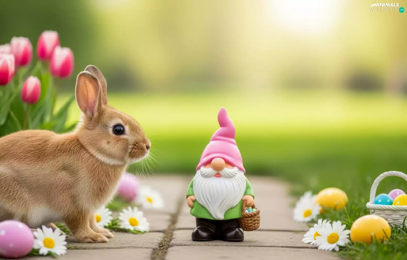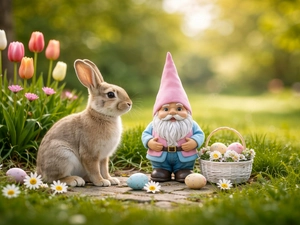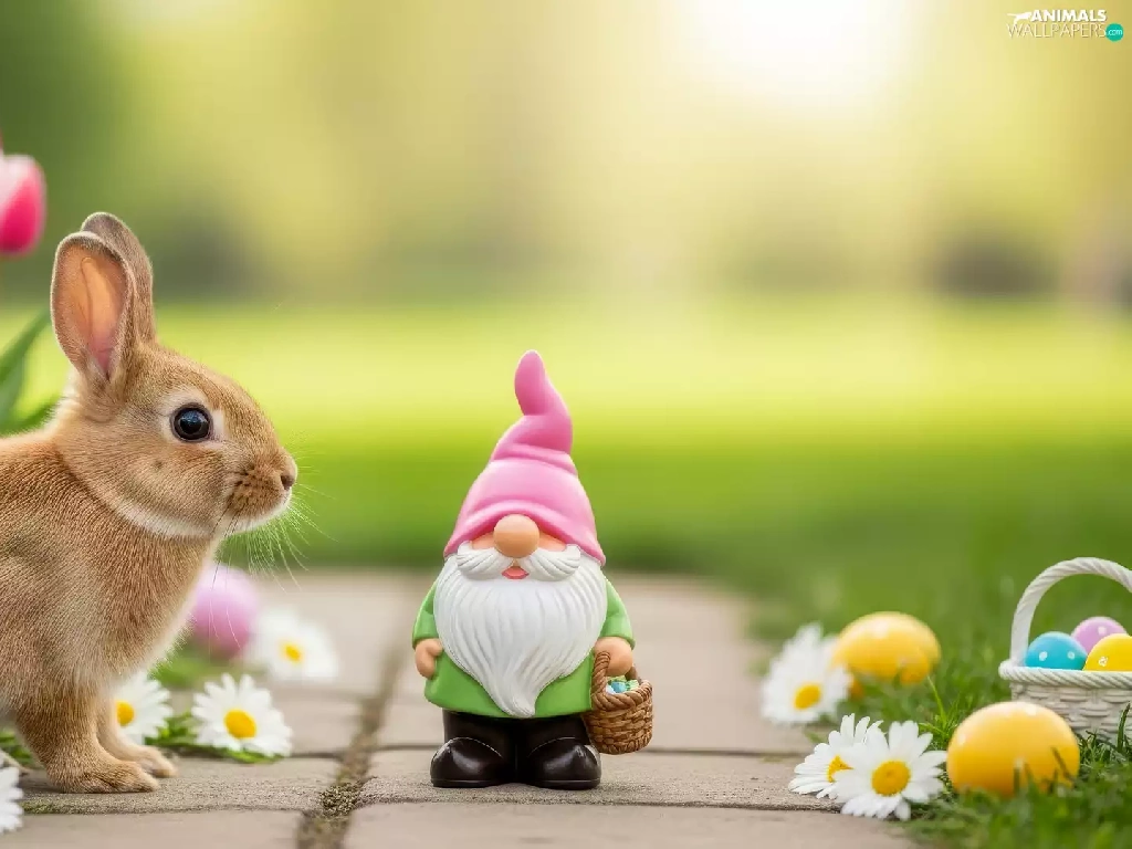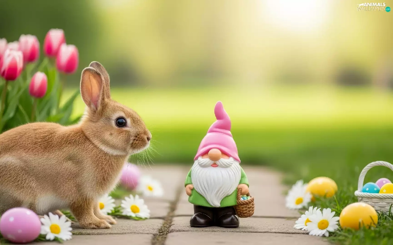 Tulips, eggs, Rabbit, dwarf, Easter