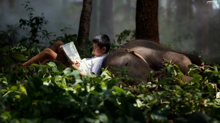 Elephant, boy, Book