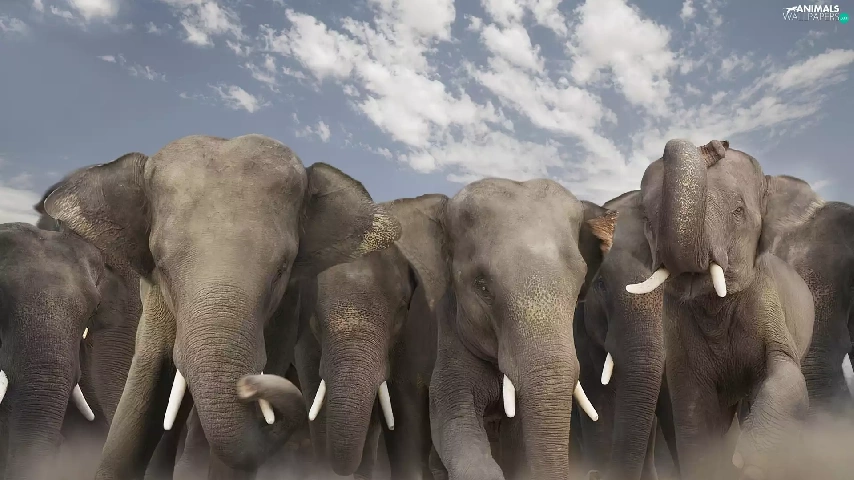elephants, speeding, herd