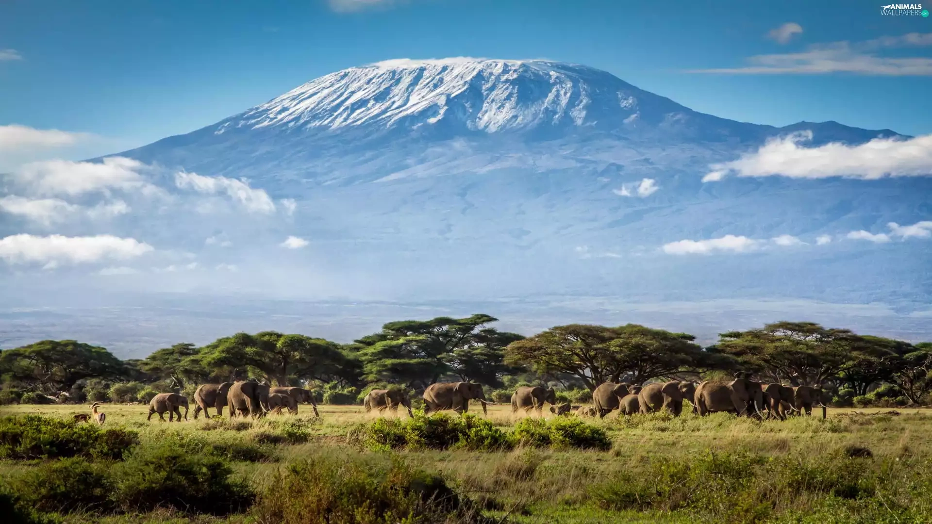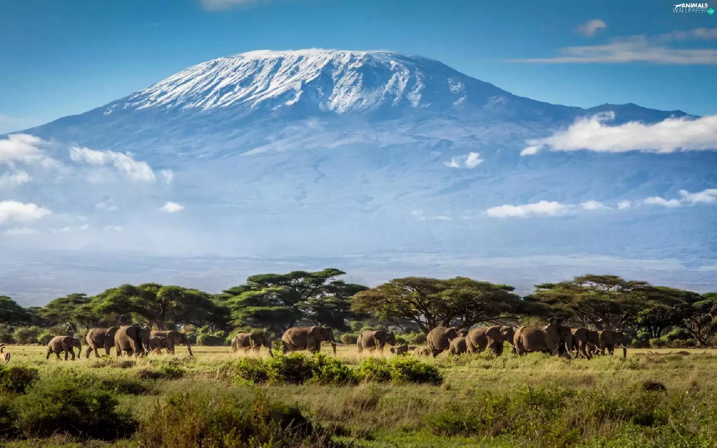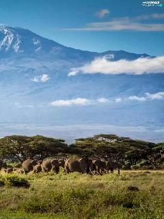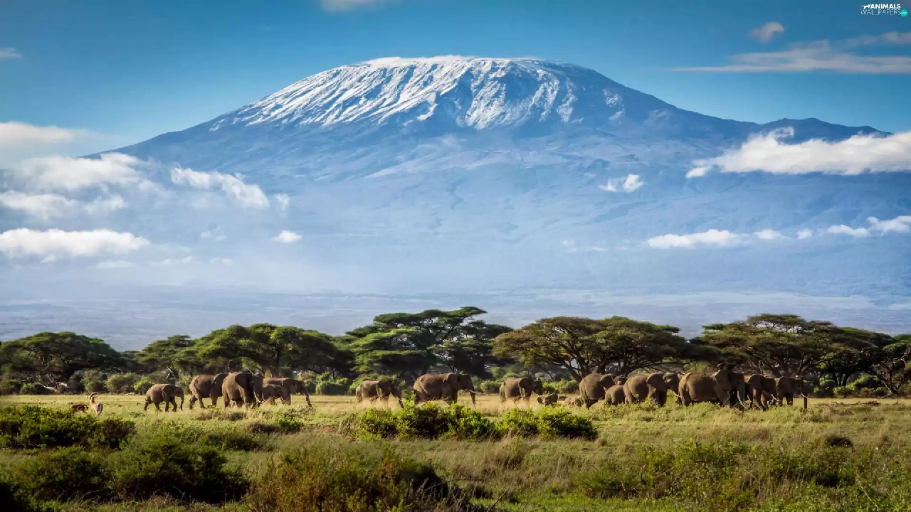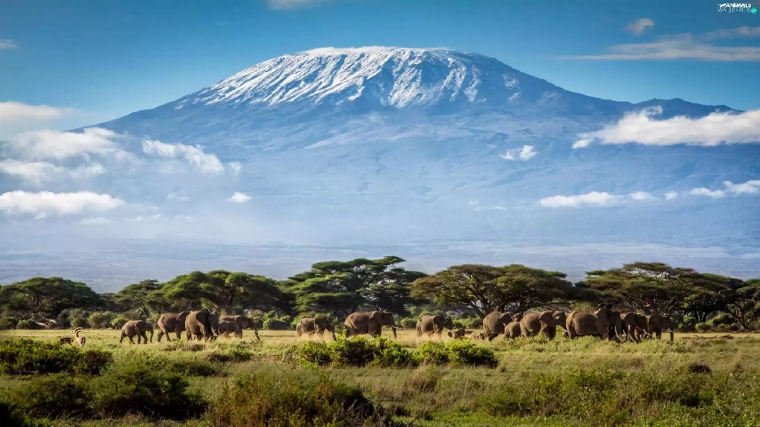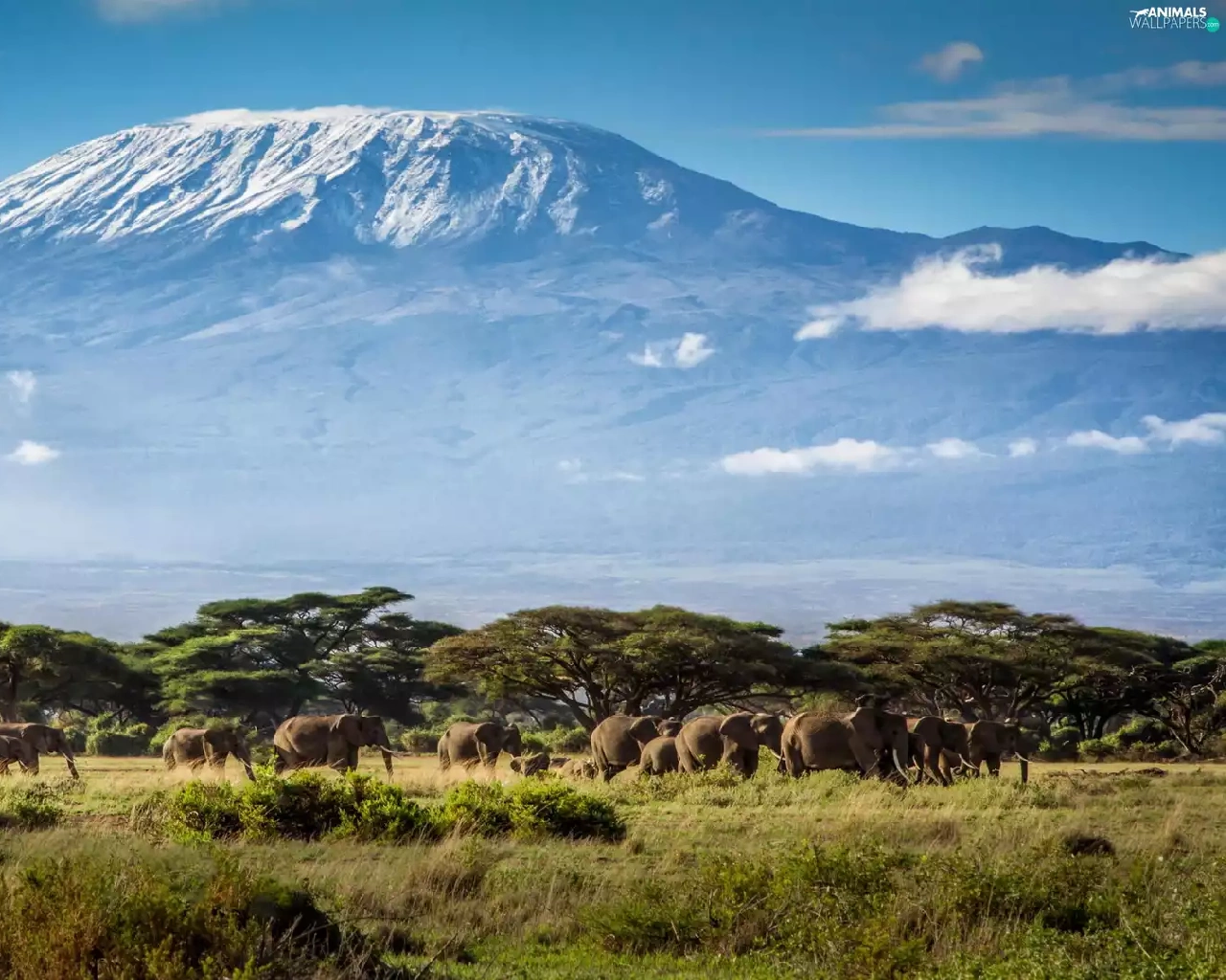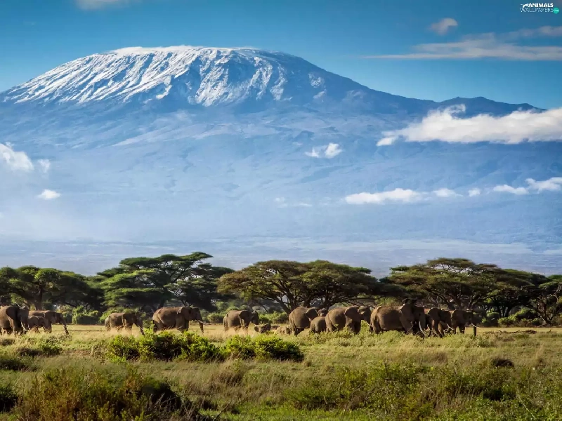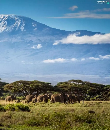 Mountains, Elephants, Tanzania, Africa, Kilimanjaro