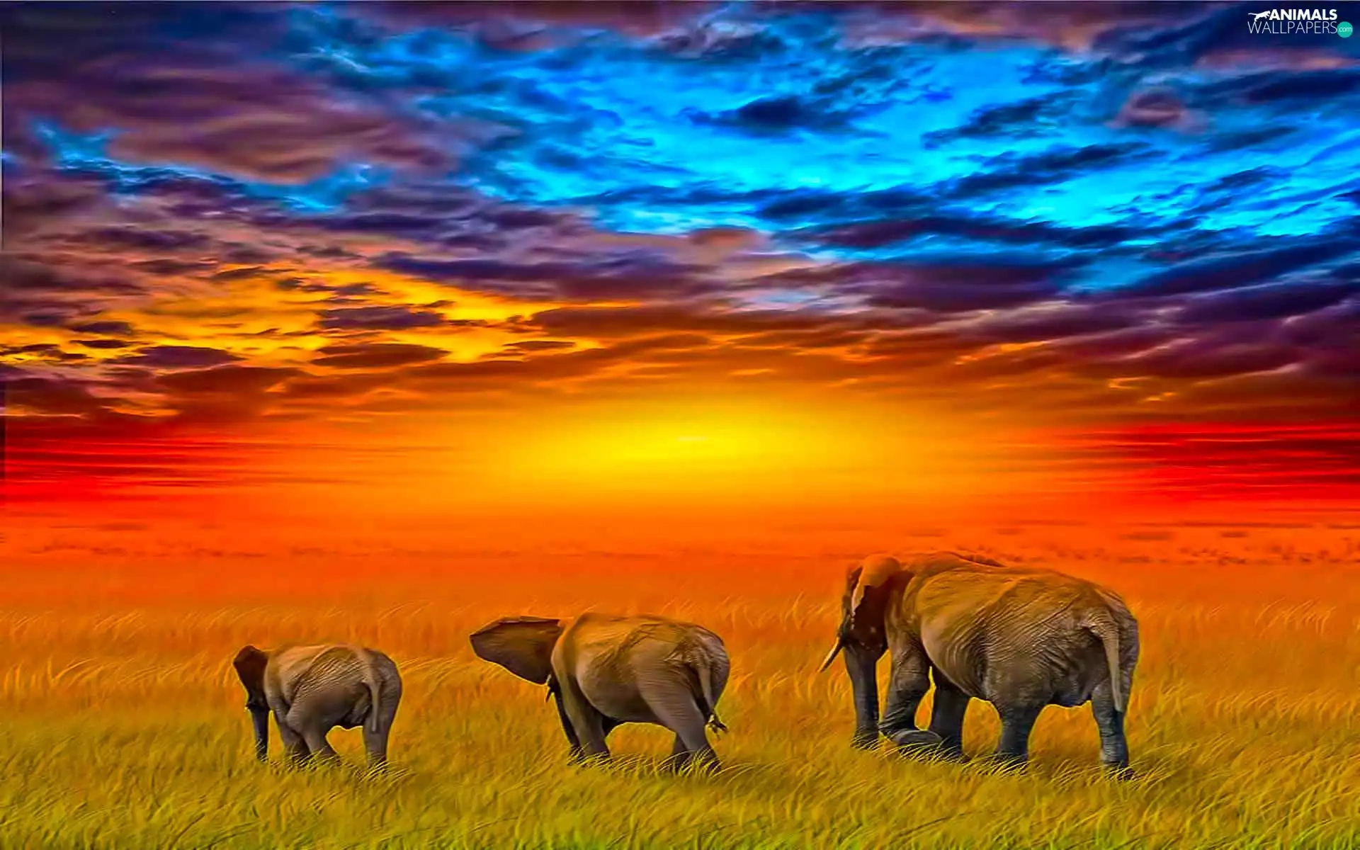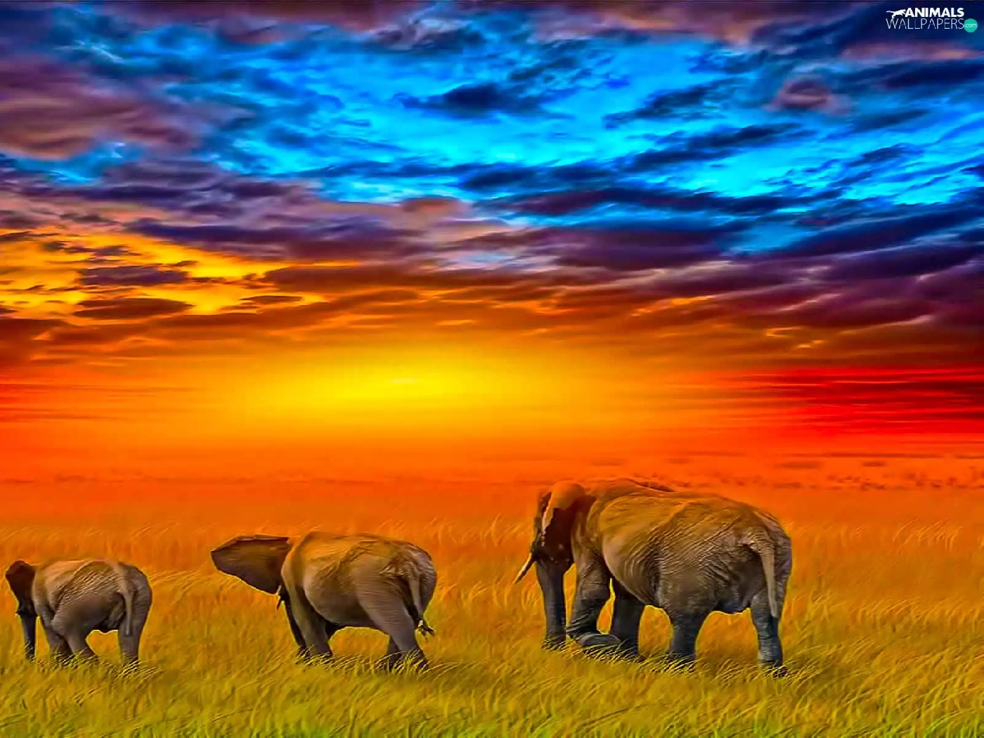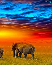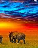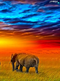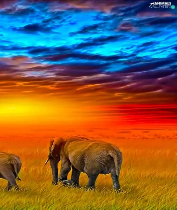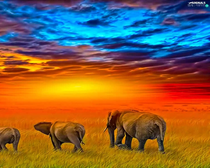 Three, west, sun, Elephants
