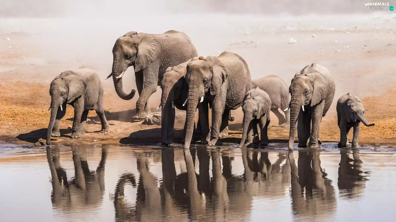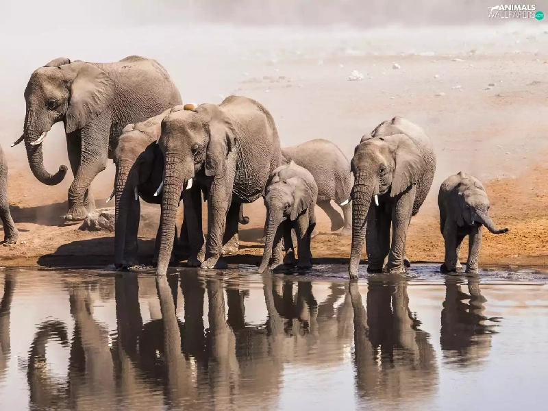 Elephants, water
