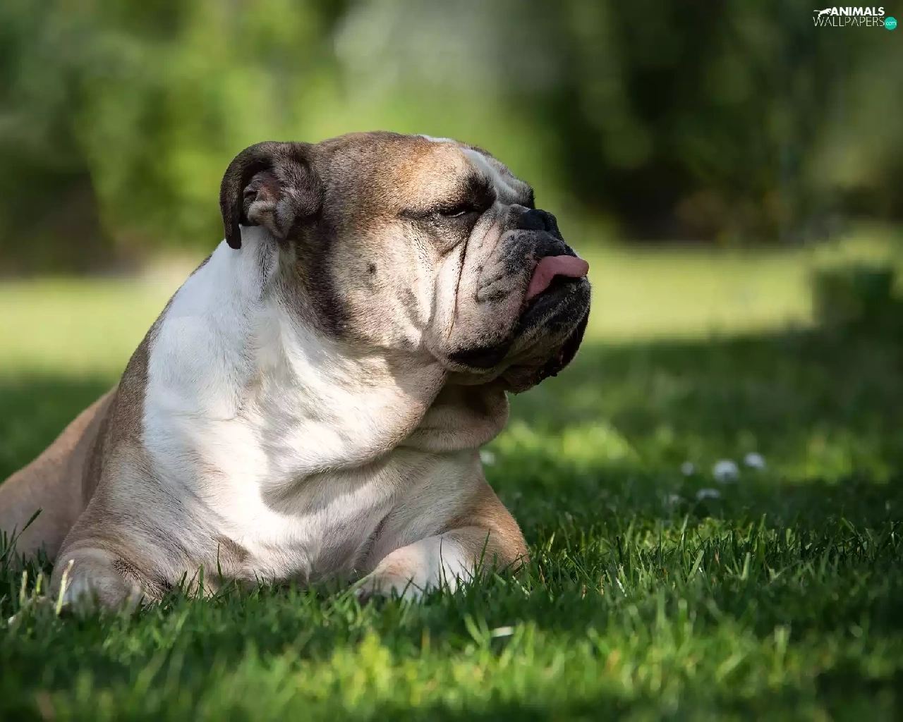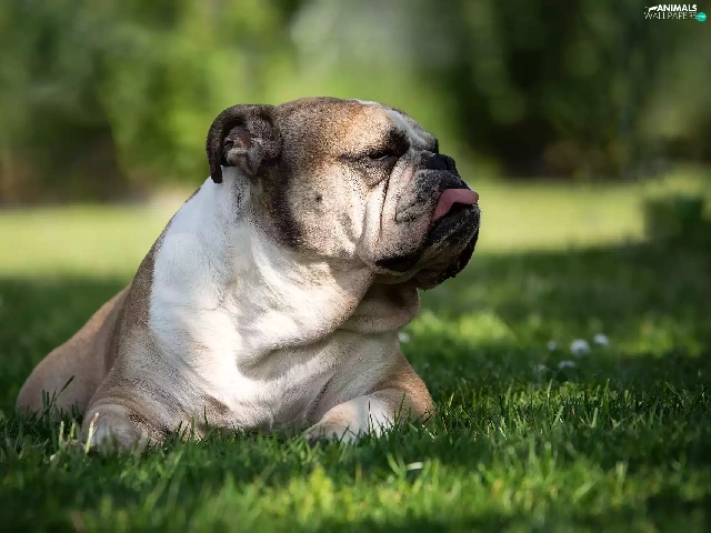 lying, English Bulldog, Tounge, dog