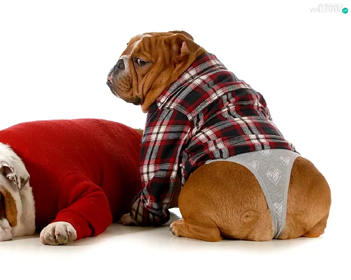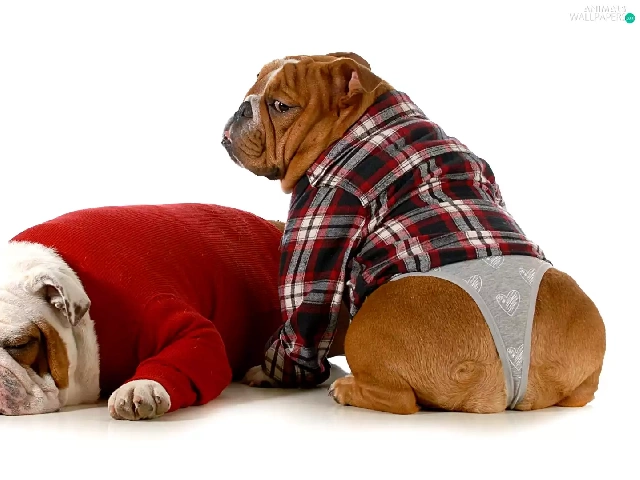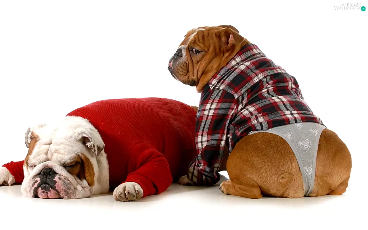 clothes, Funny, Dogs, English Bulldogs, Two cars