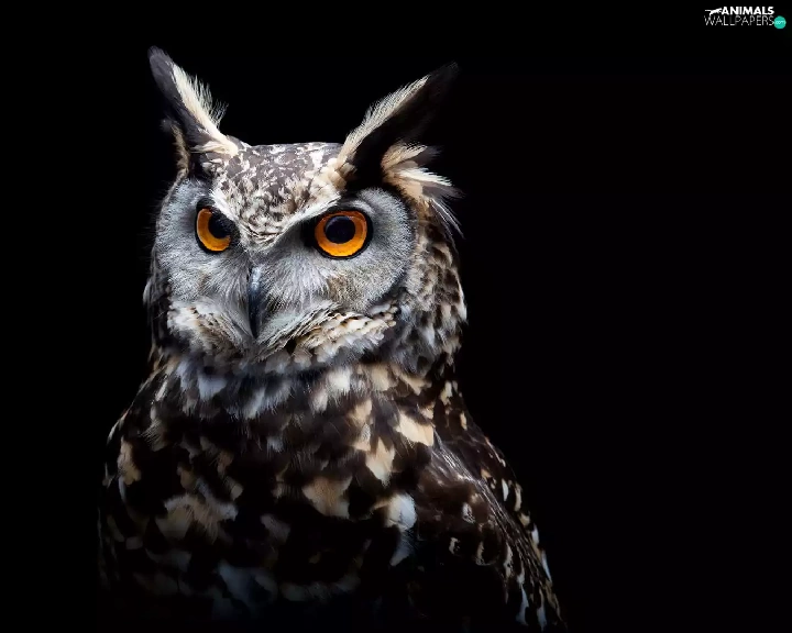 black background, owl, Eurasian Eagle-Owl