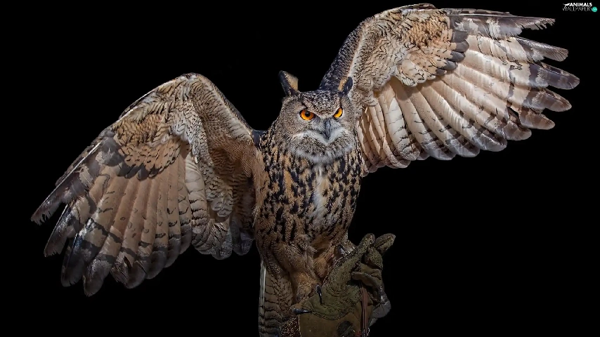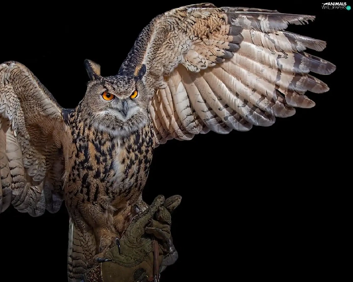 spread, wings, owl, Eurasian Eagle-Owl, Bird