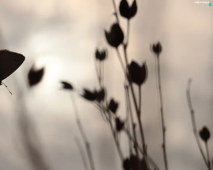 evening, butterfly, Plants