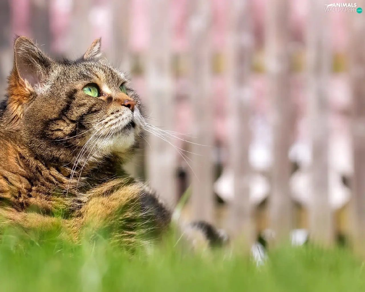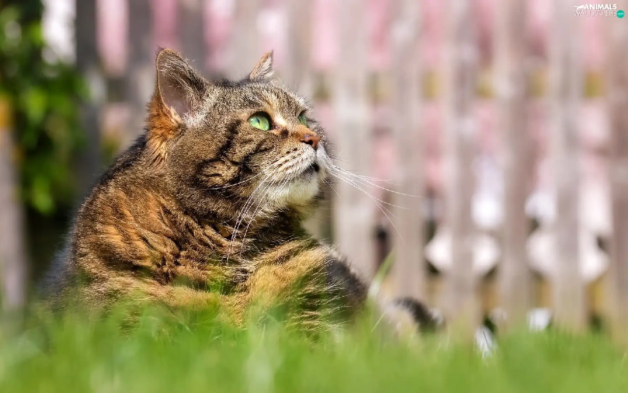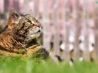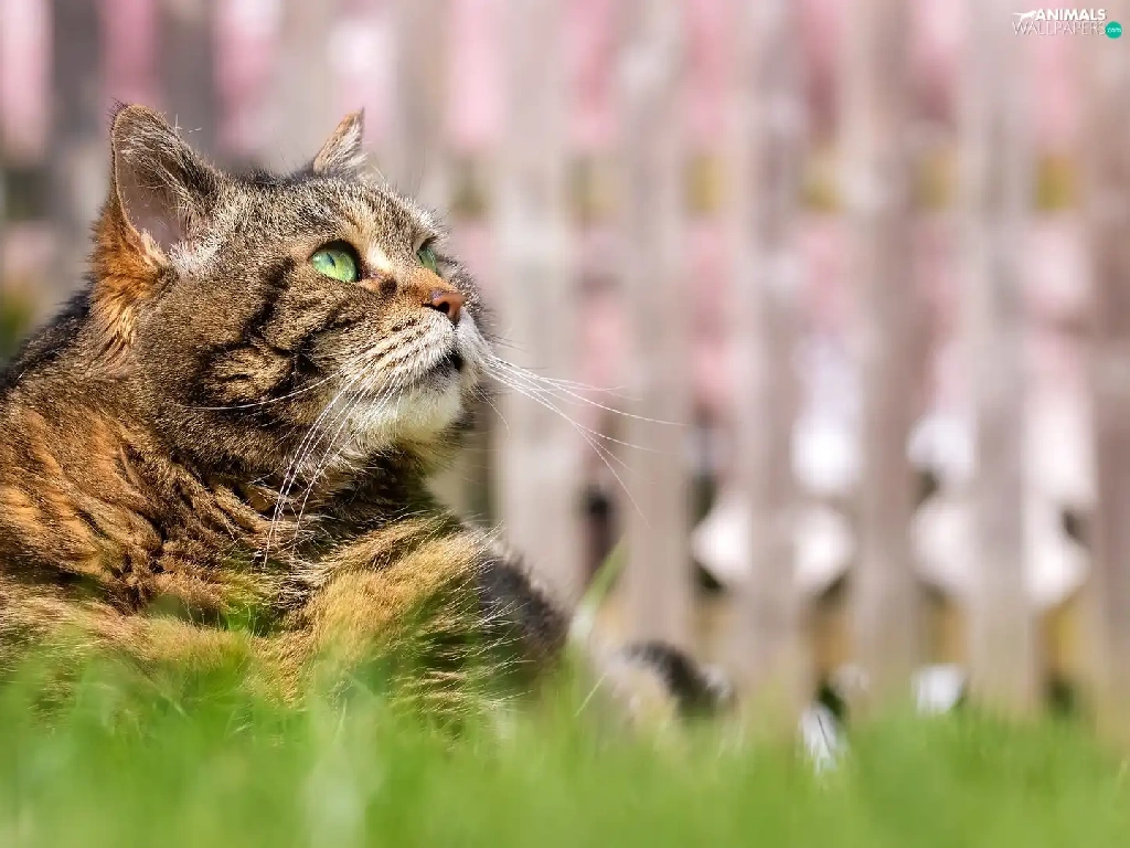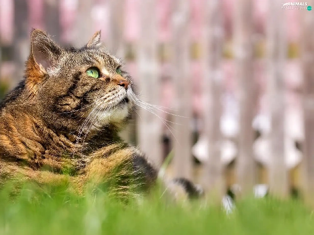 Green-eyed, cat, grass, dun