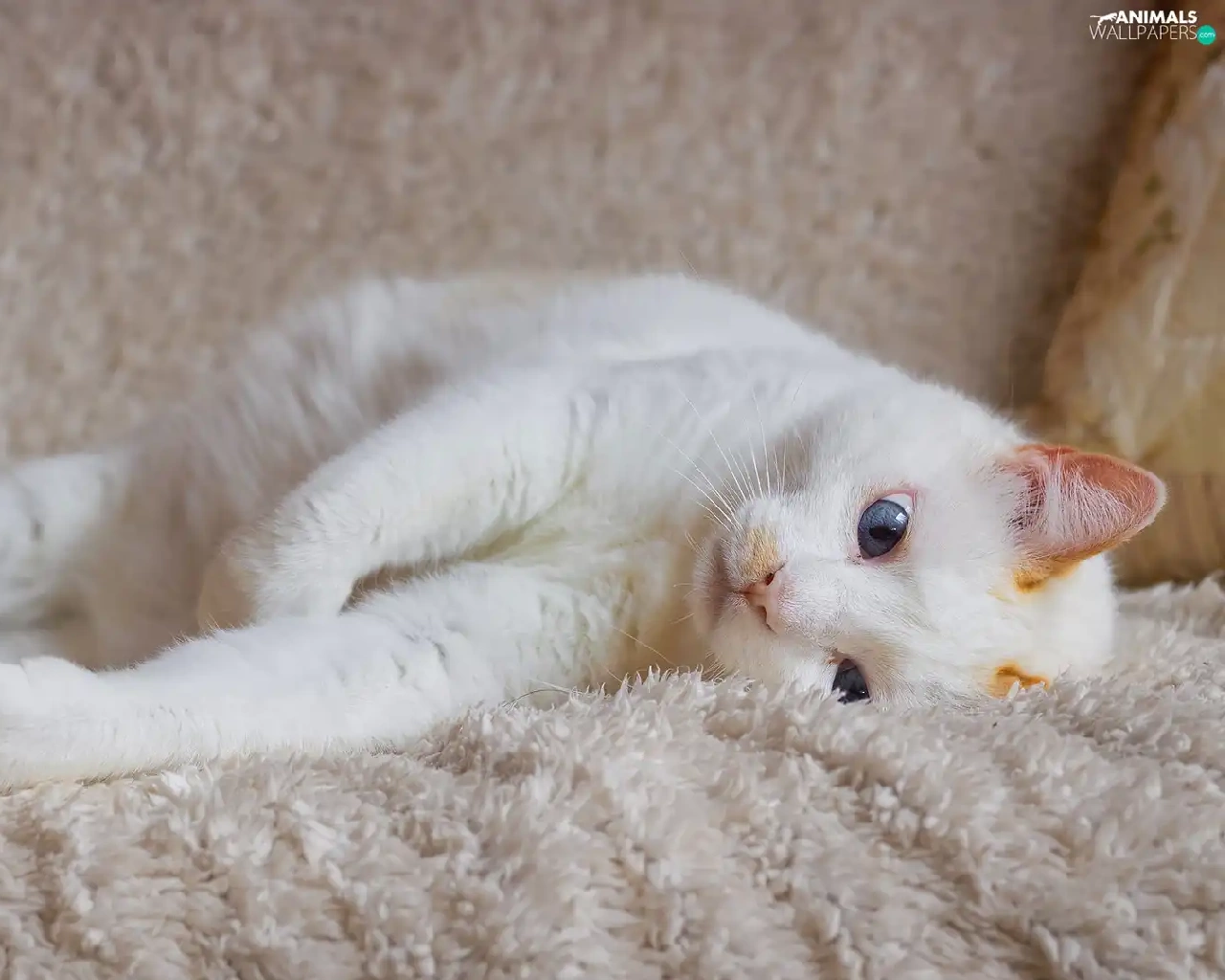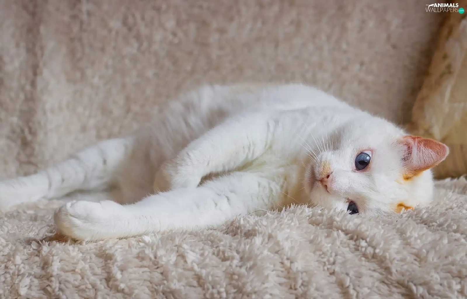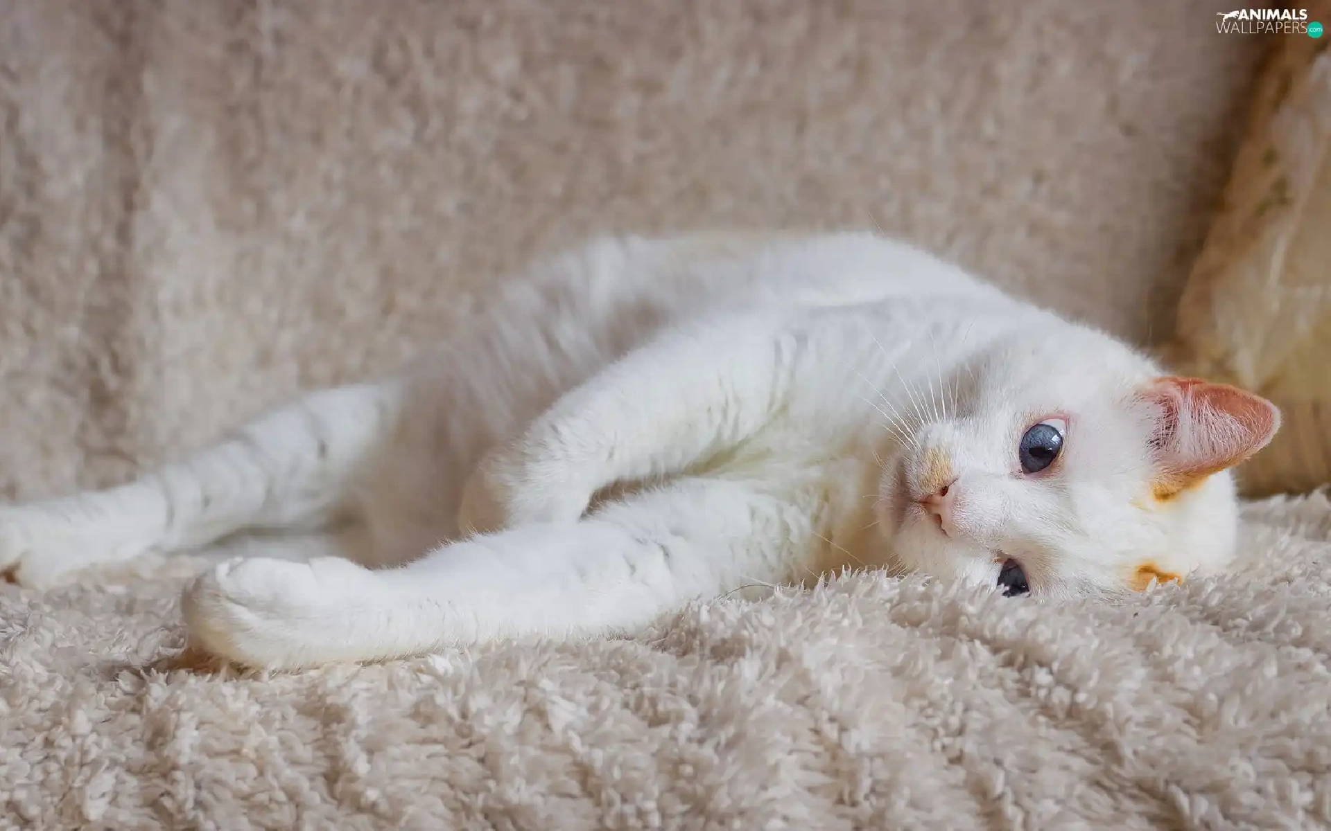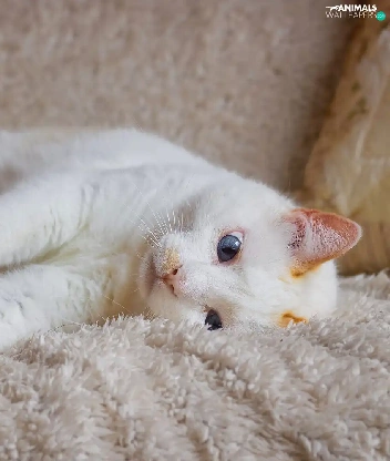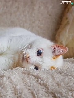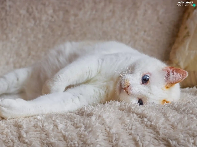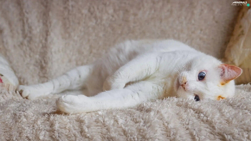 cat, coverlet, Blue Eyed, lying, White