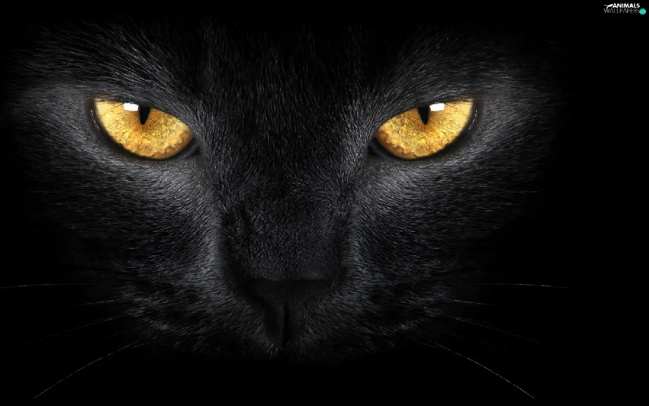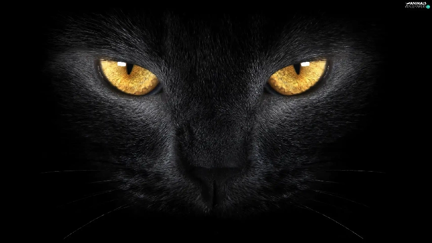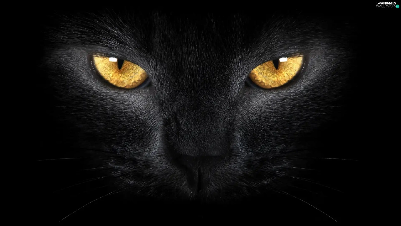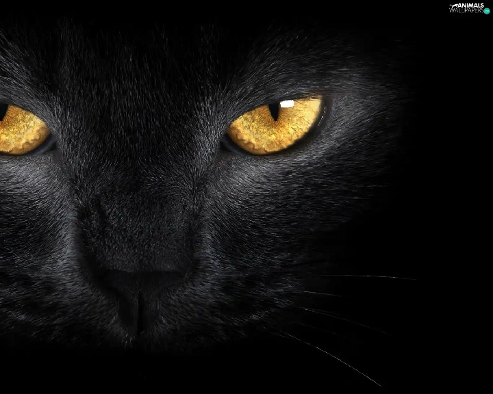Black, Golden, Eyes, cat