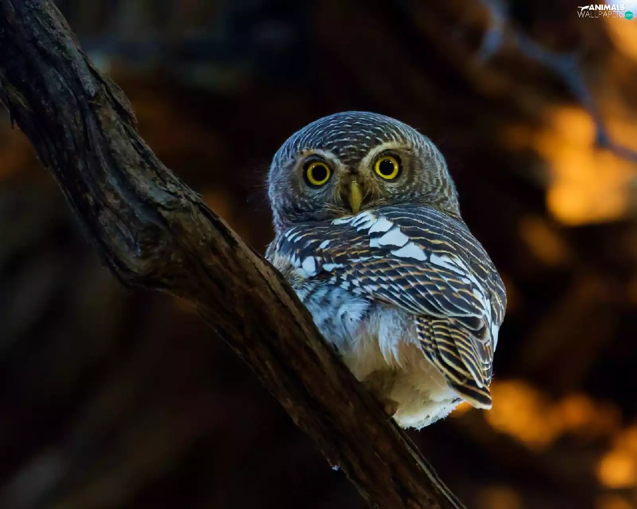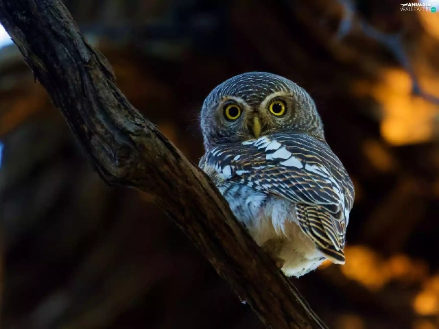 owl, Eyes, branch, Little Owl