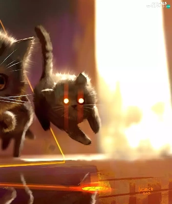 cats, floor, gear, Eyes