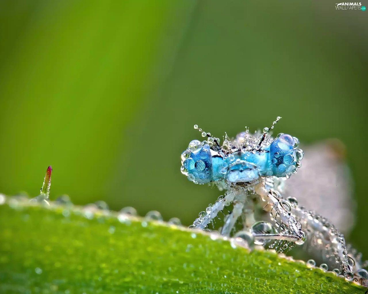 drops, water, Blue, Eyes, dragon-fly