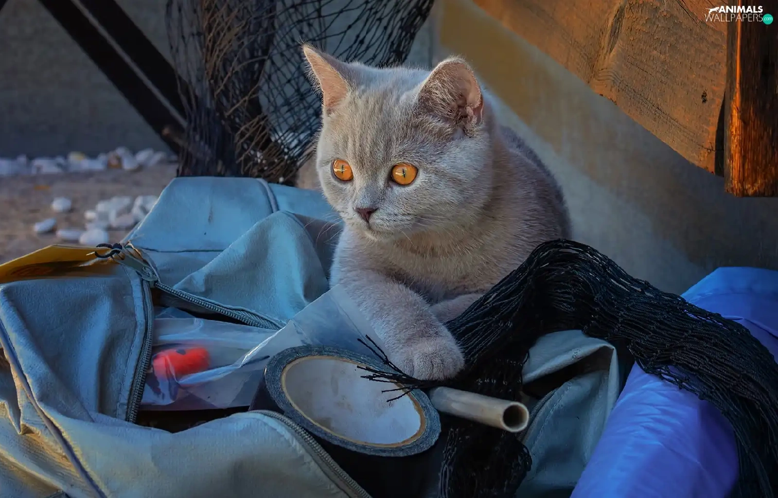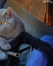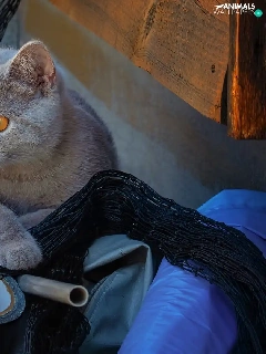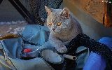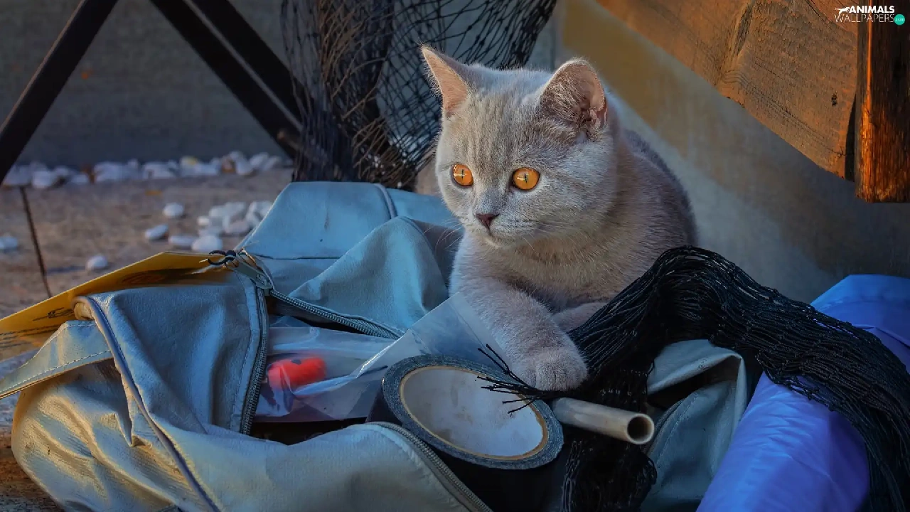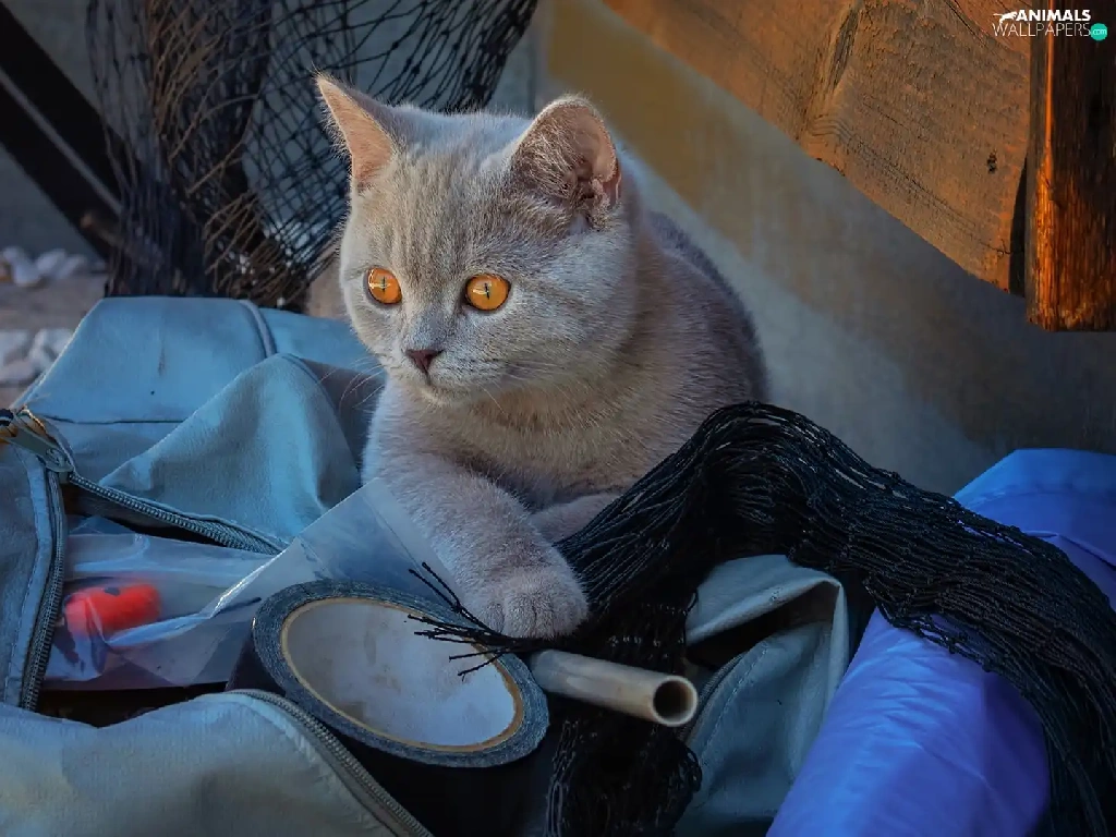 British Shorthair Cat, Eyes, bag, honey