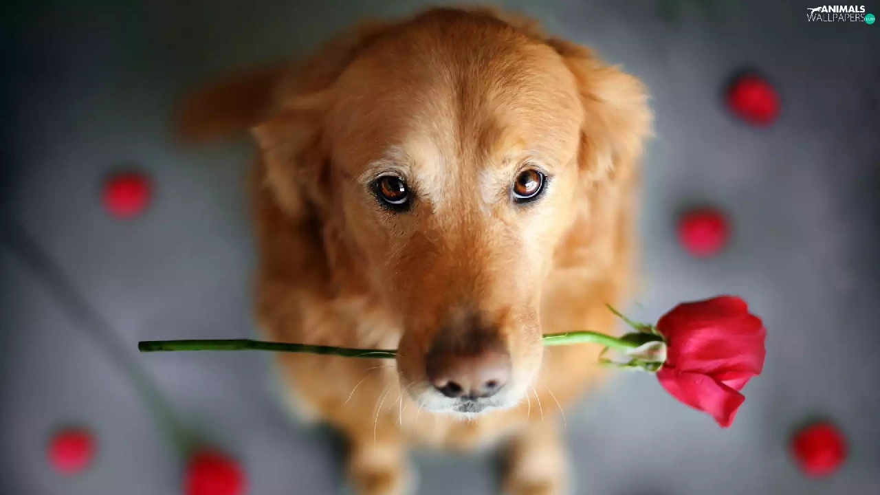 Begging, Eyes, rose, flakes, dog