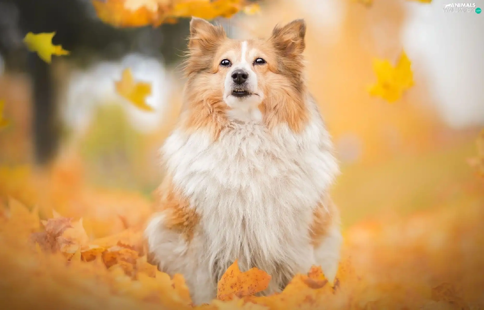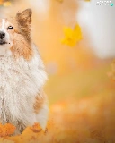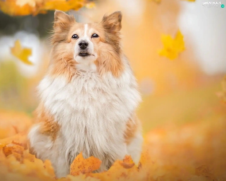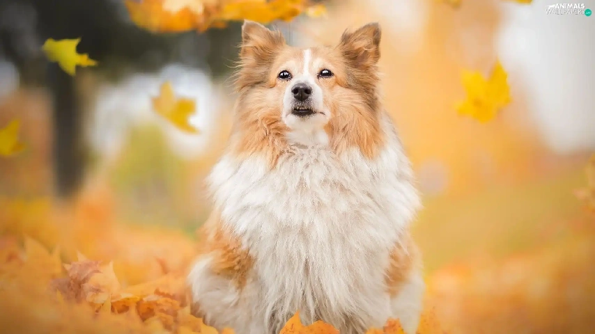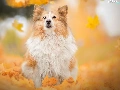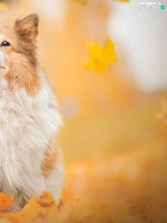 dog, Falling, Leaf, shetland Sheepdog