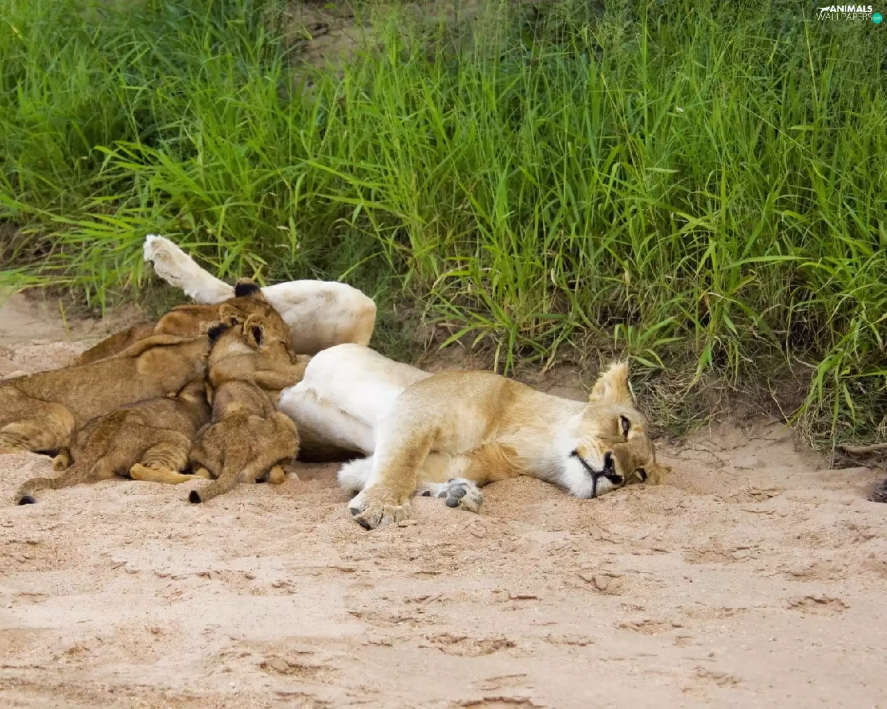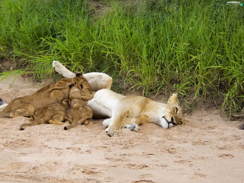 Family, Sleeping, lions