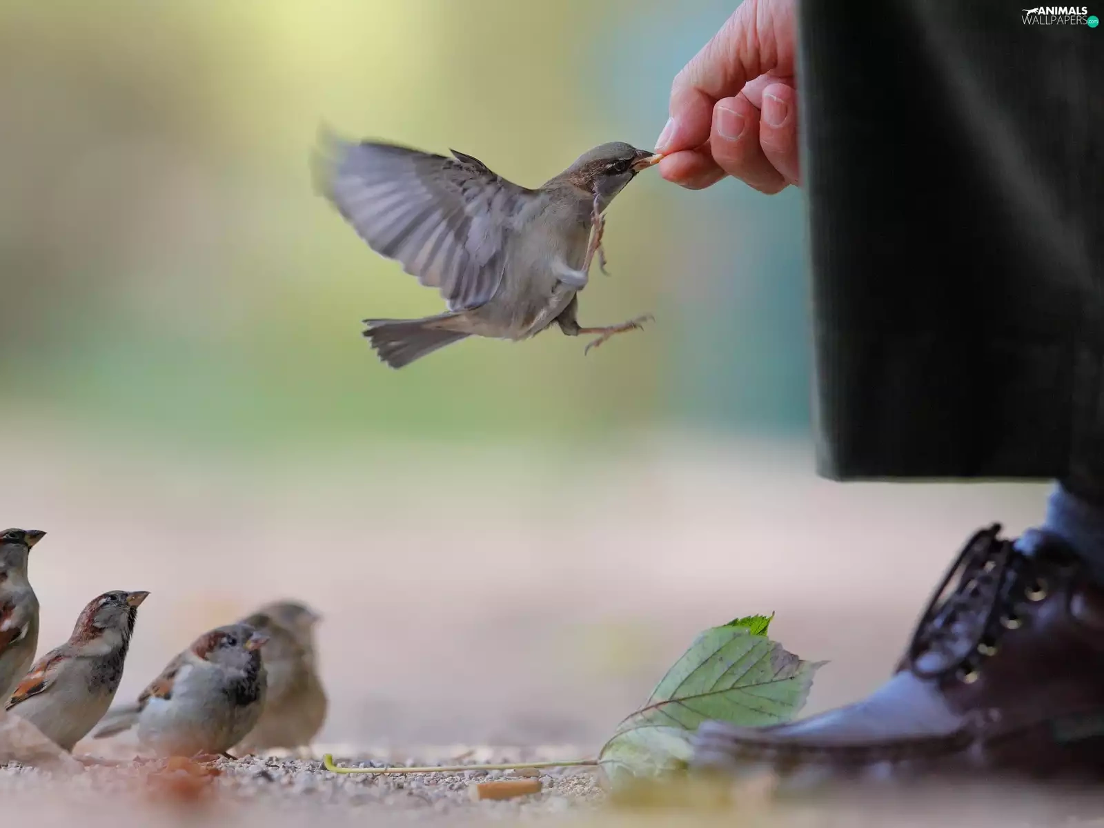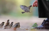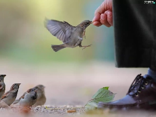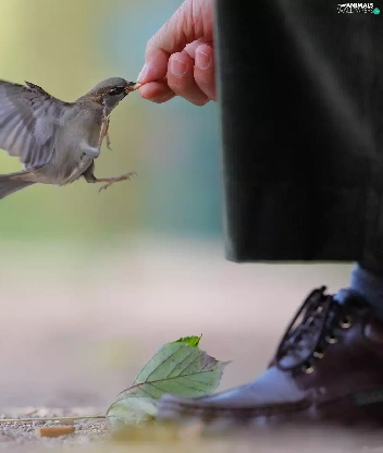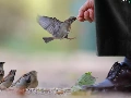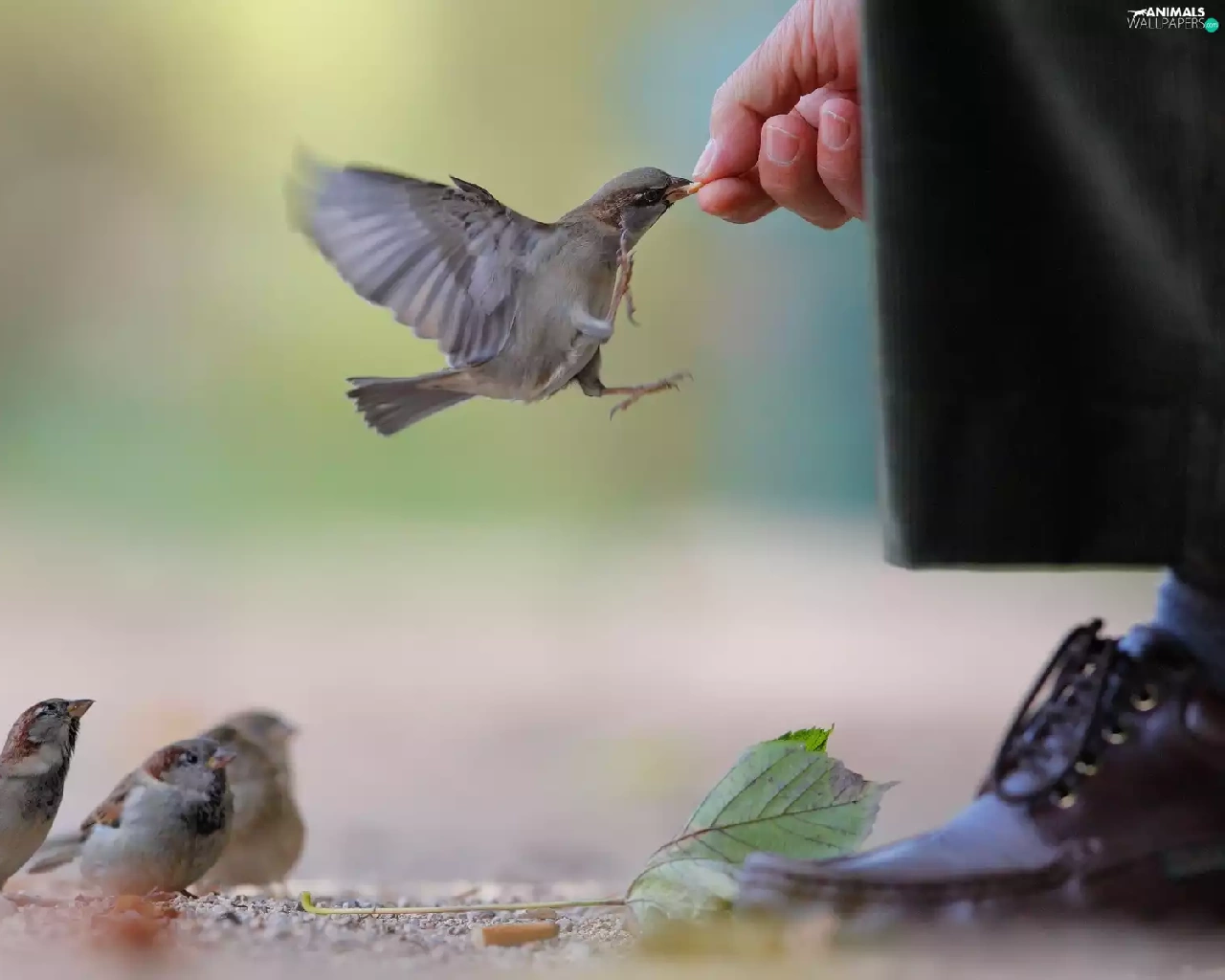 sparrows, by, human, fed