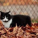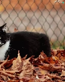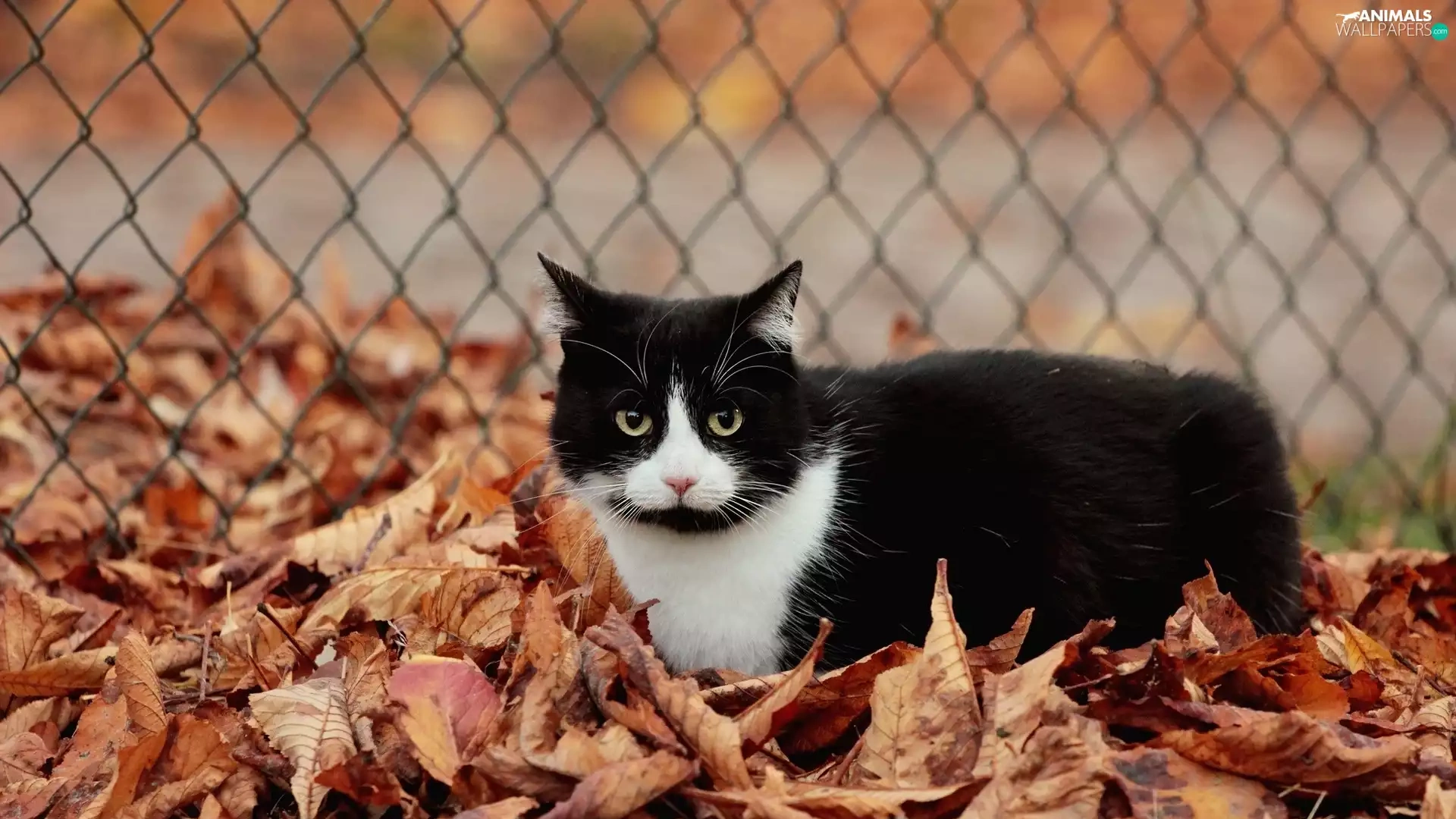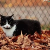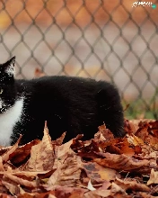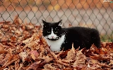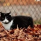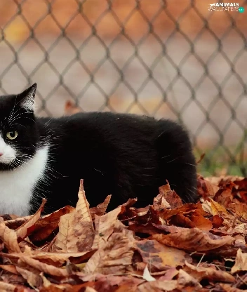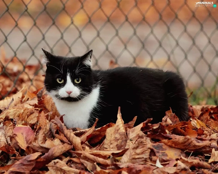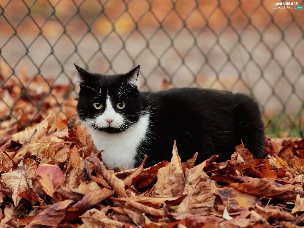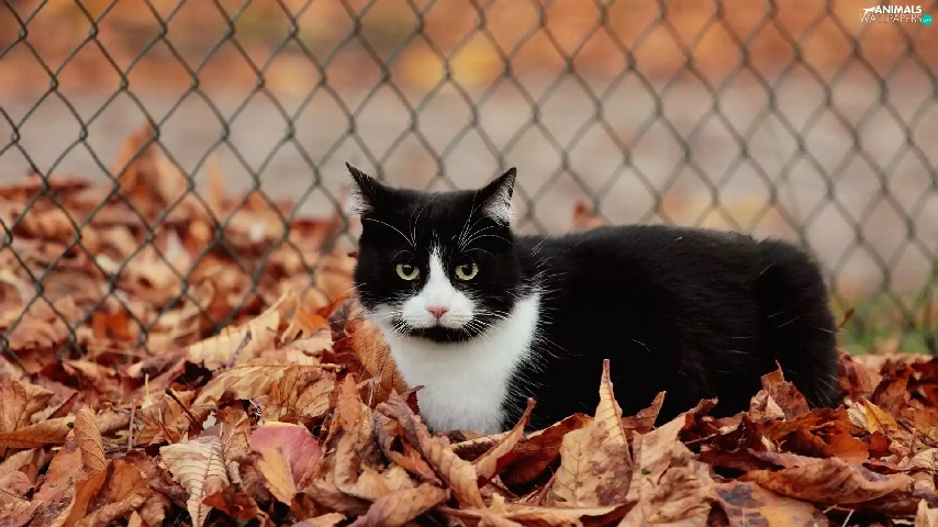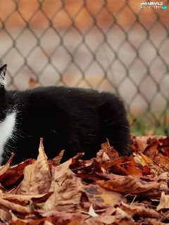 Leaf, fence, cat, Autumn, Black