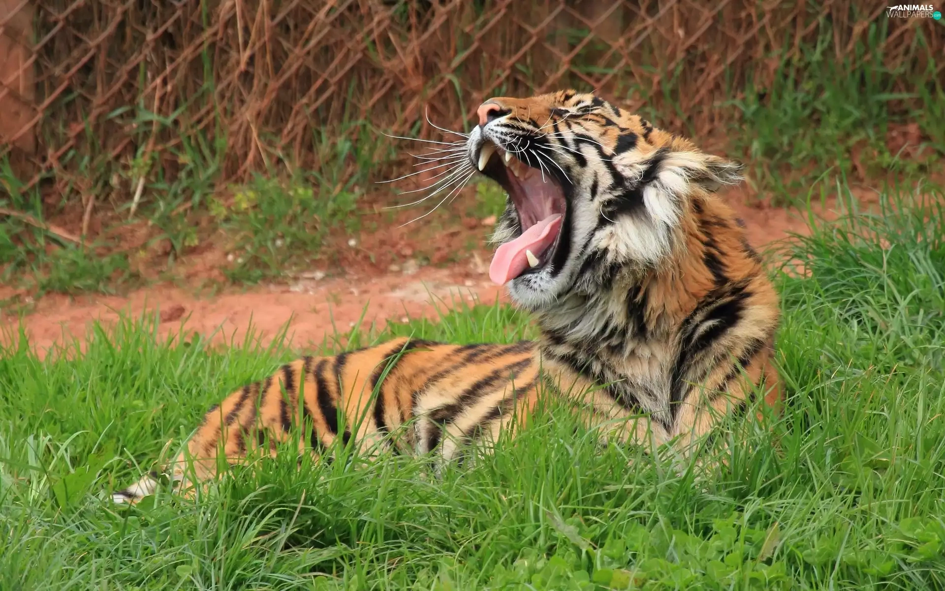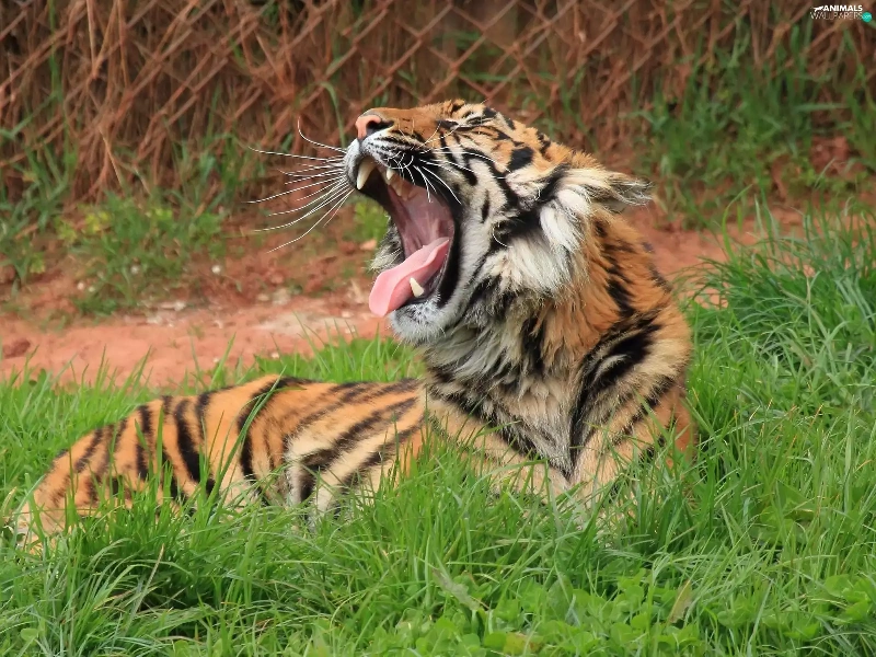 fence, tiger, grass