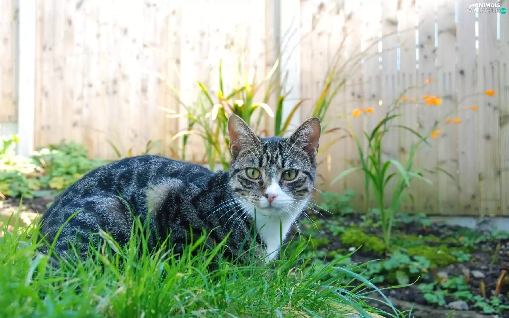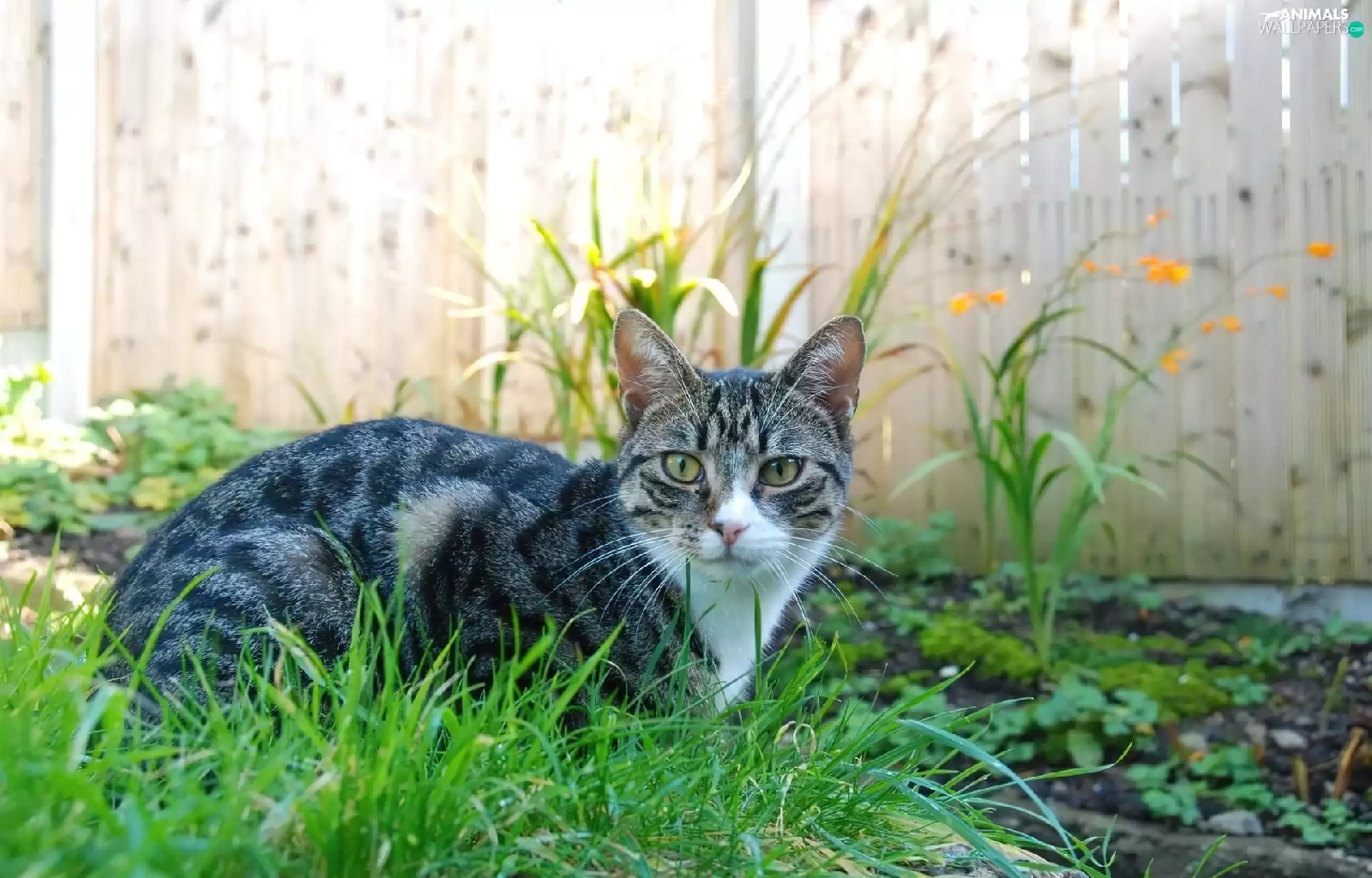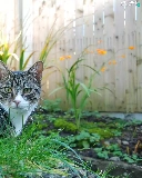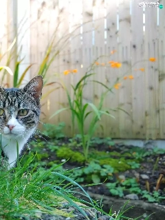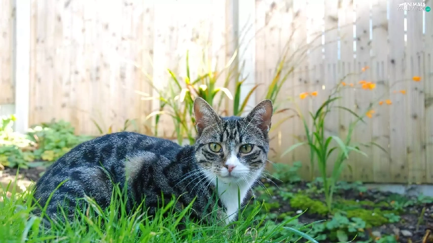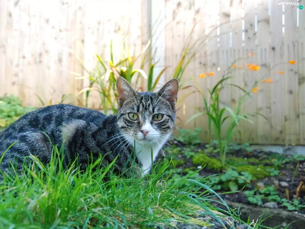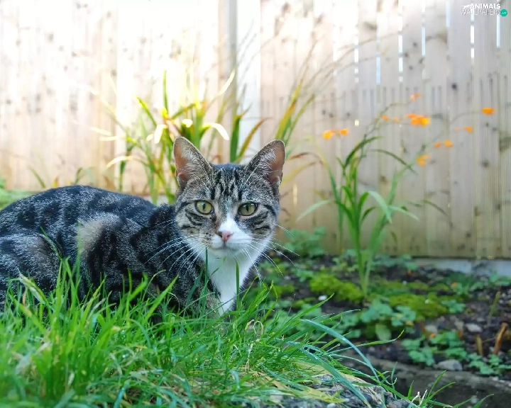 fence, cat, Plants