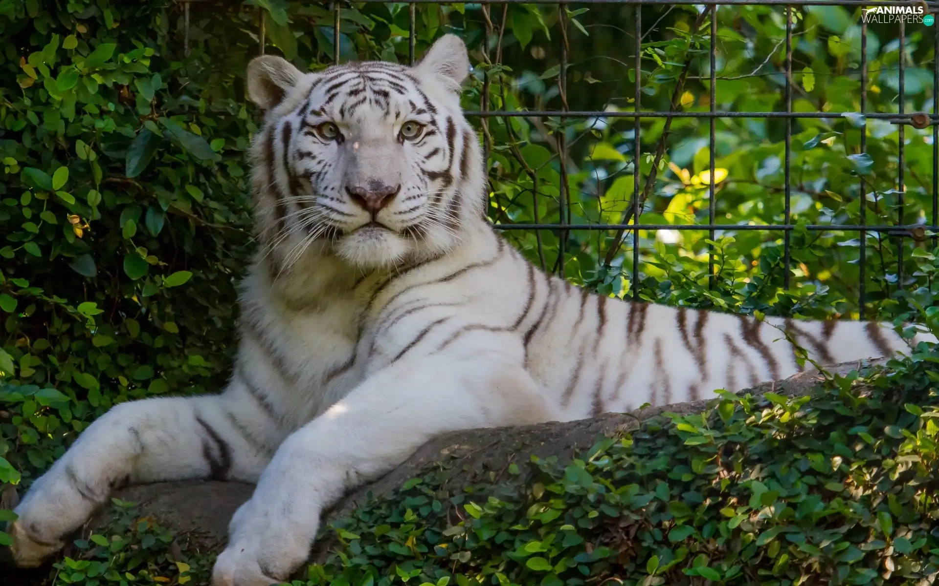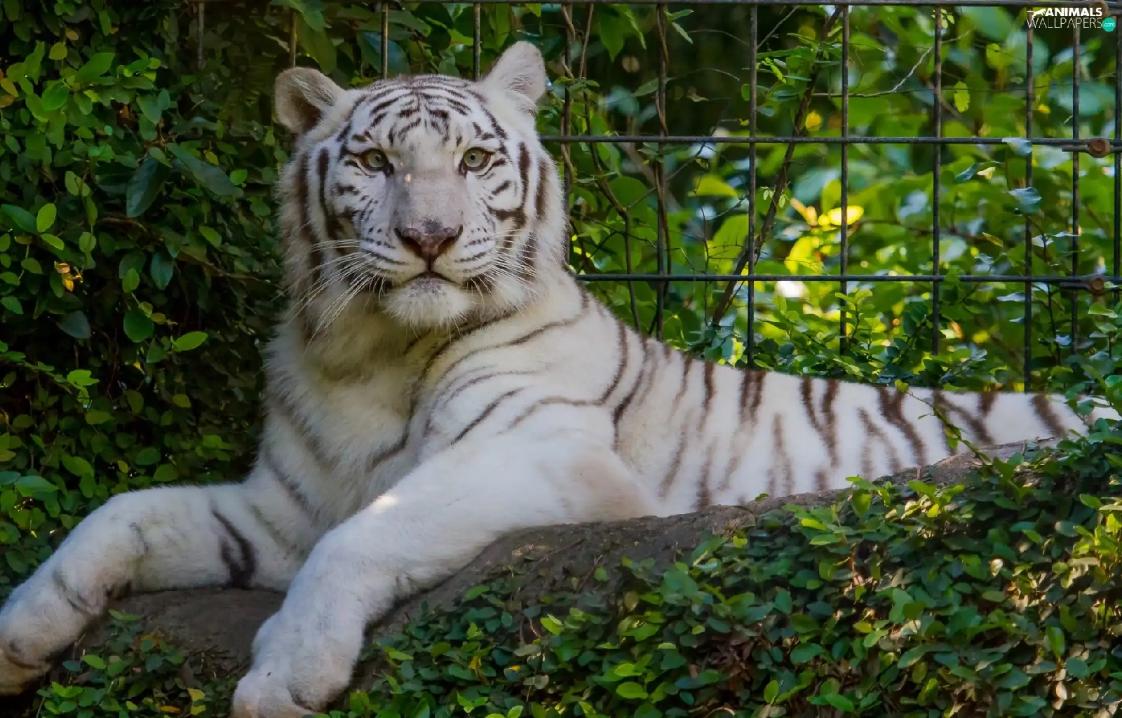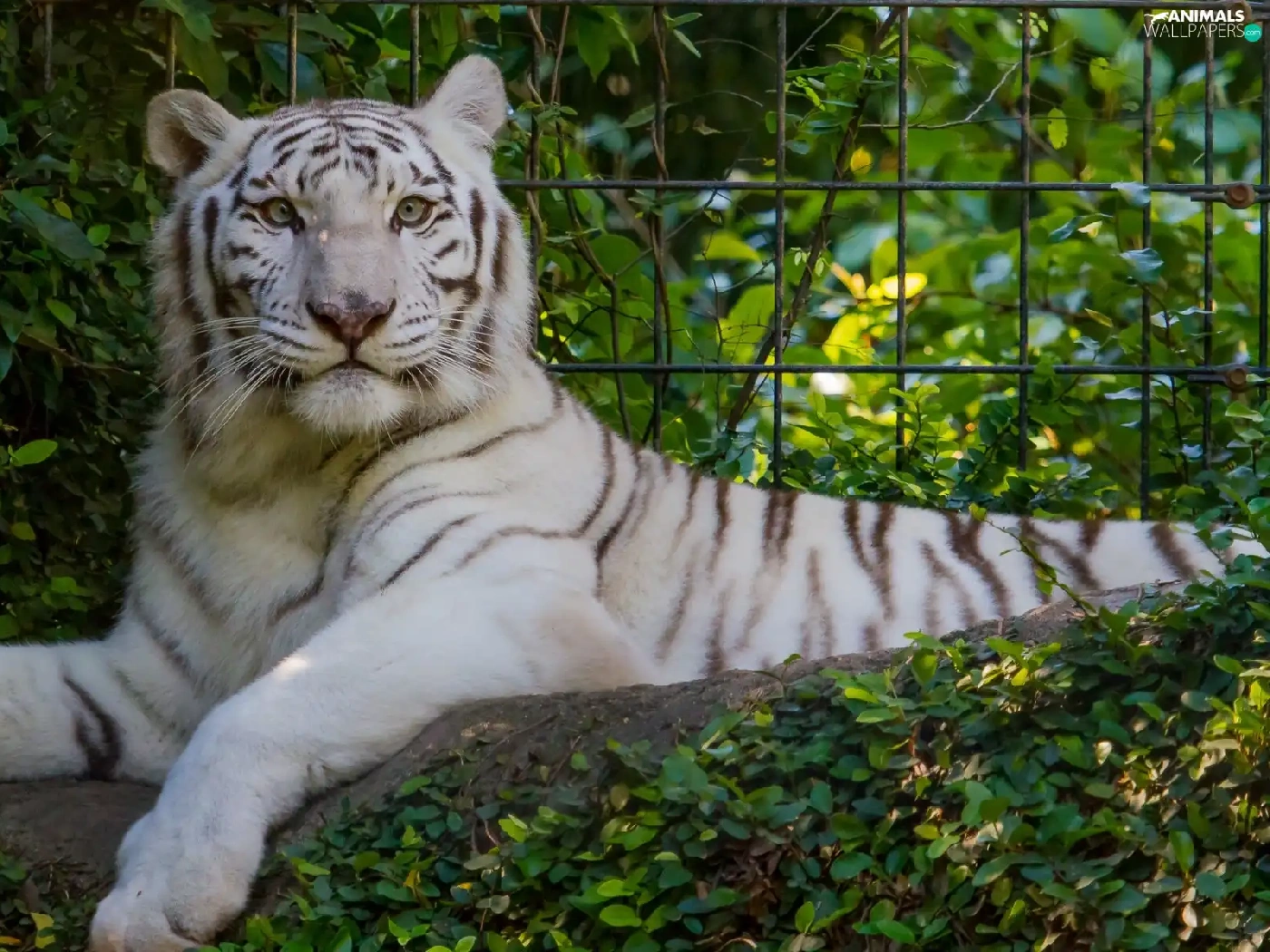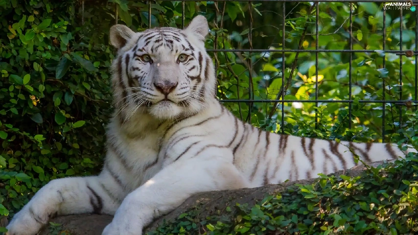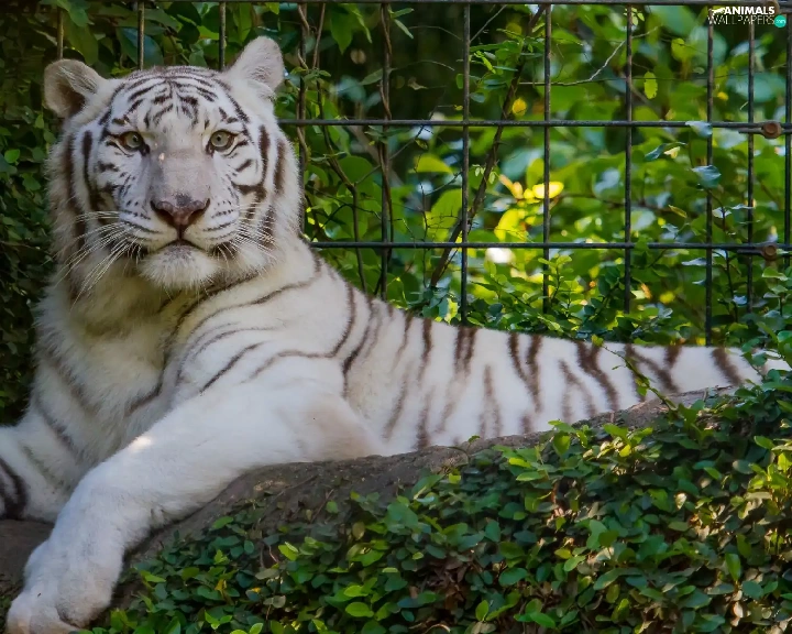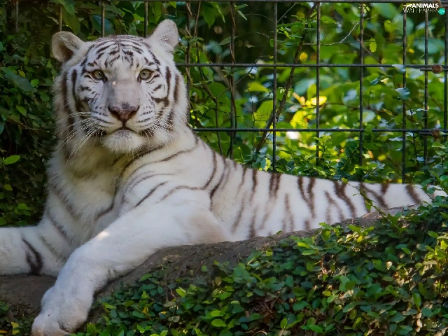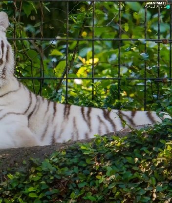 White, Bush, fence, tiger