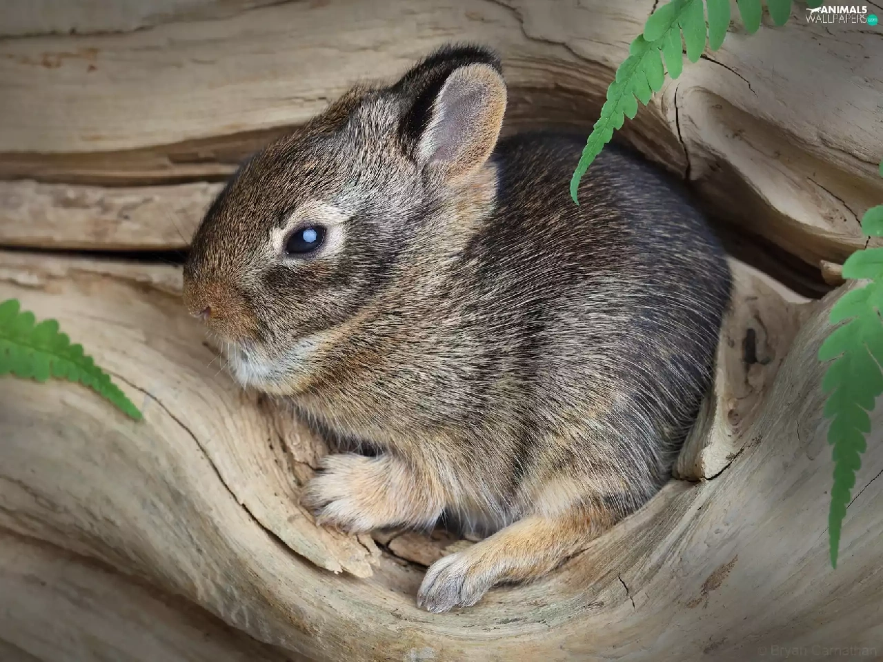 Wild Rabbit, hole, Leaf, small, trees, camouflage, Fern