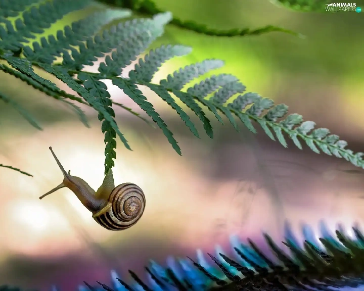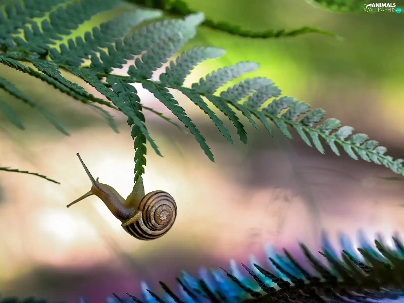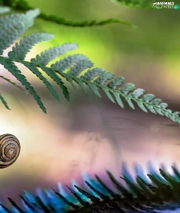 fern, snail, leaf