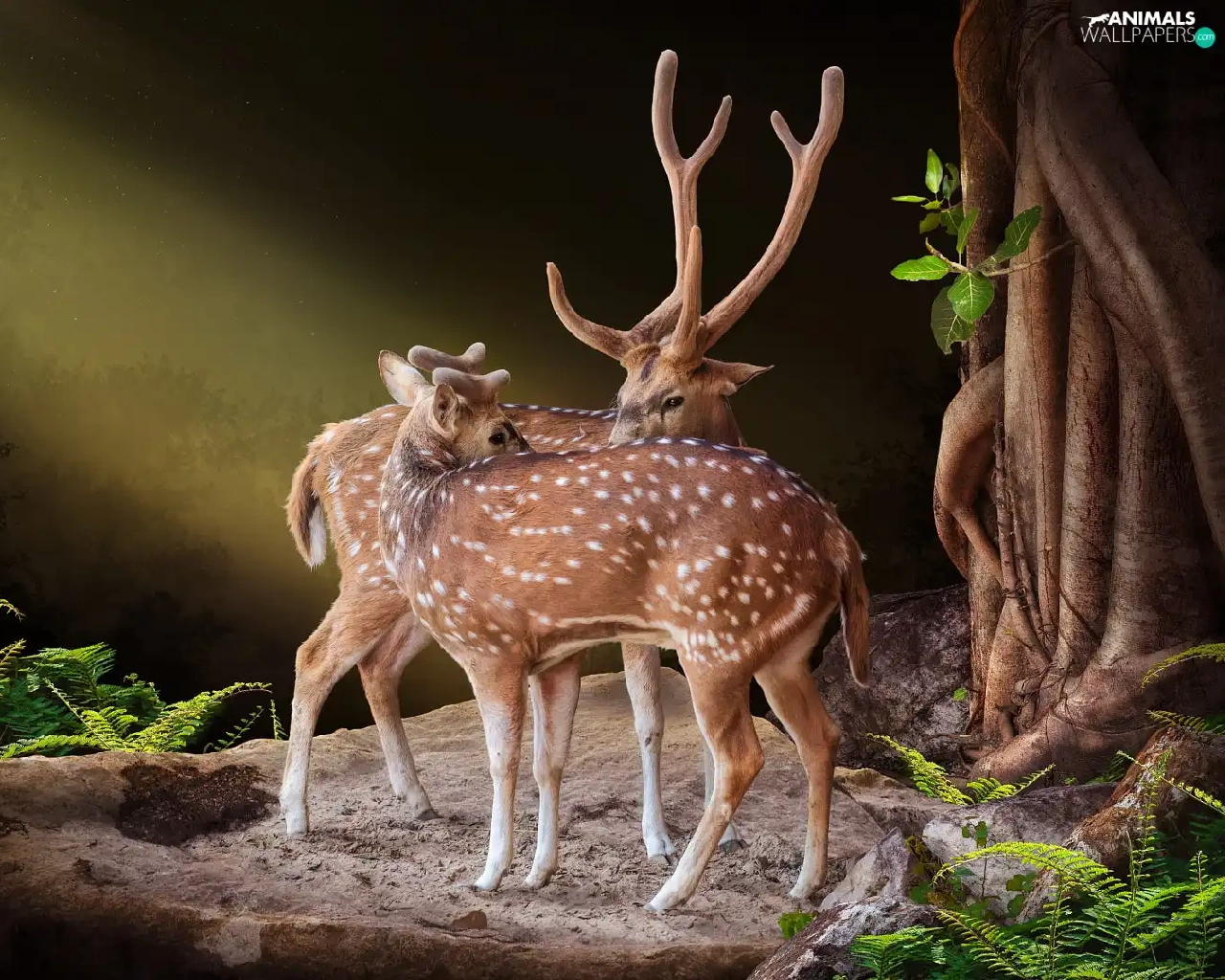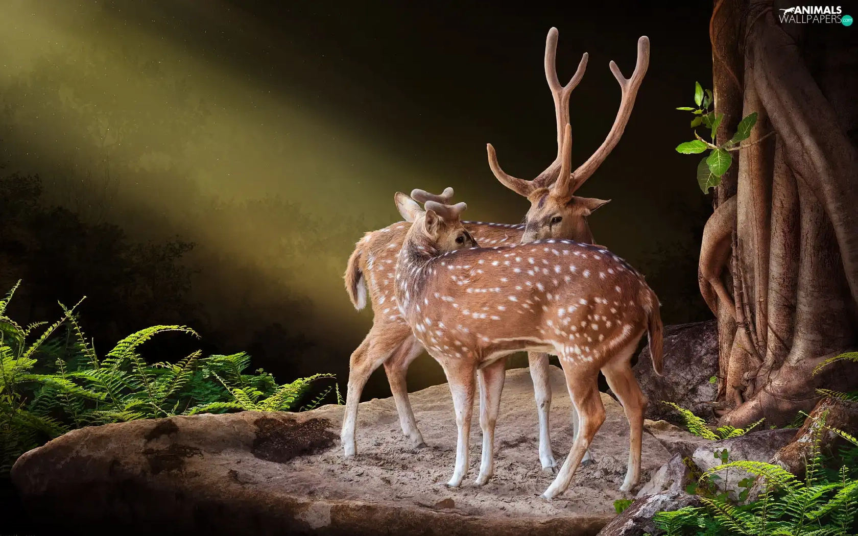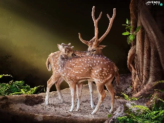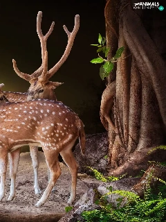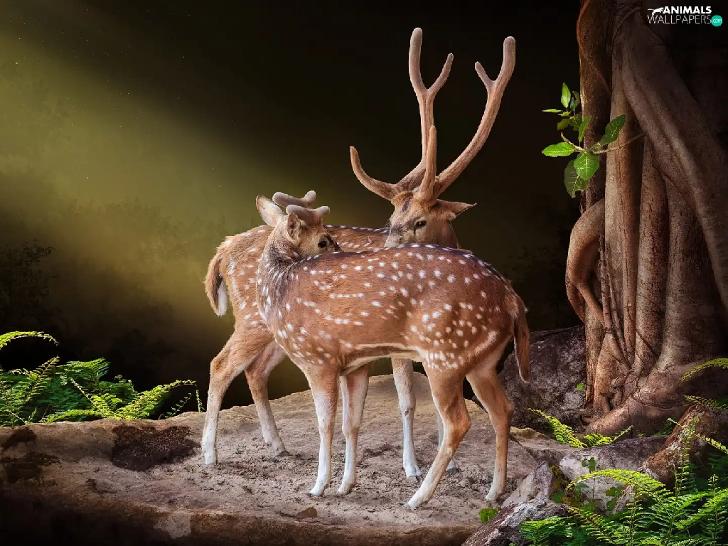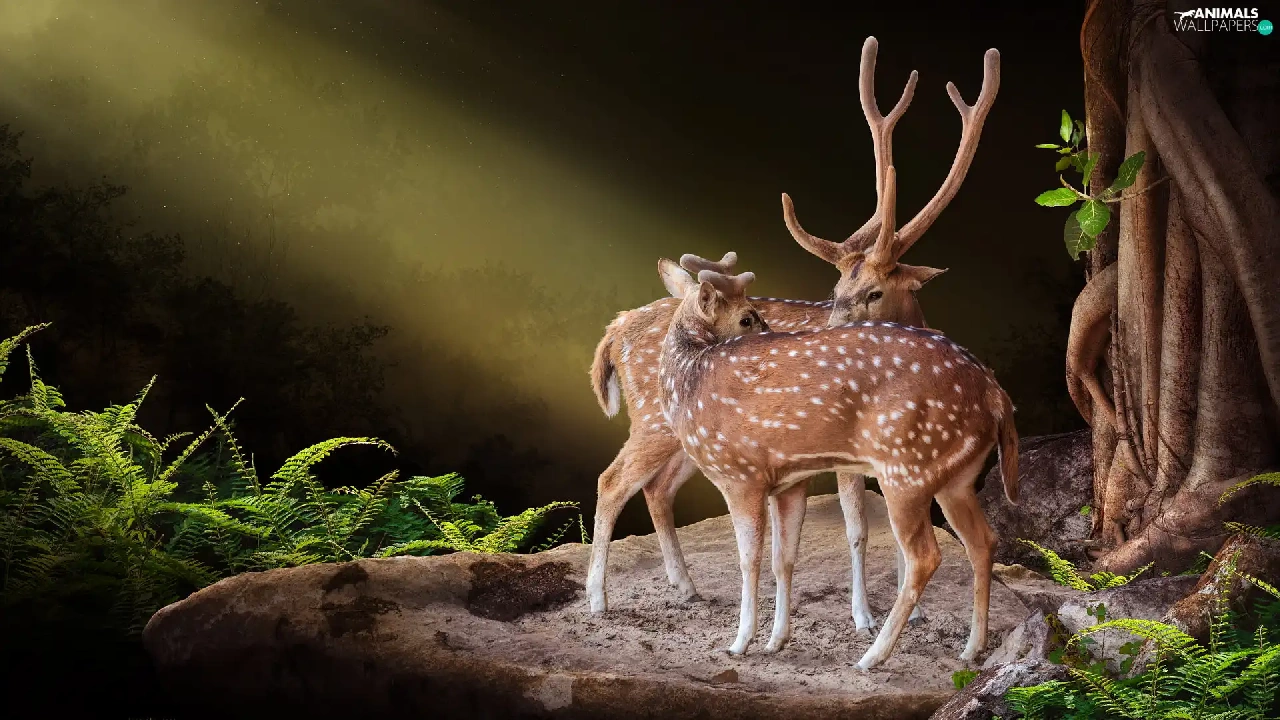 fern, Deer, Rocks