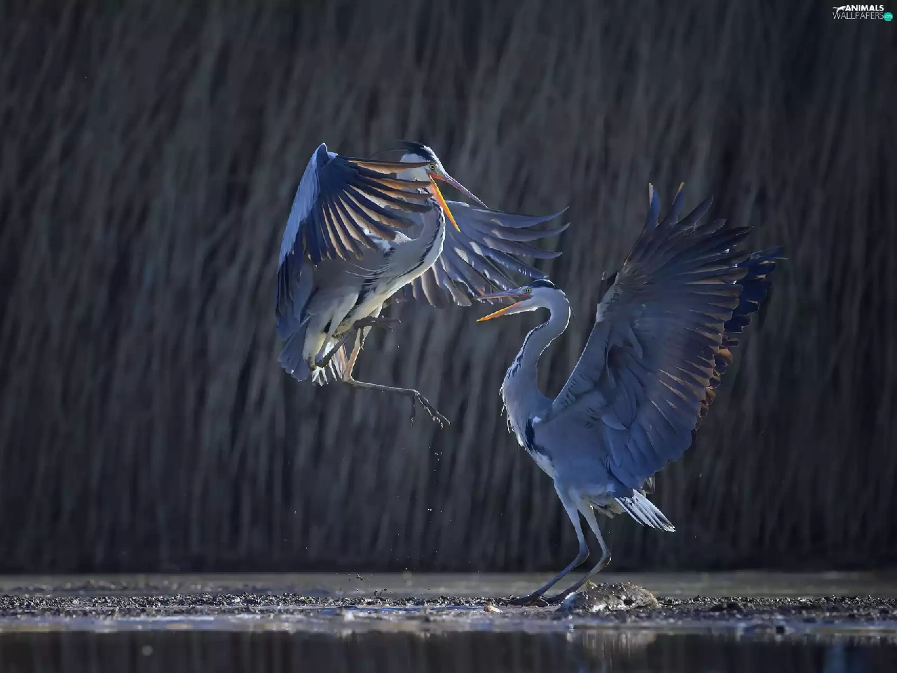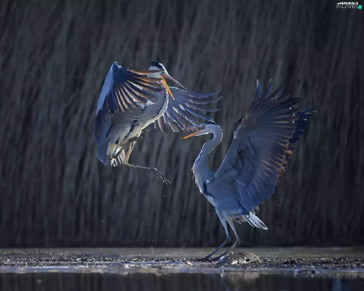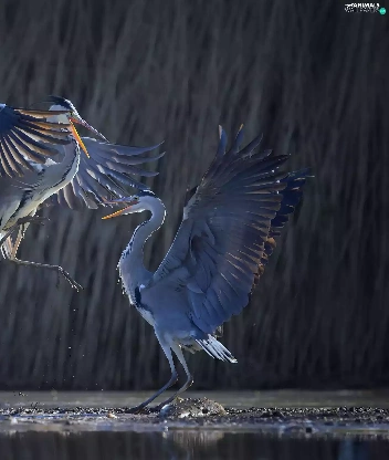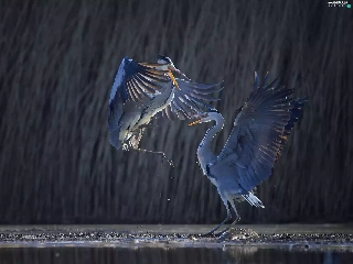 Great Blue Heron, festivities, water, dance