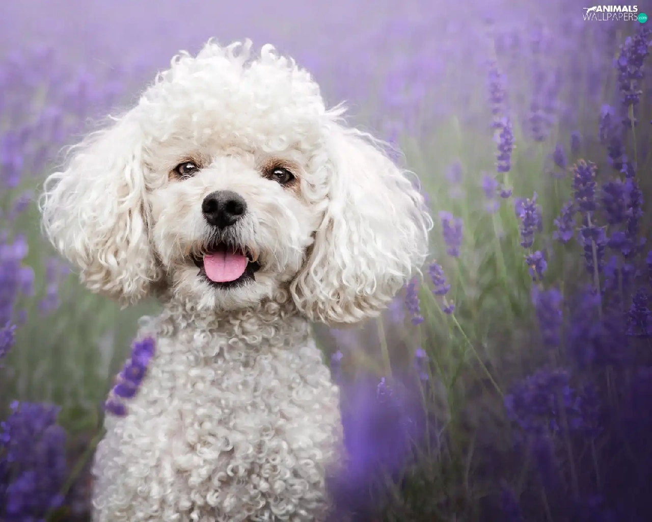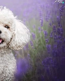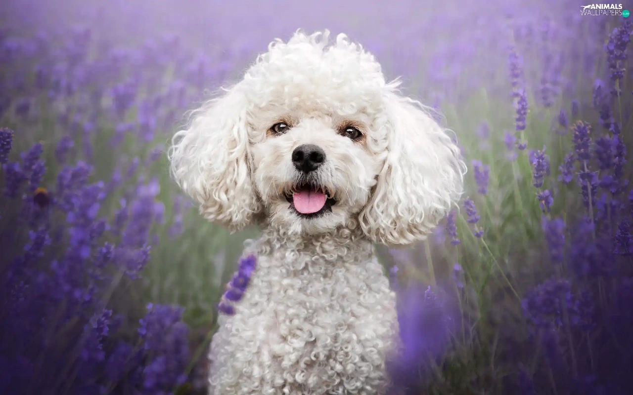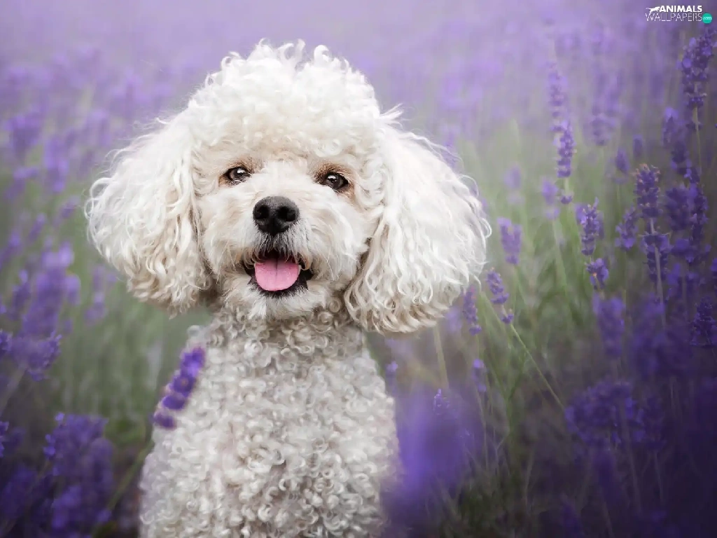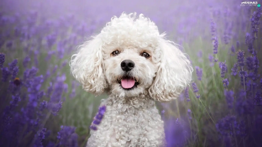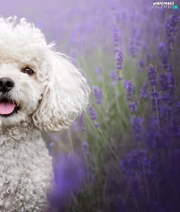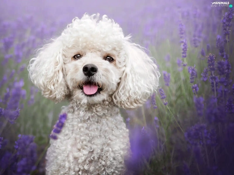 lavender, Field, White, poodle, dog