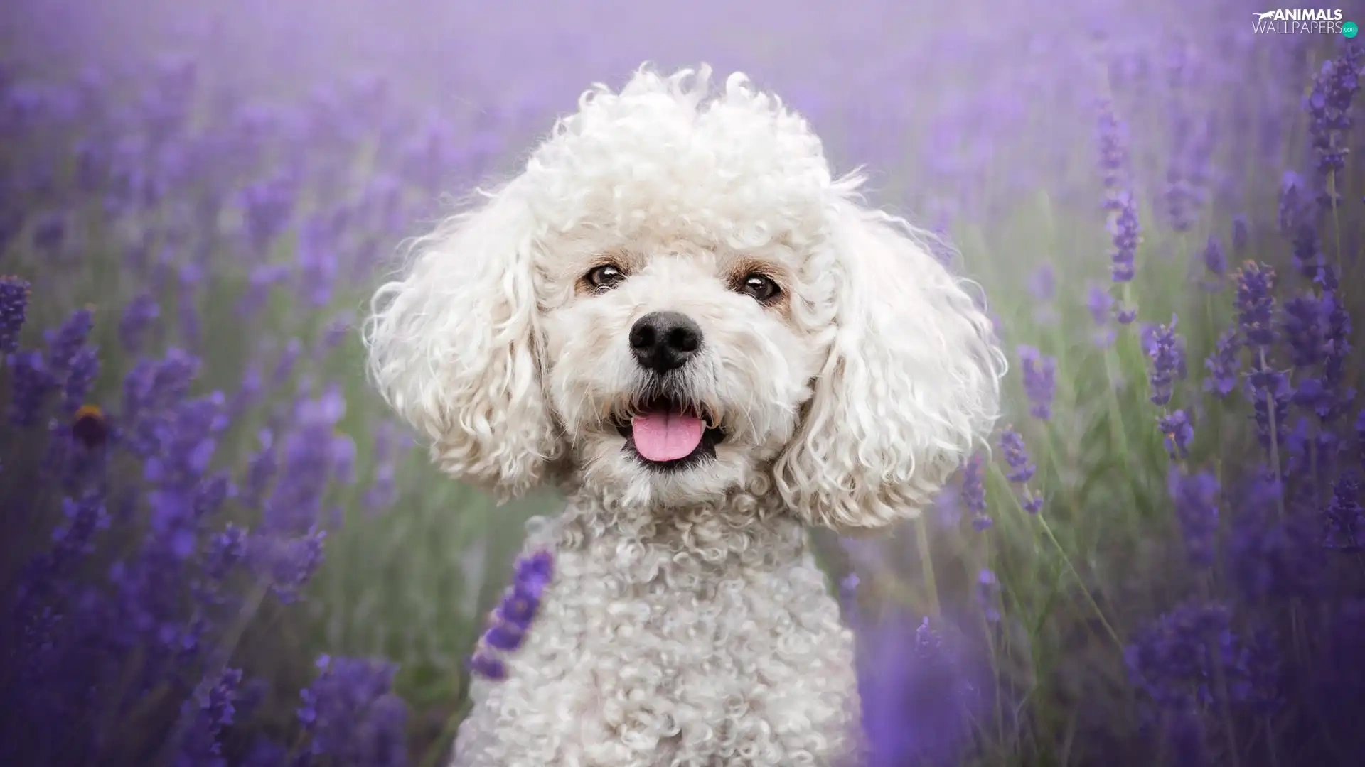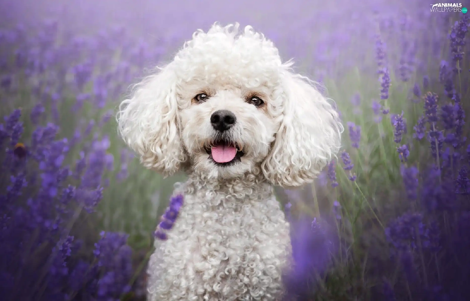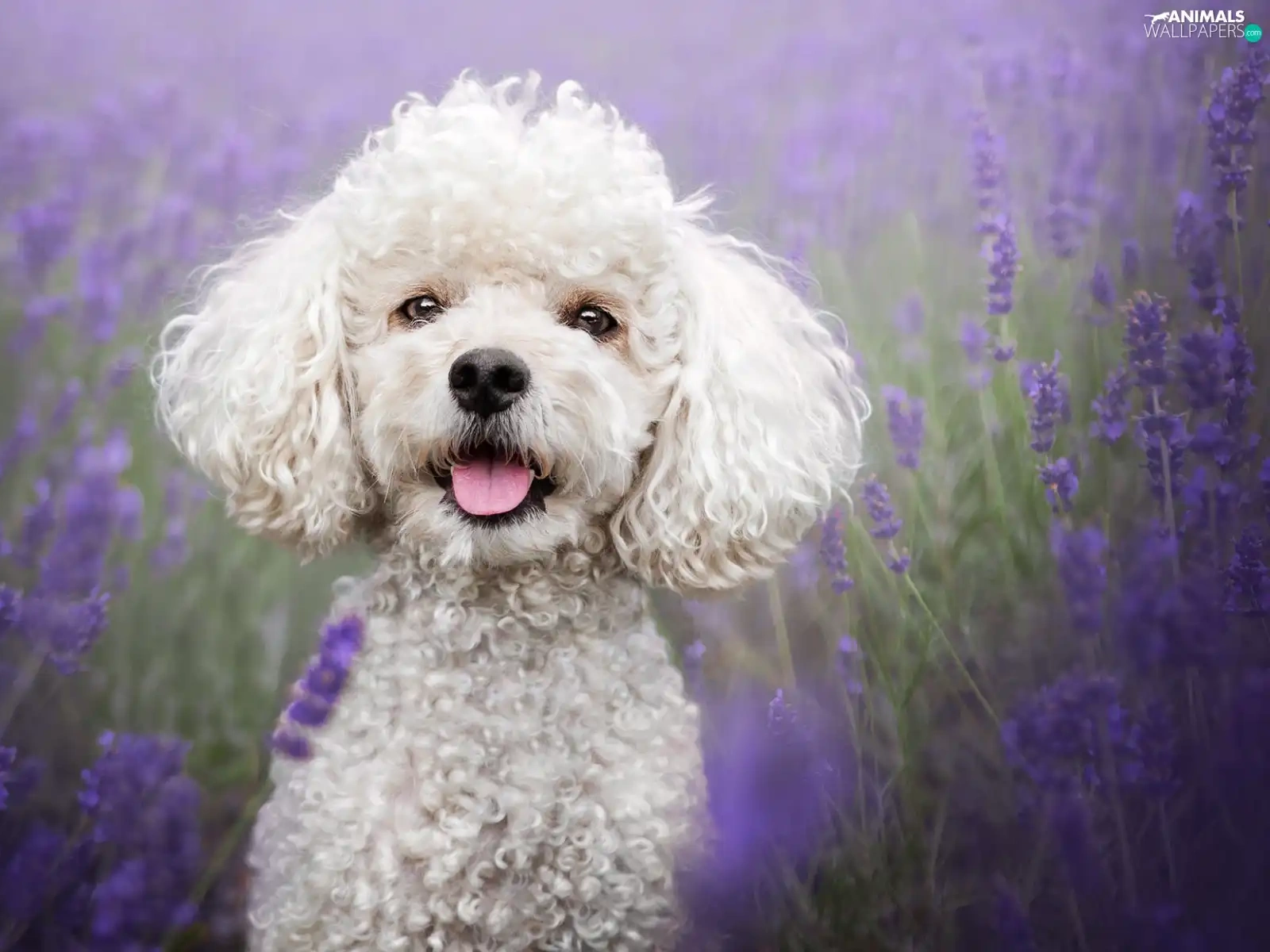 lavender, Field, White, poodle, dog