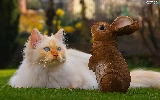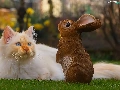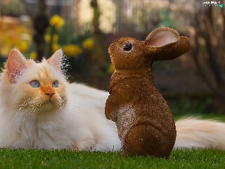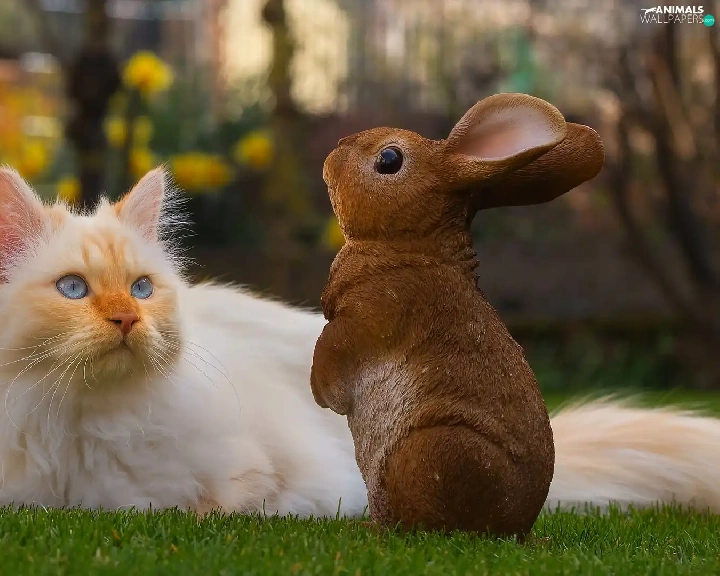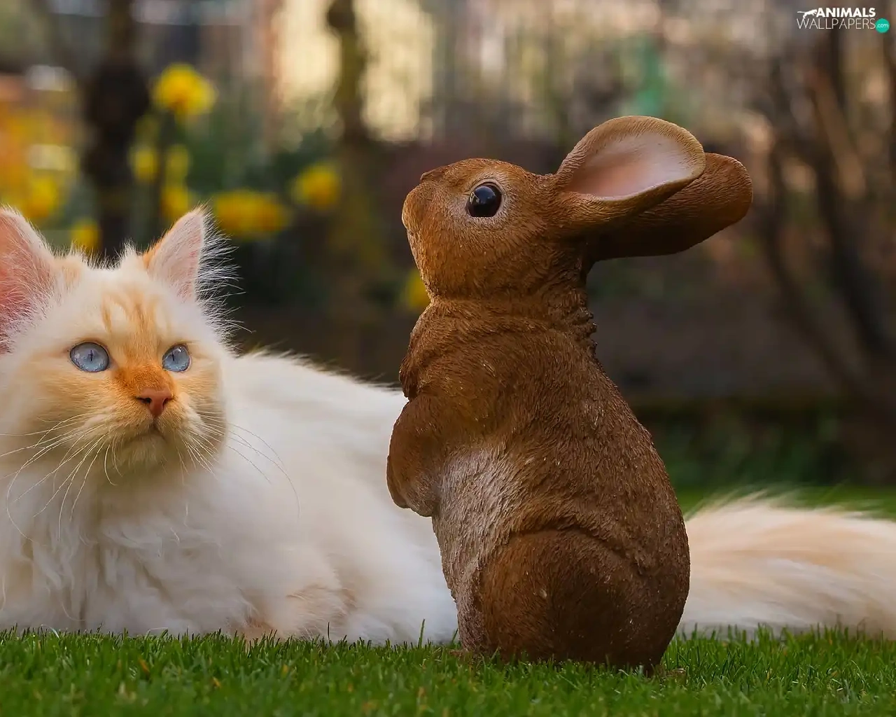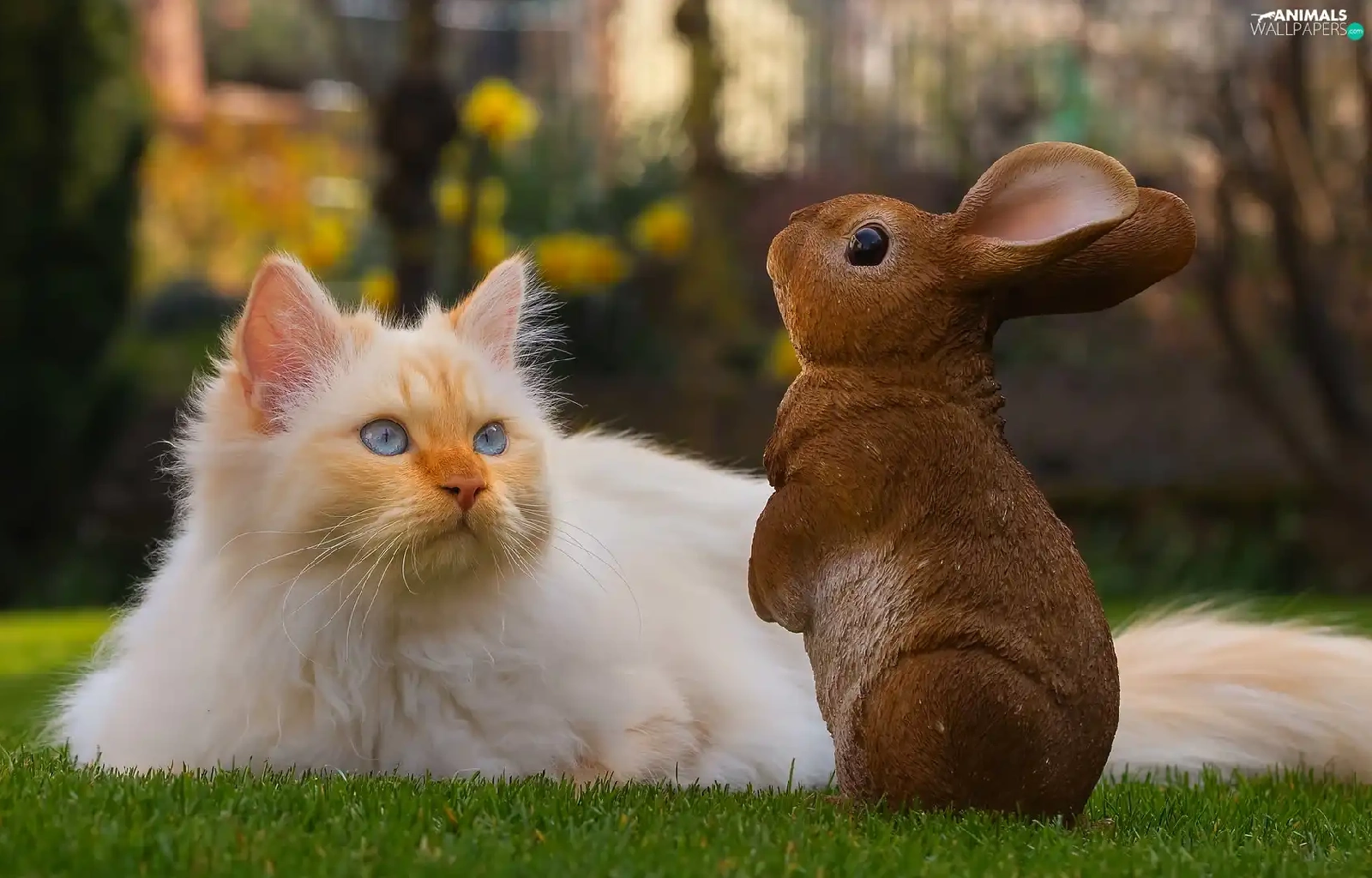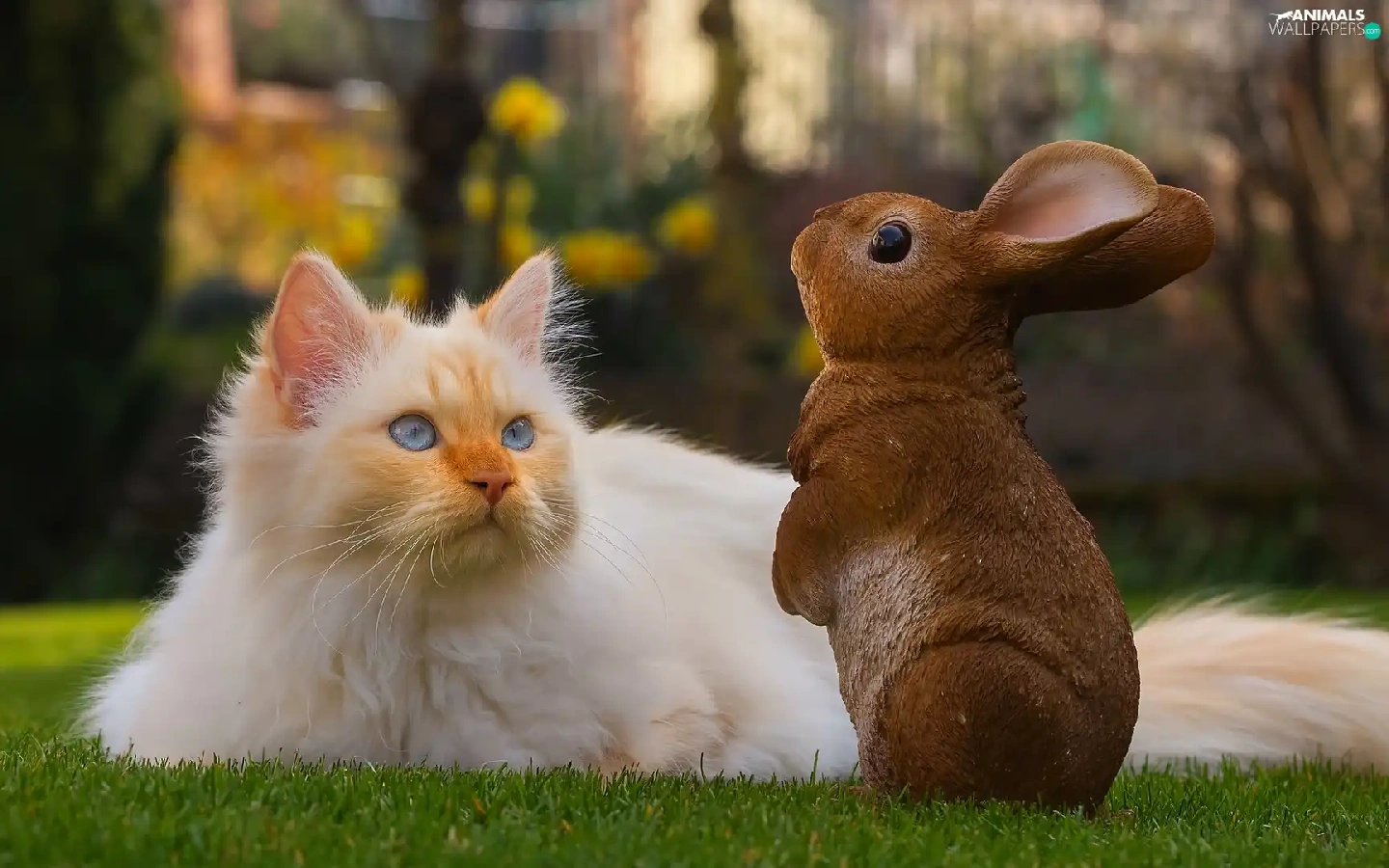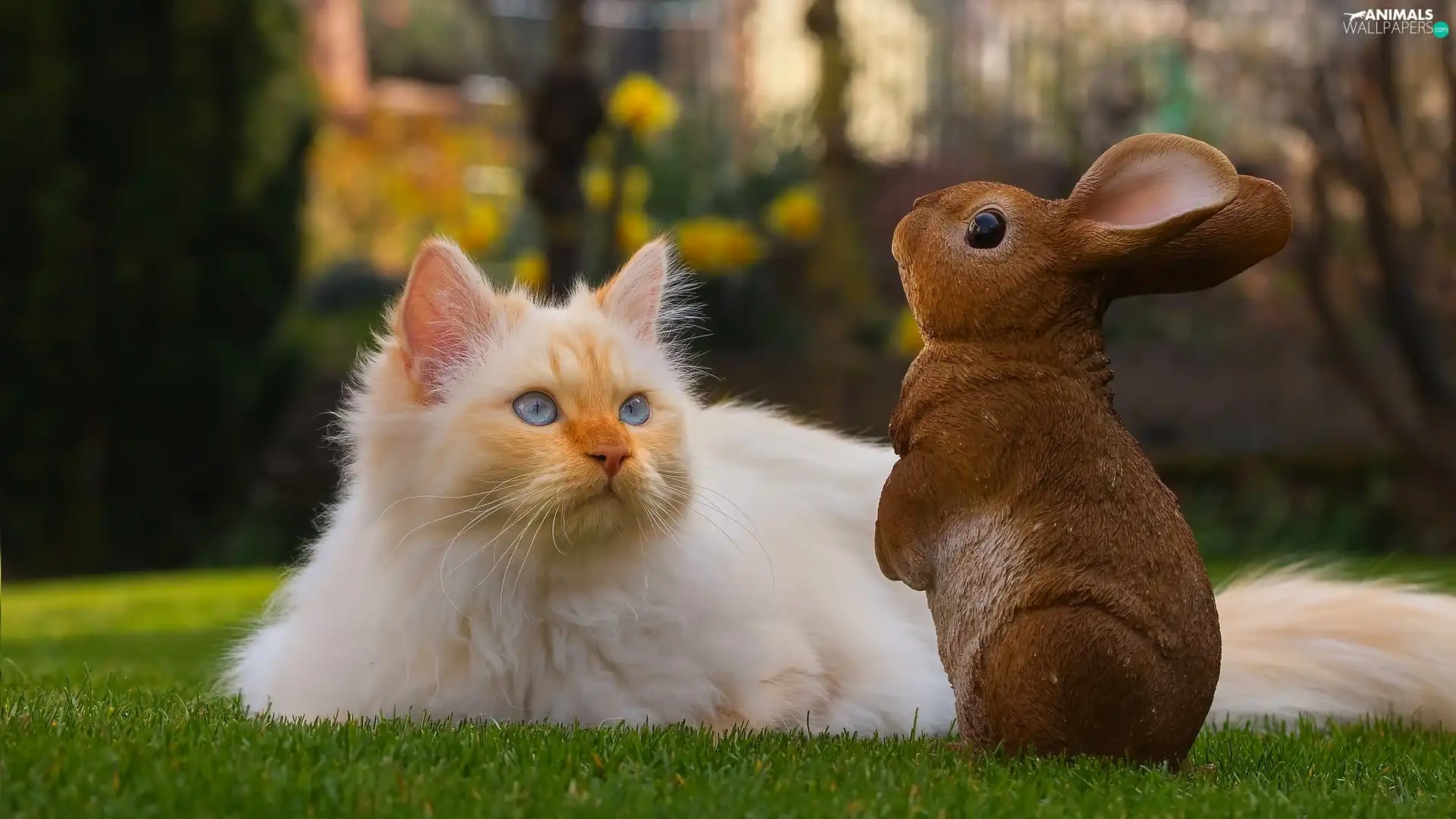 Blue Eyed, lying, figure, rabbit, cat, Reddish