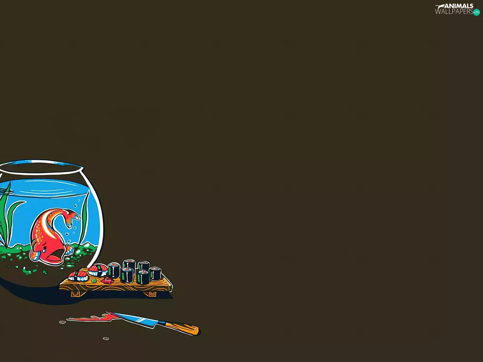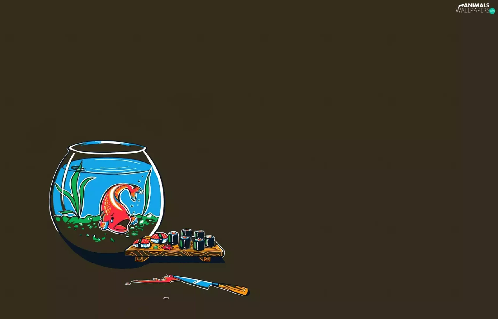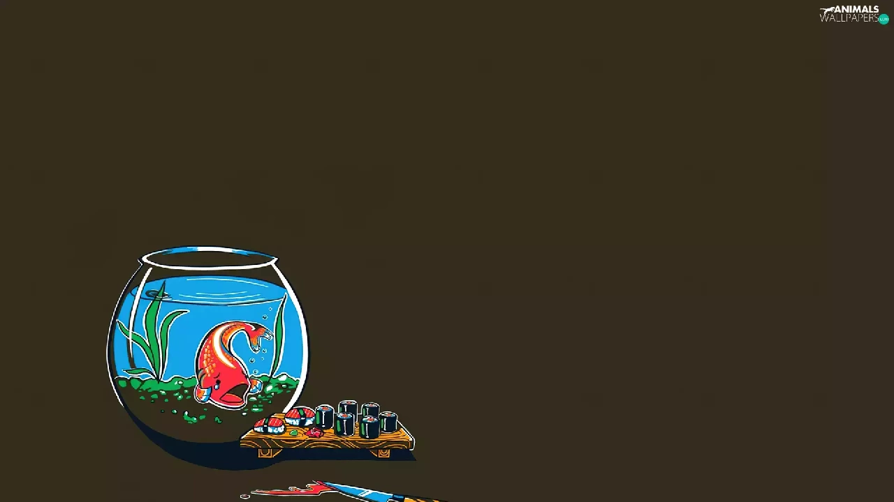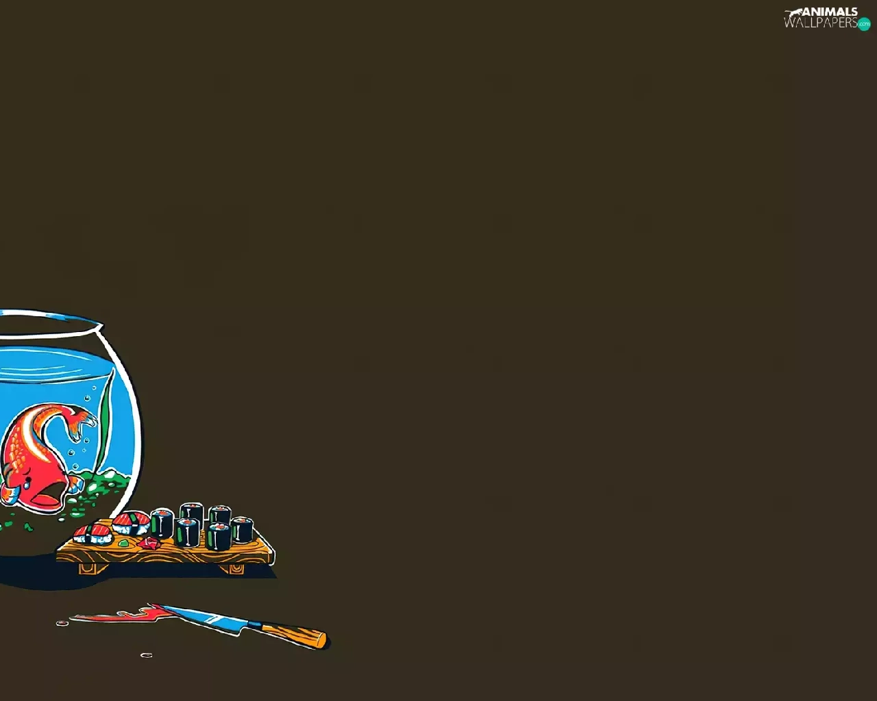 aquarium, Sushi, knife, fish