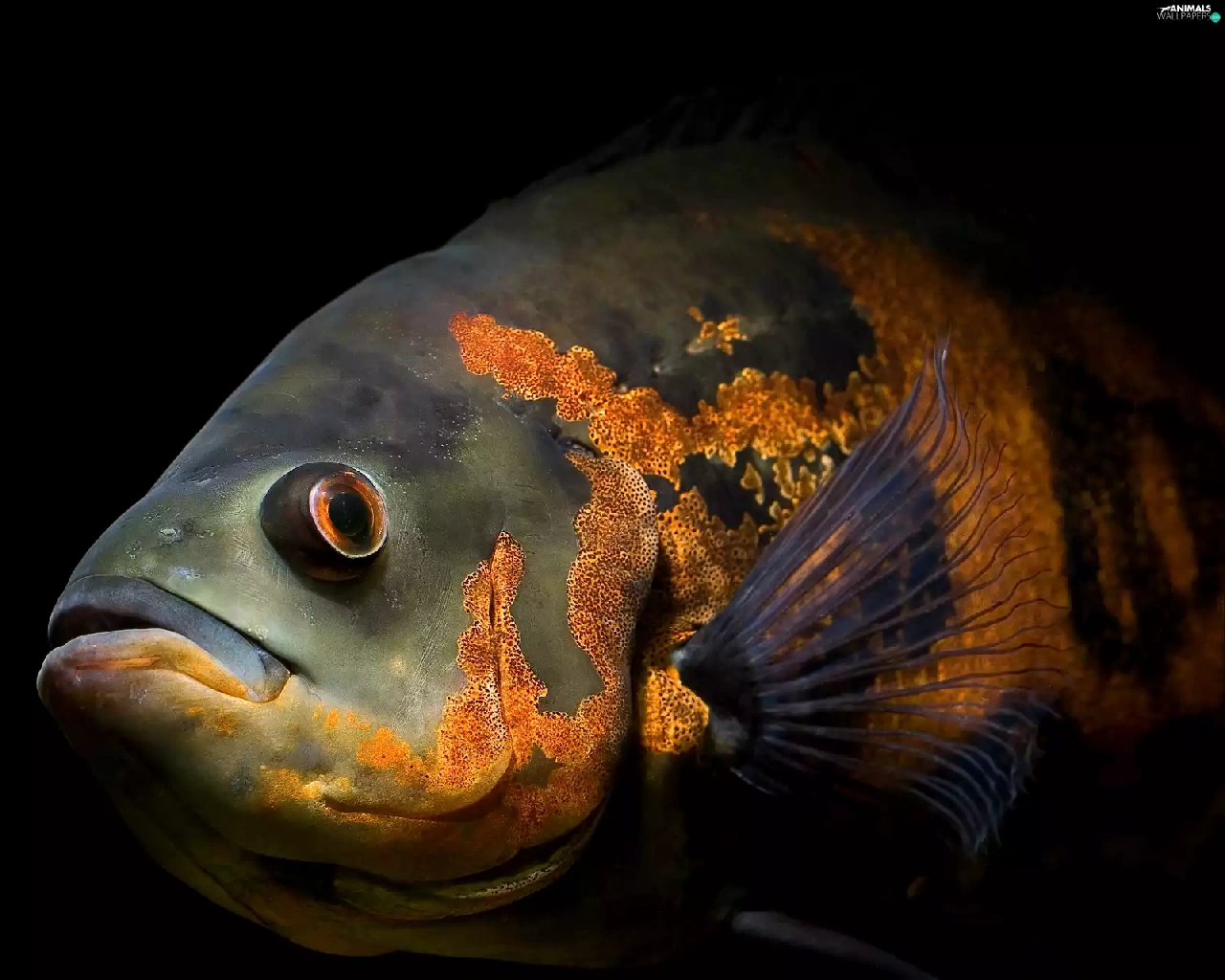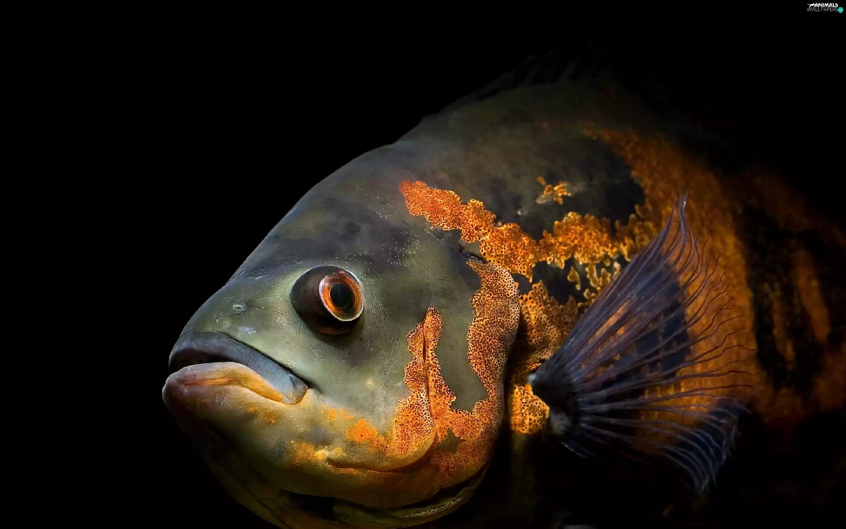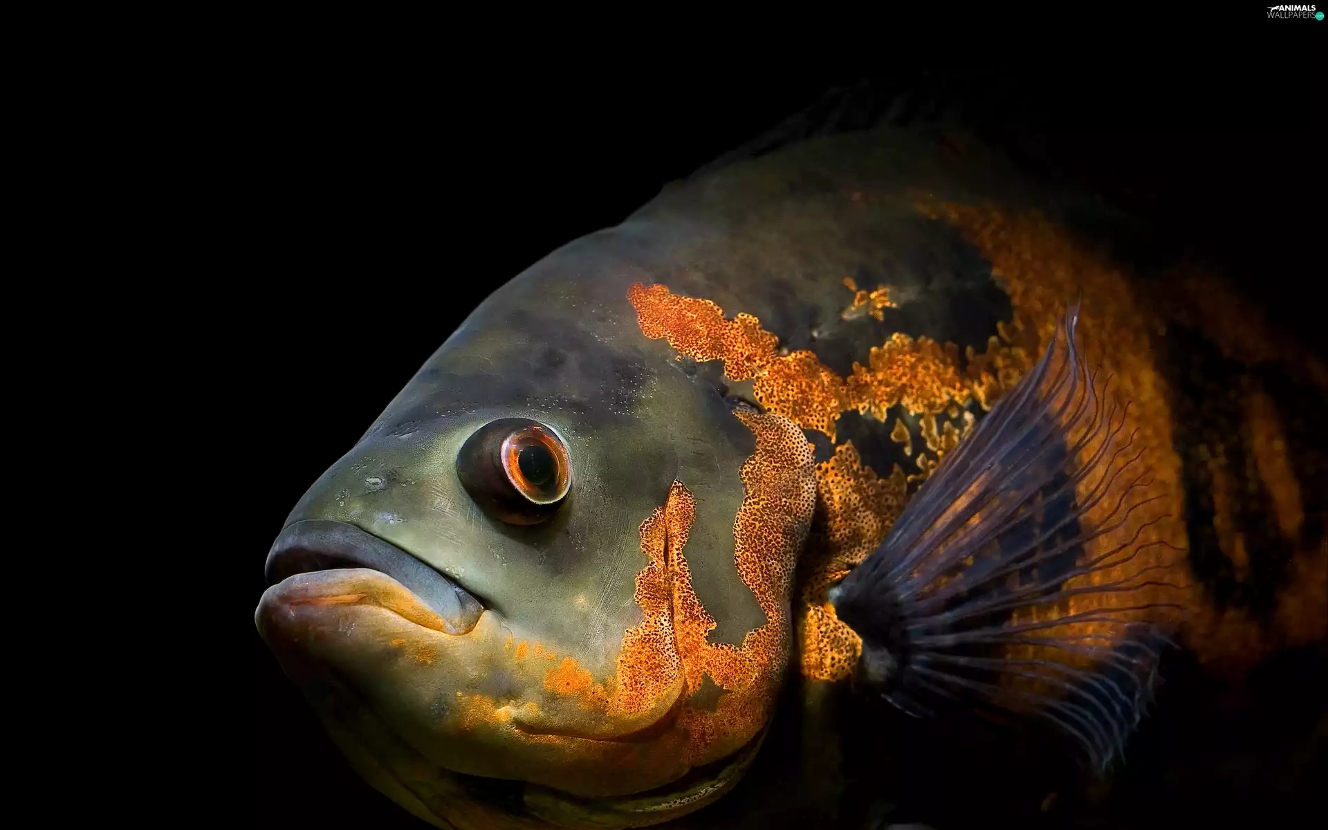 Exotic, Black, background, fish