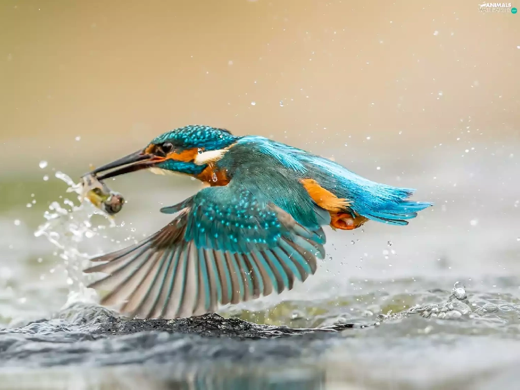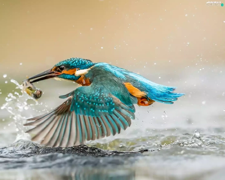 kingfisher, water, hunt, Fish