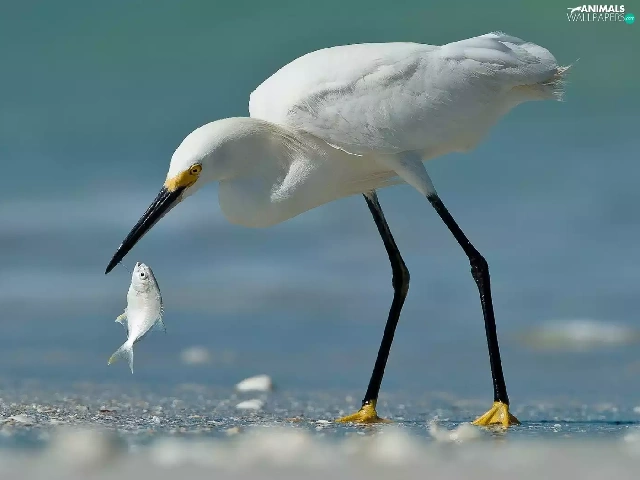 fish, heron, White
