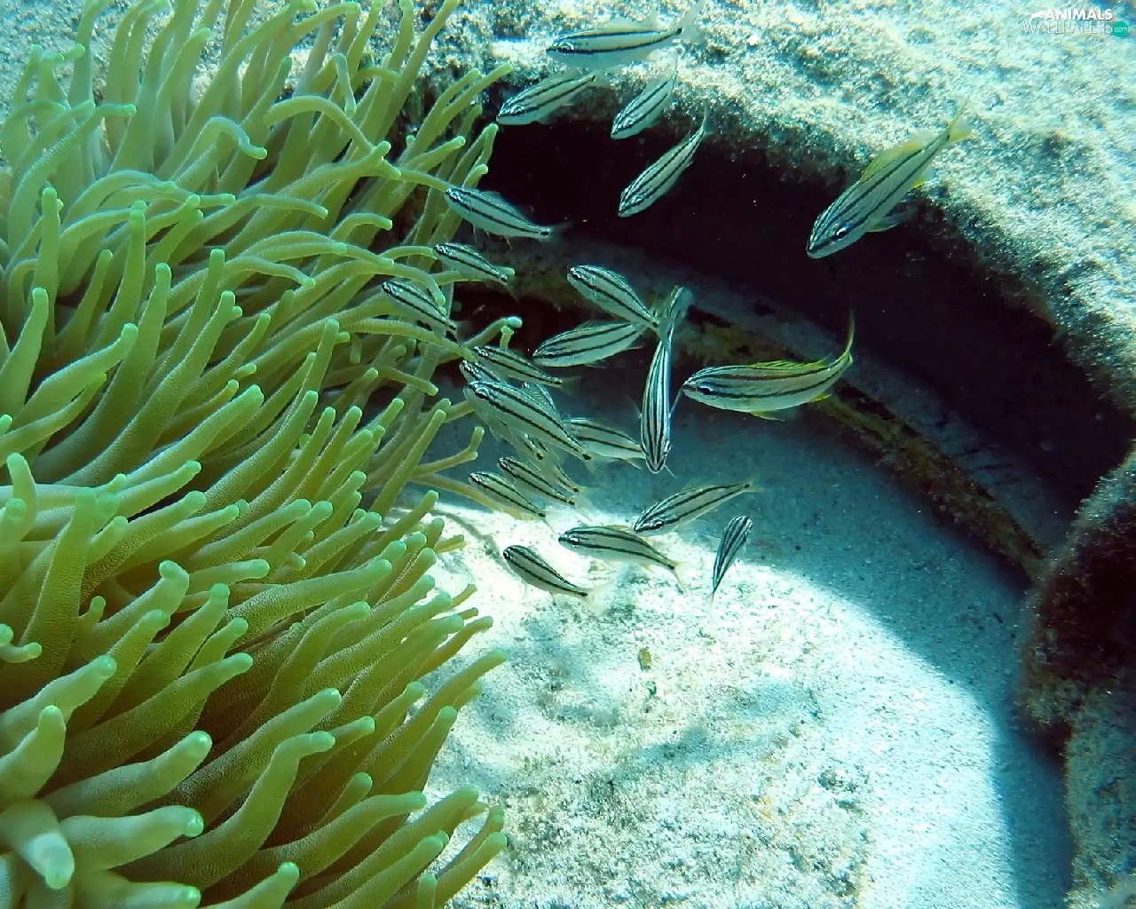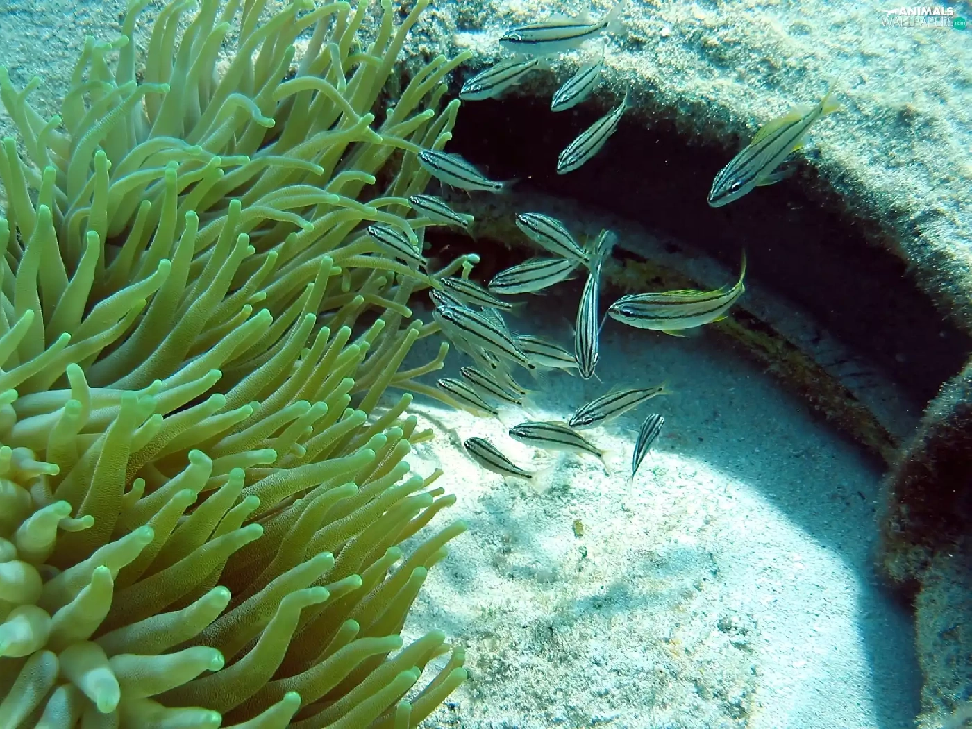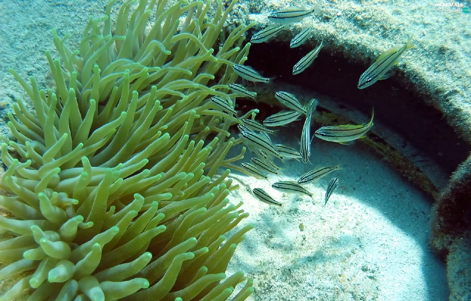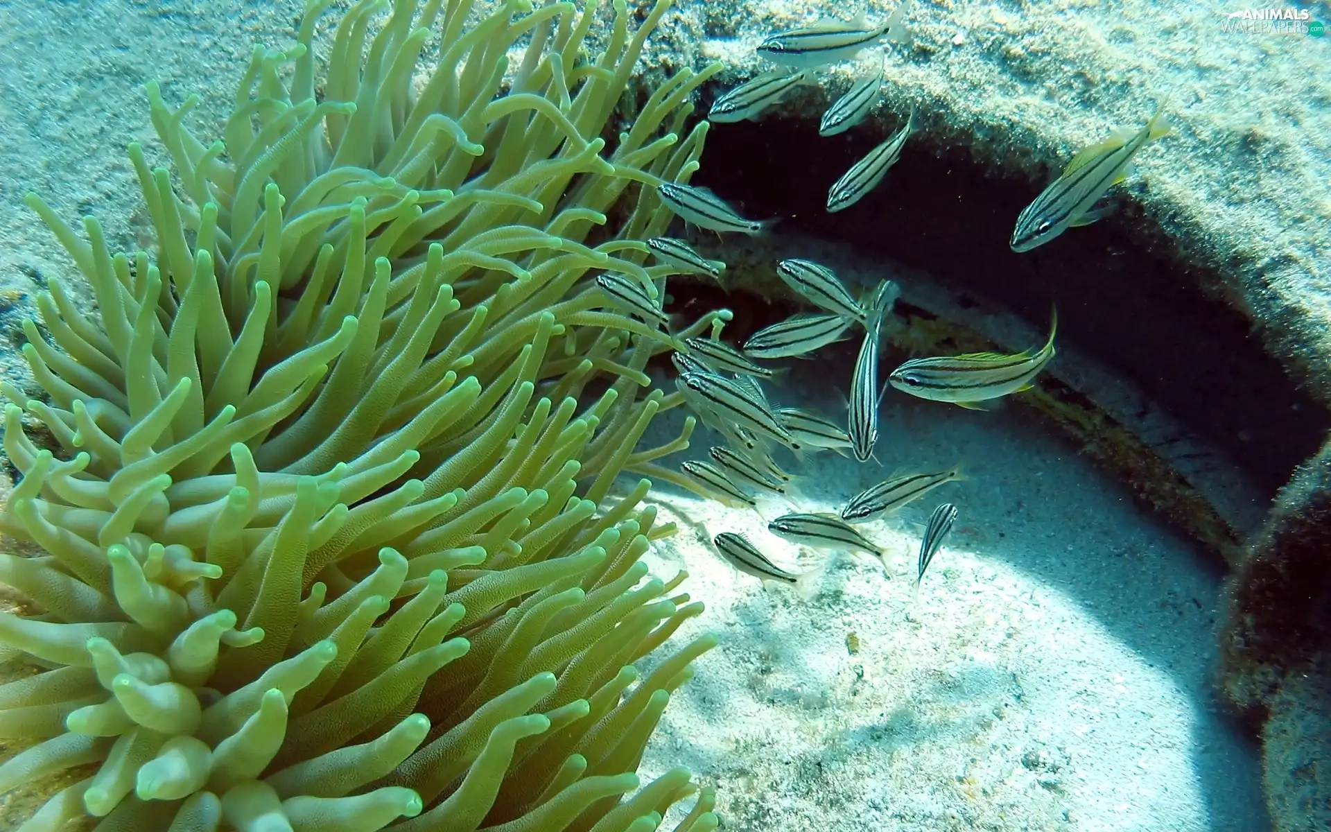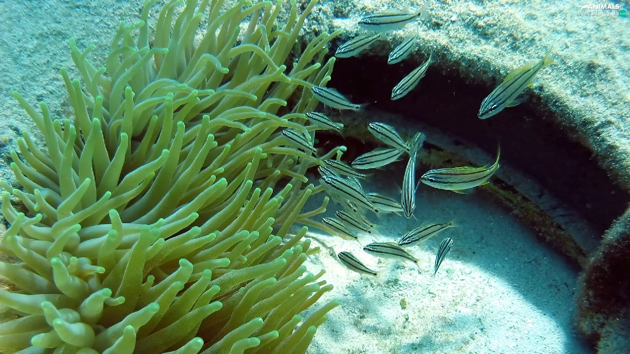 anemone, little doggies, fishes