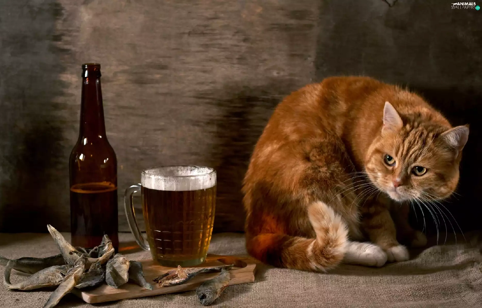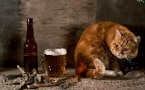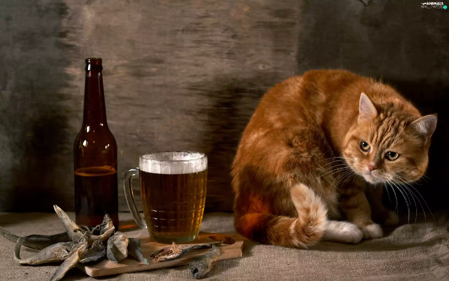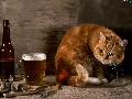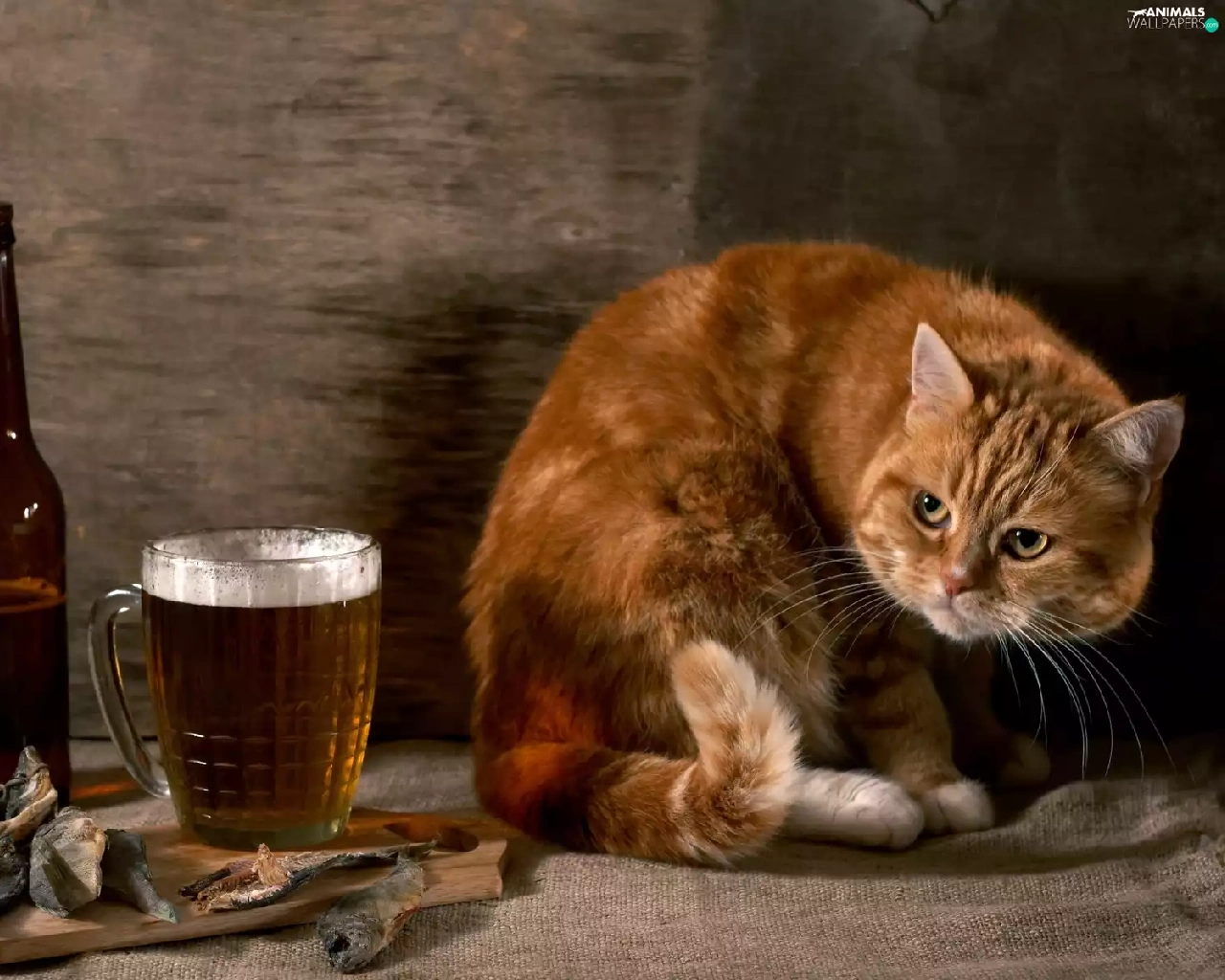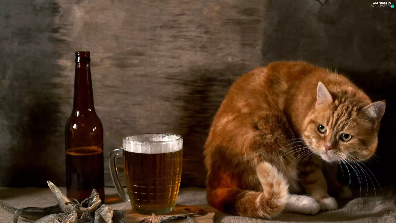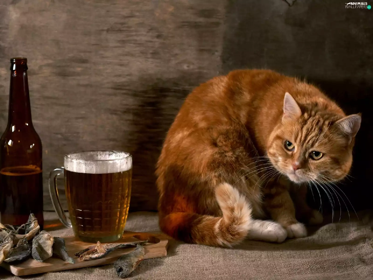 Beer, ginger, dried, fishes, Bottle, cat