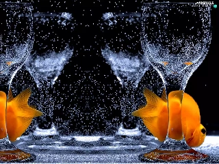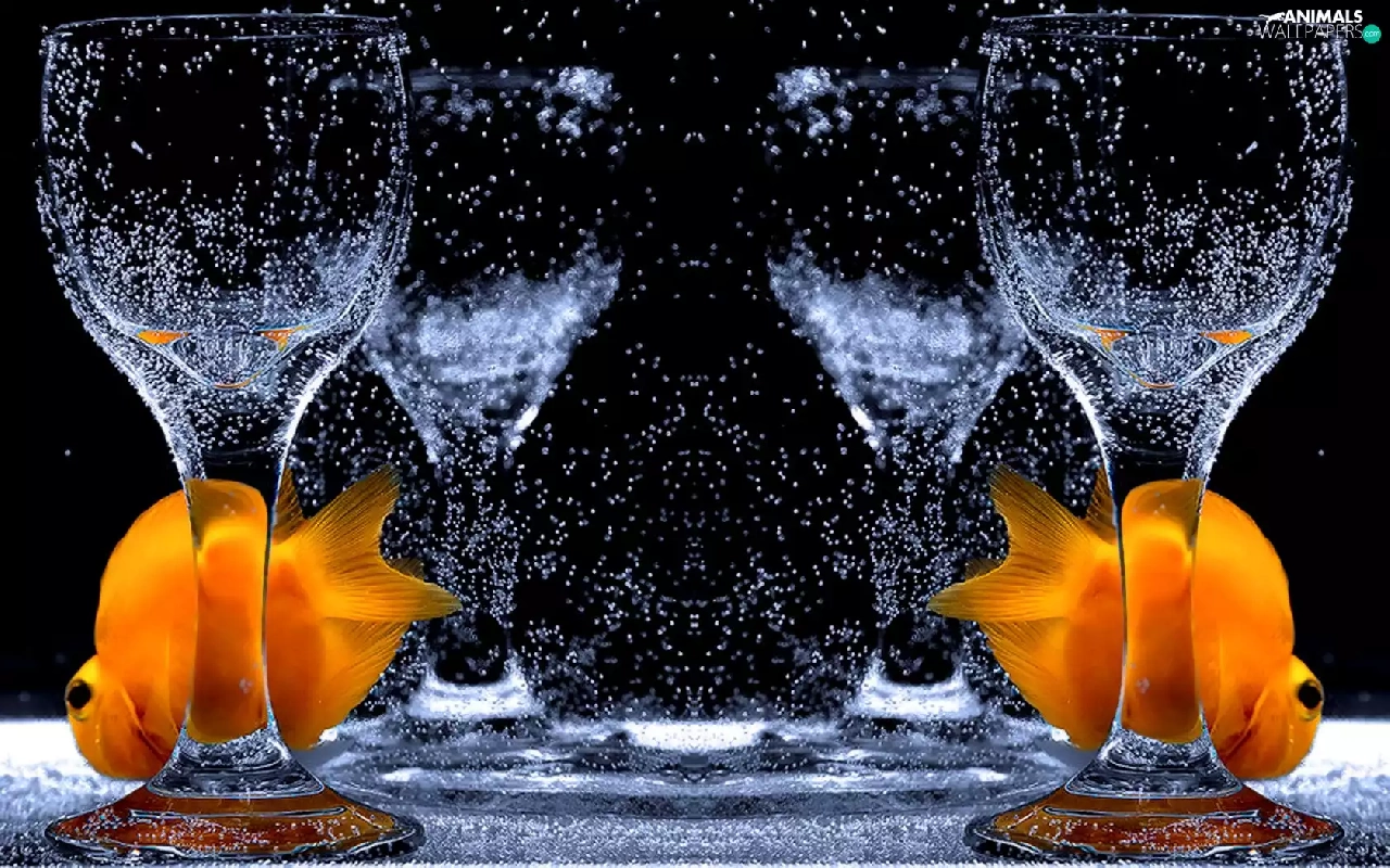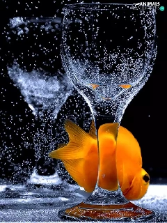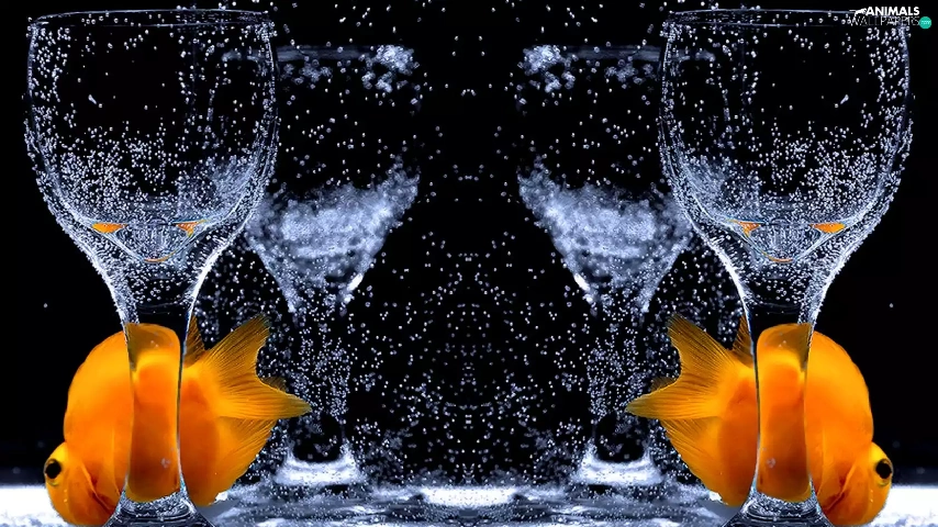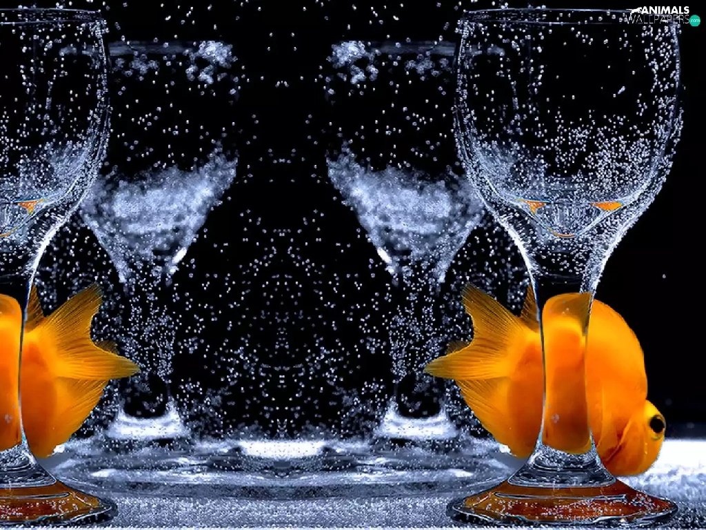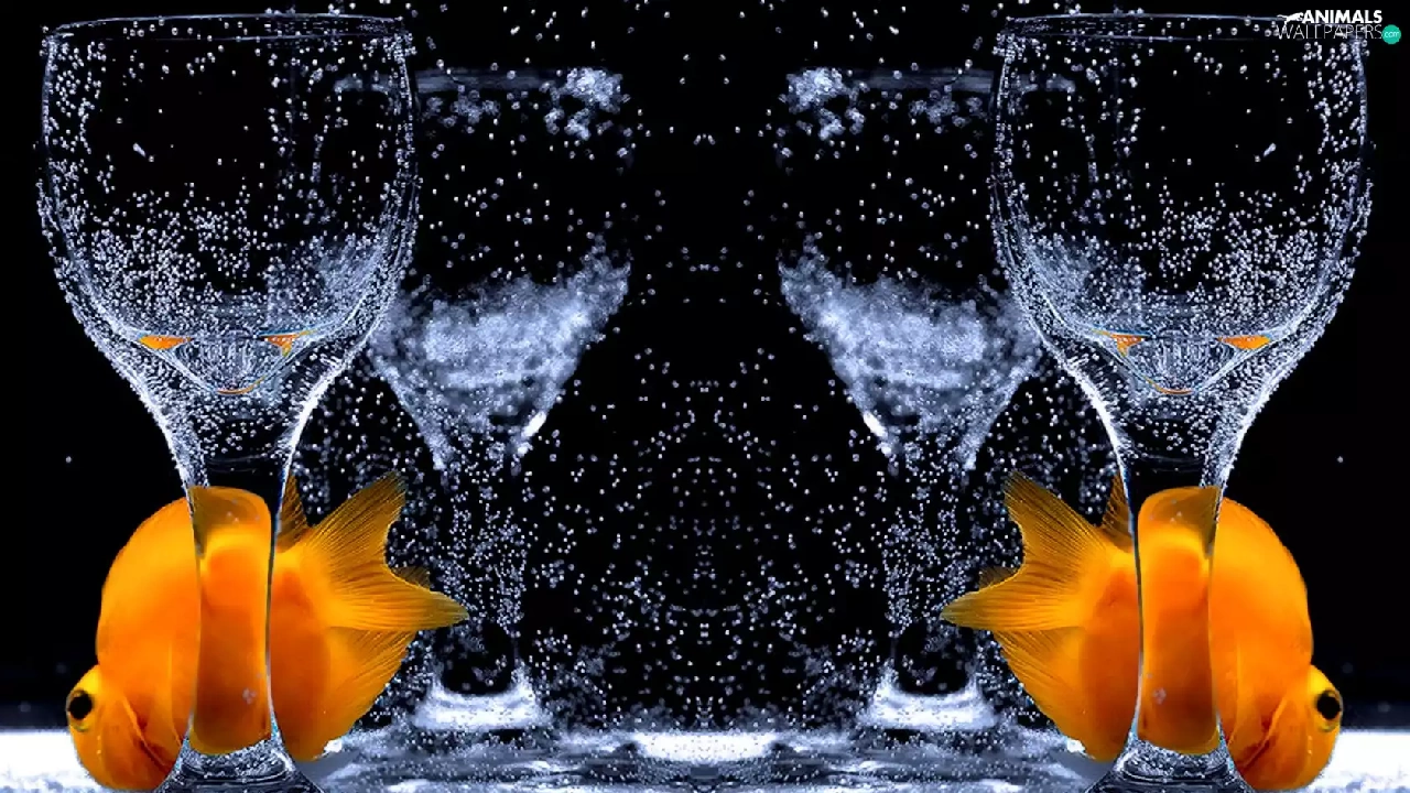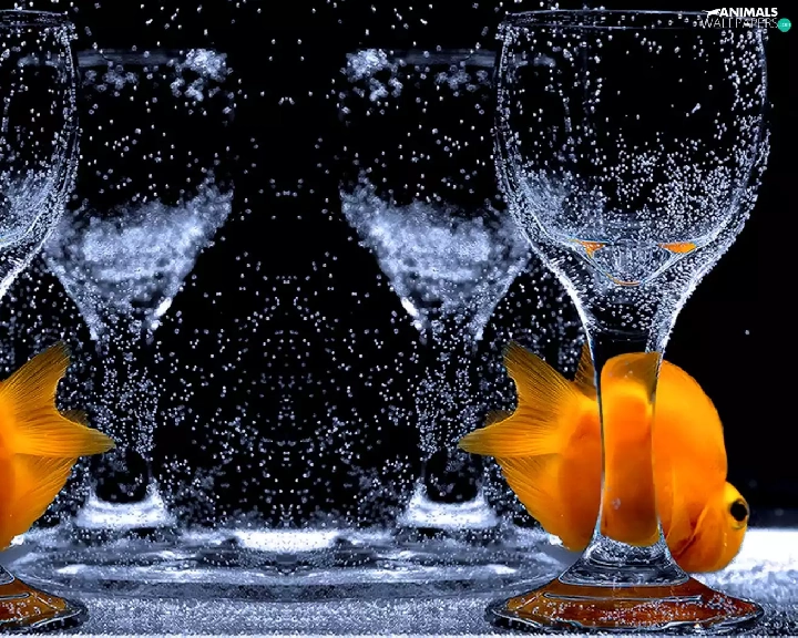 fishes, glass, water
