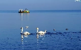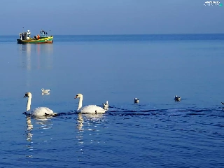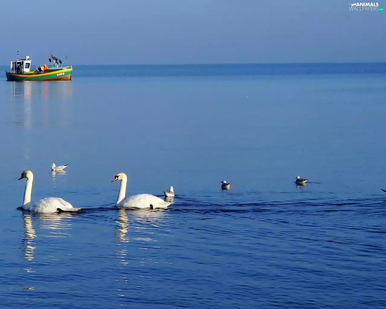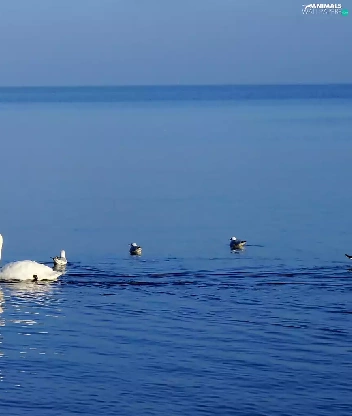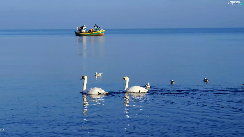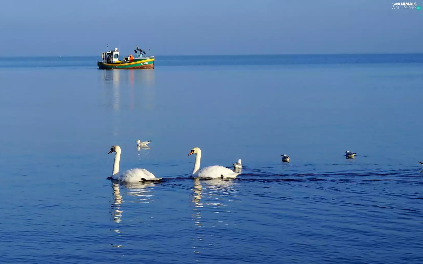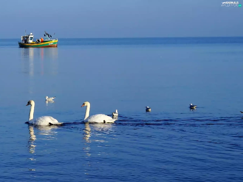 Swan, White, smack, fishing, water, birds