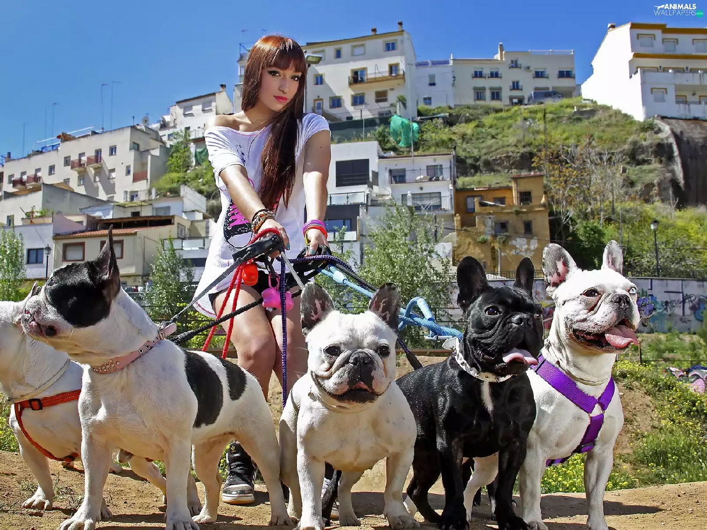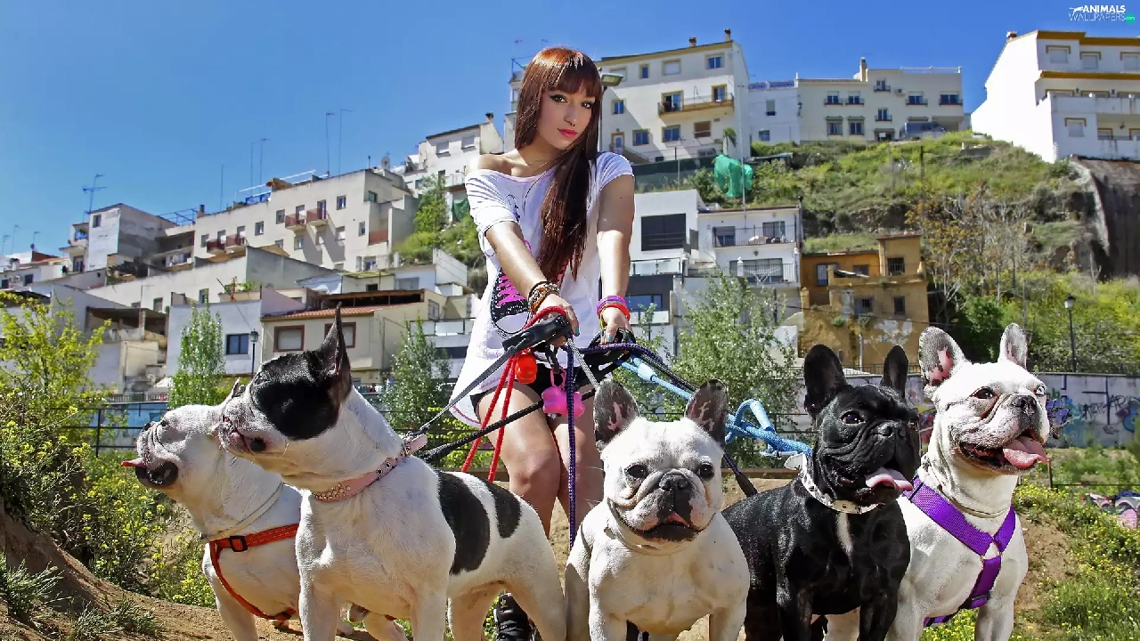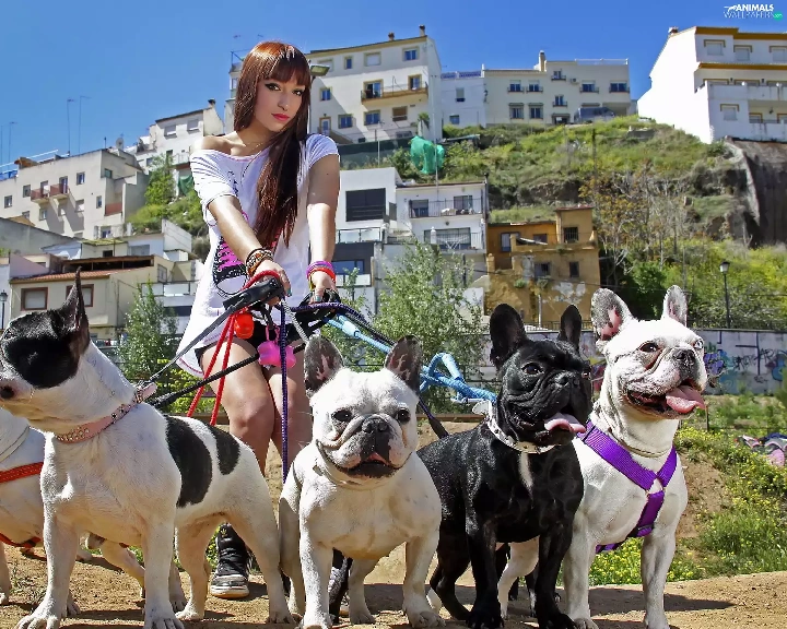 Women, dogs, wander, five