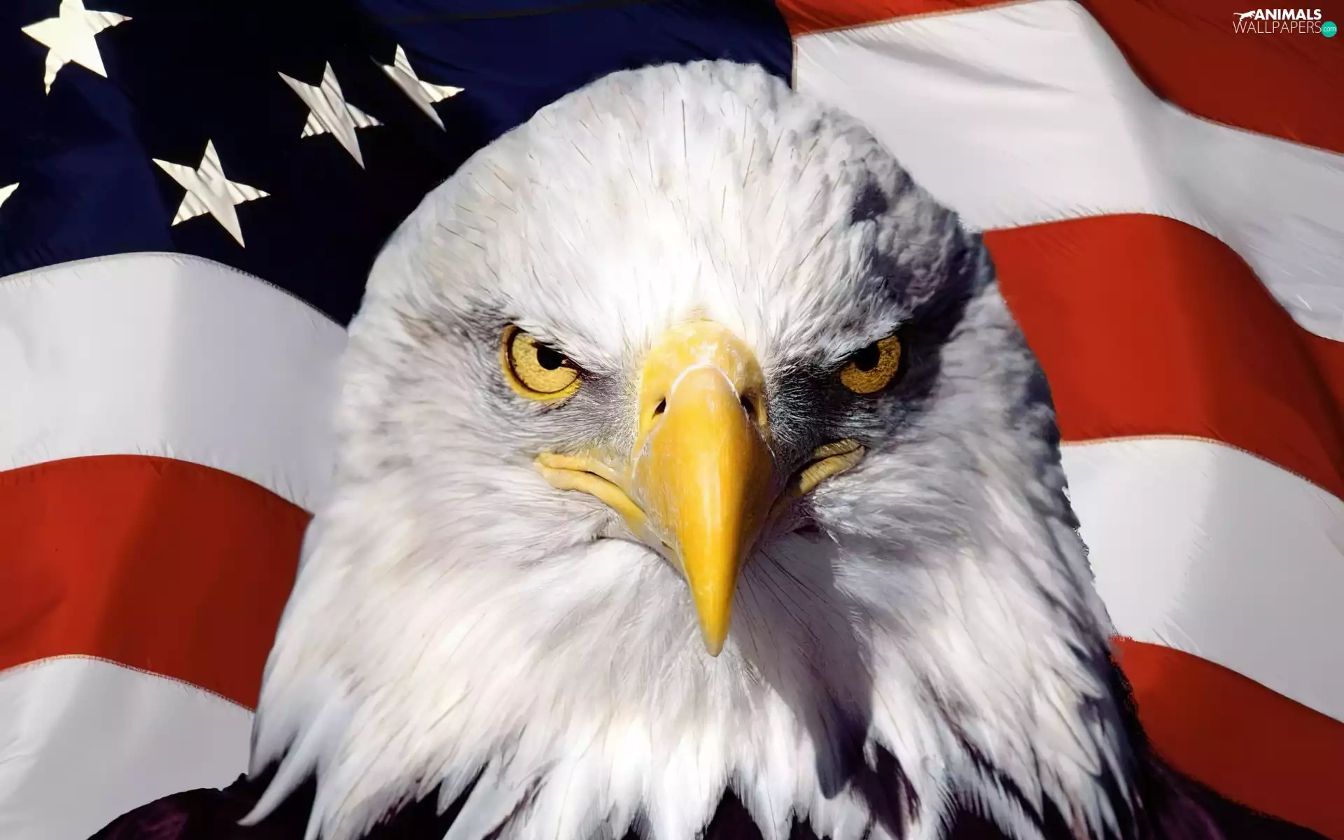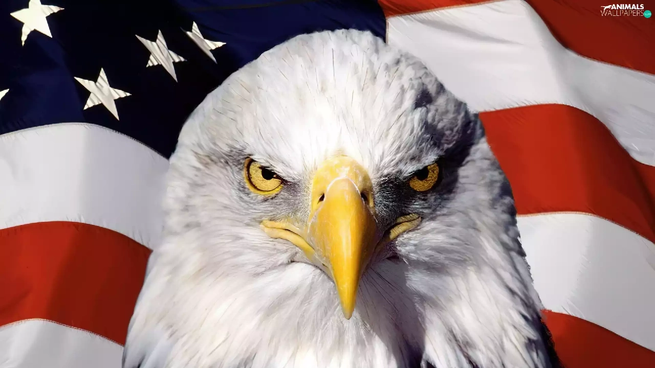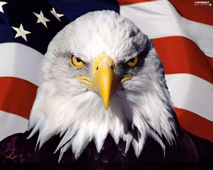 American Bald Eagle, flag, The United States