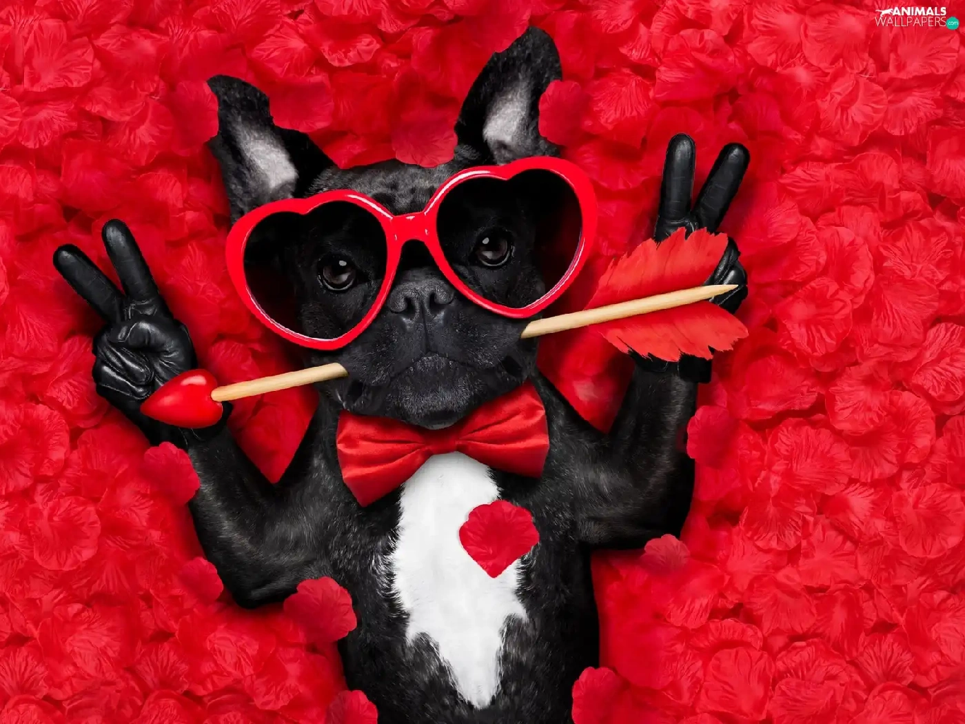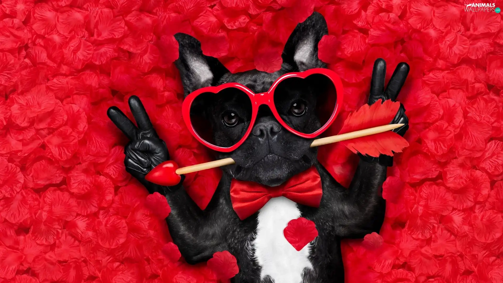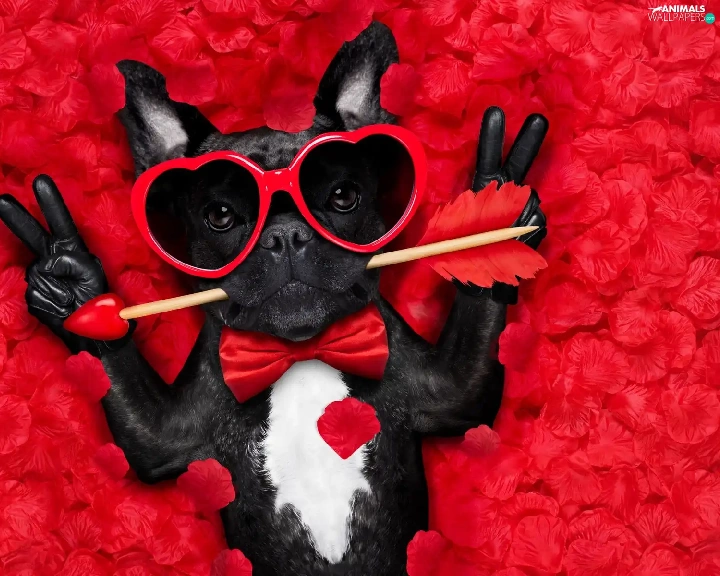 Funny, dog, Arrow, flakes, Glasses, French Bulldog