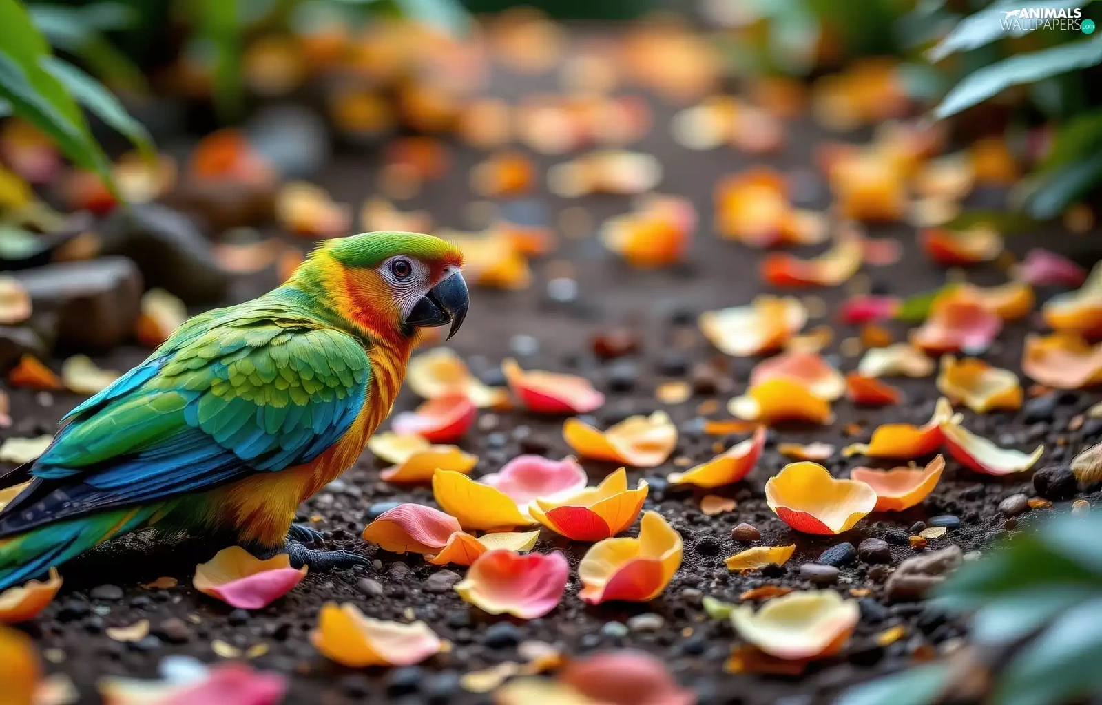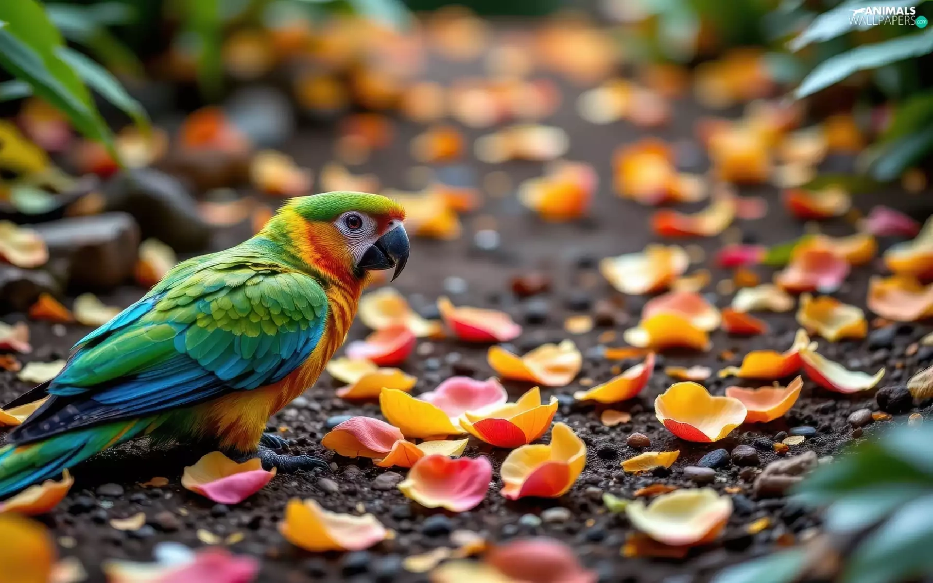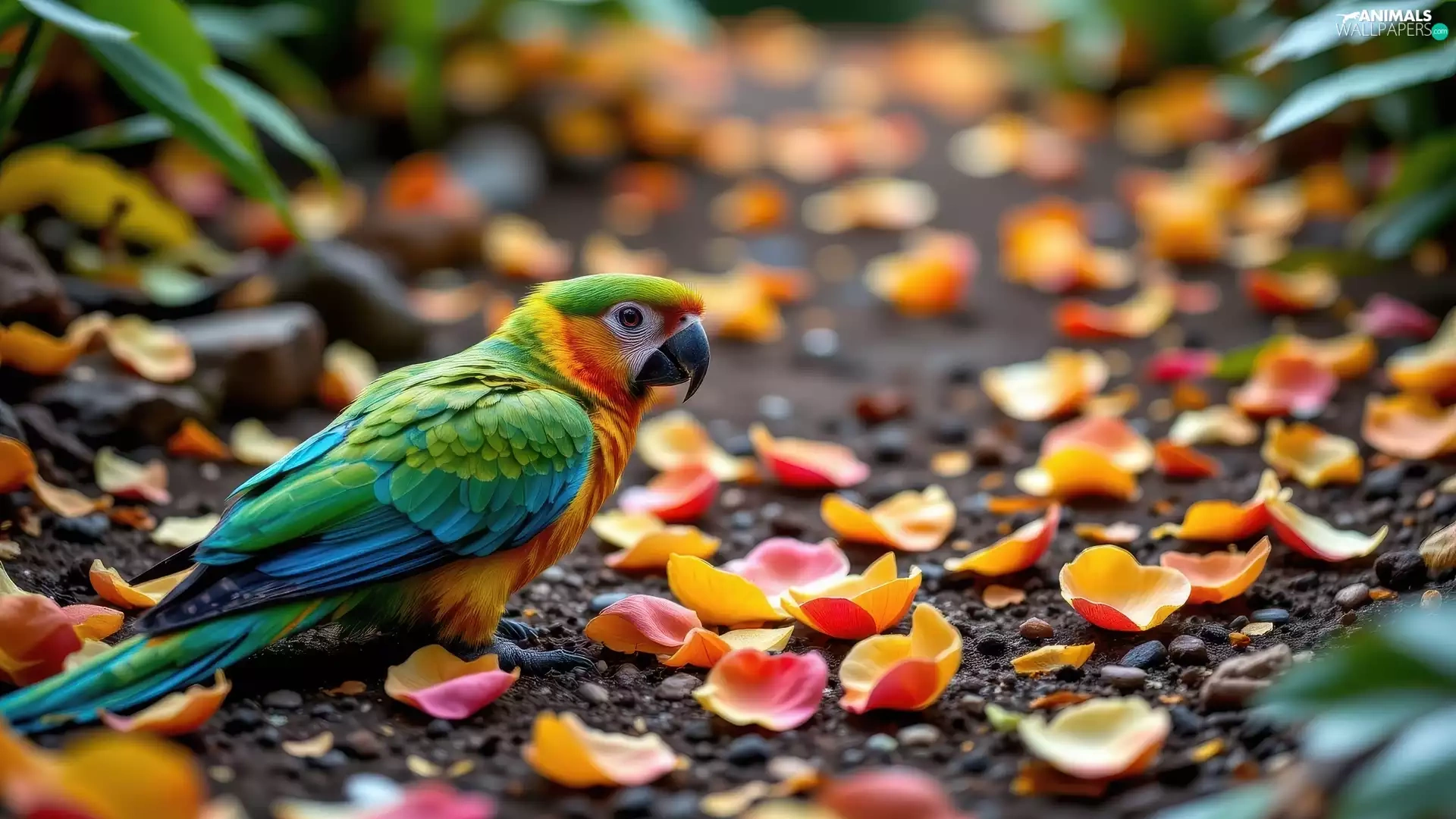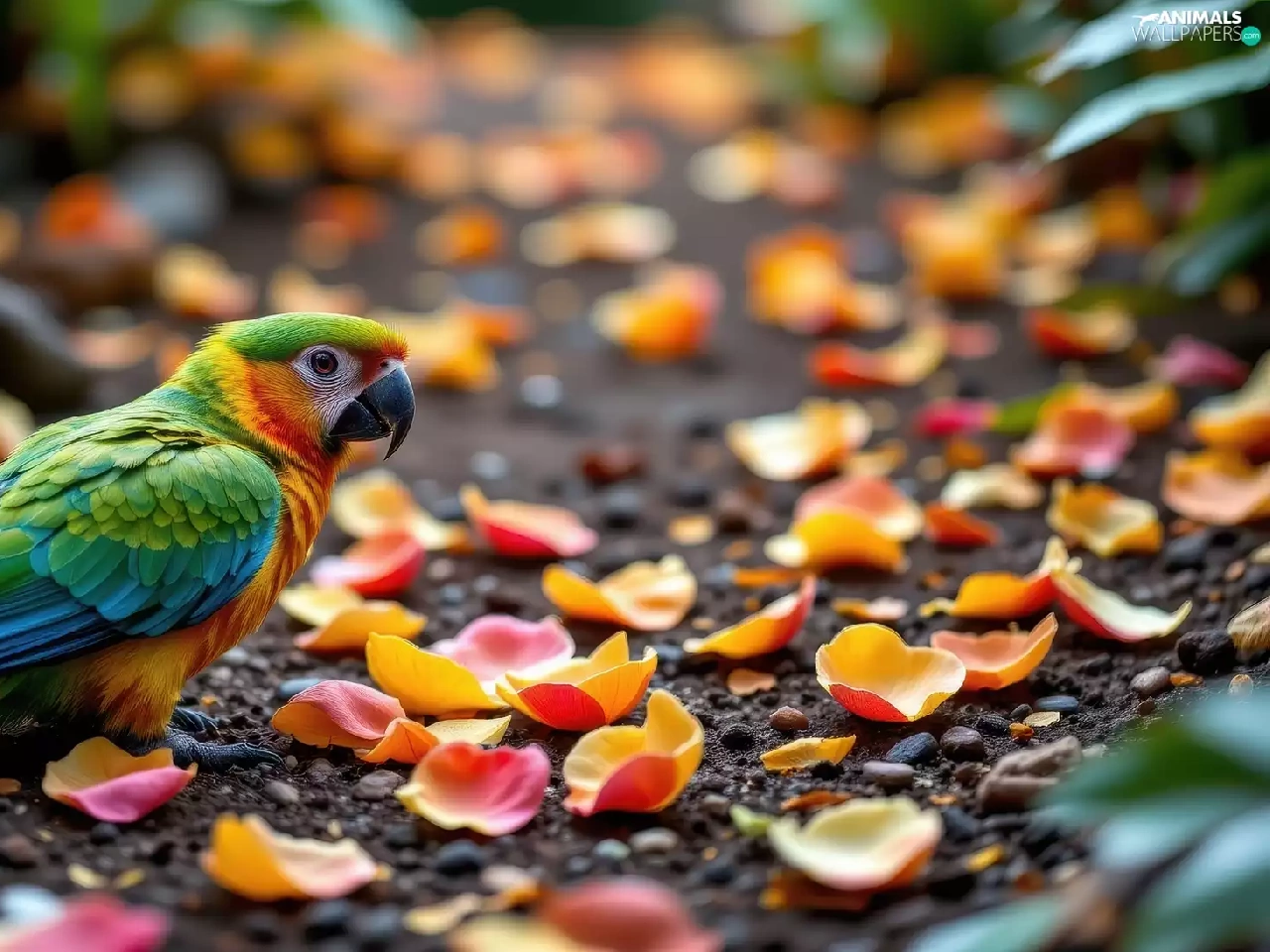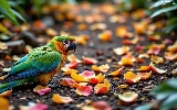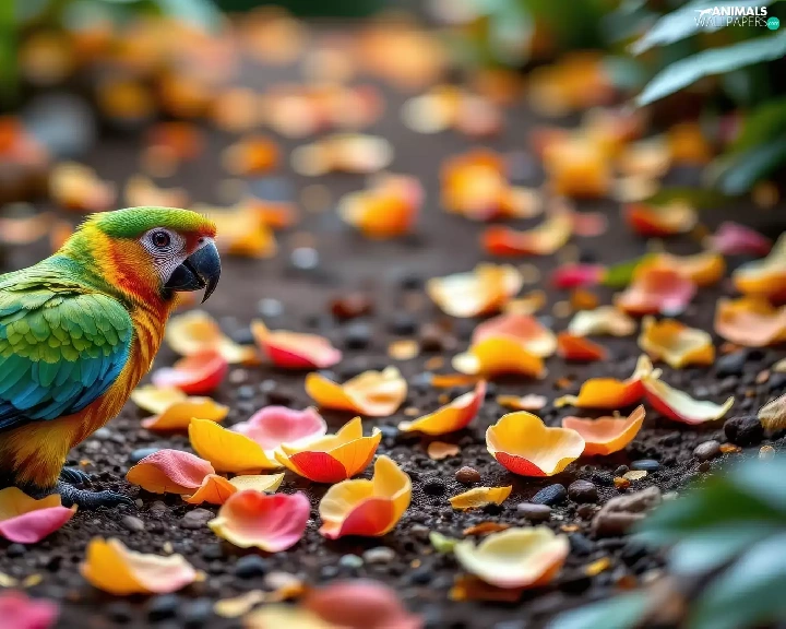 parrot, flowers, Ai, flakes